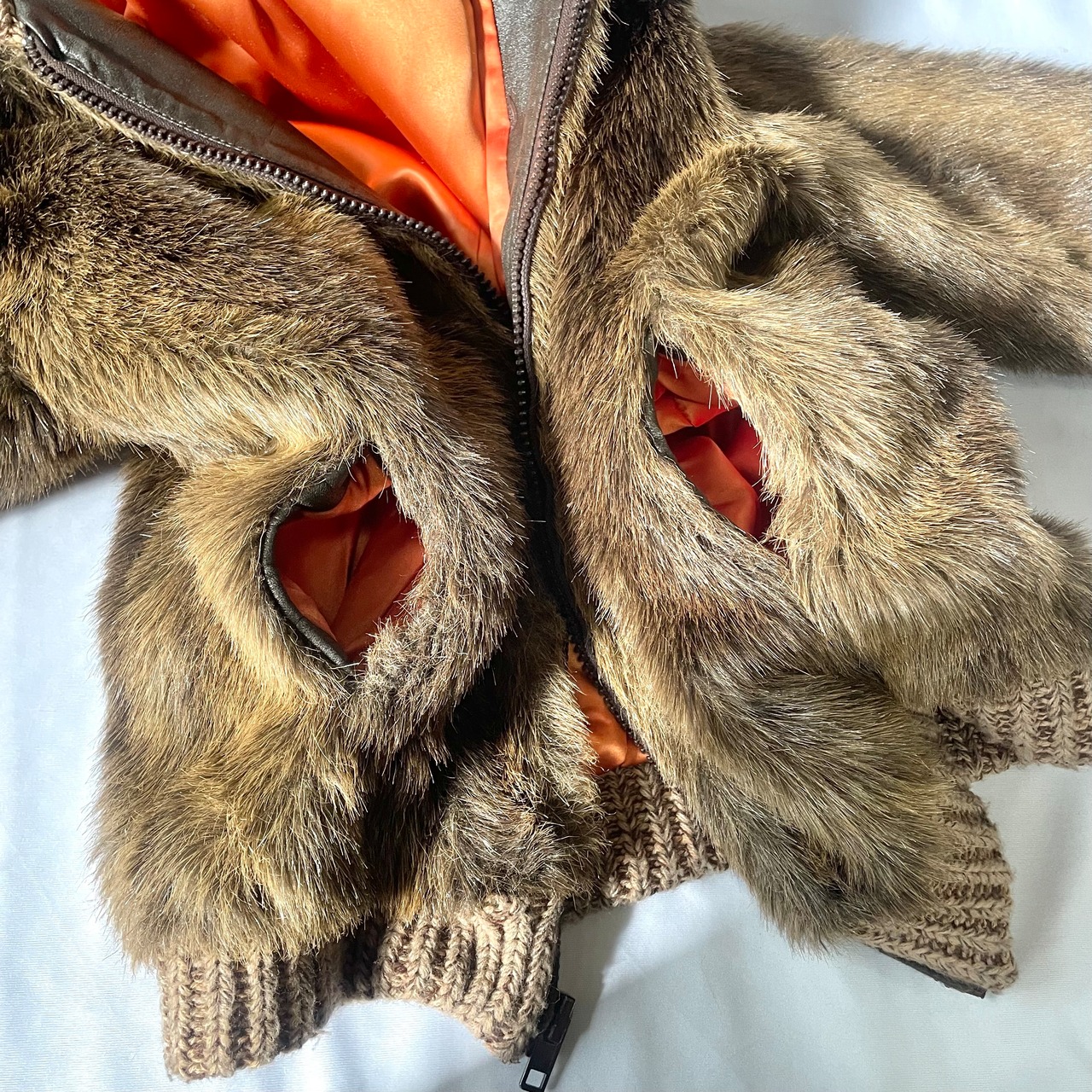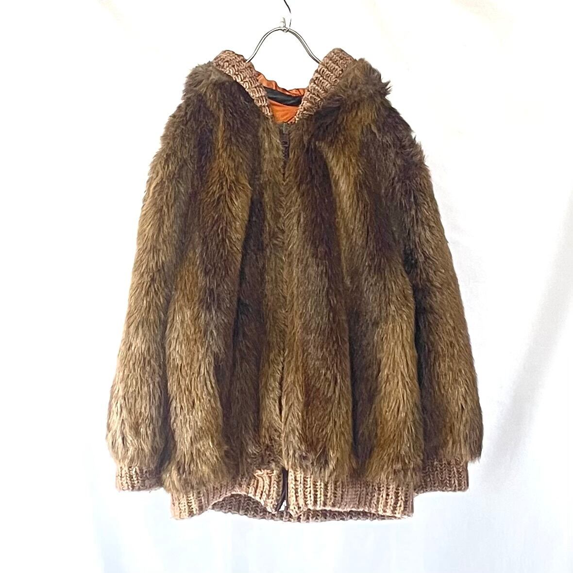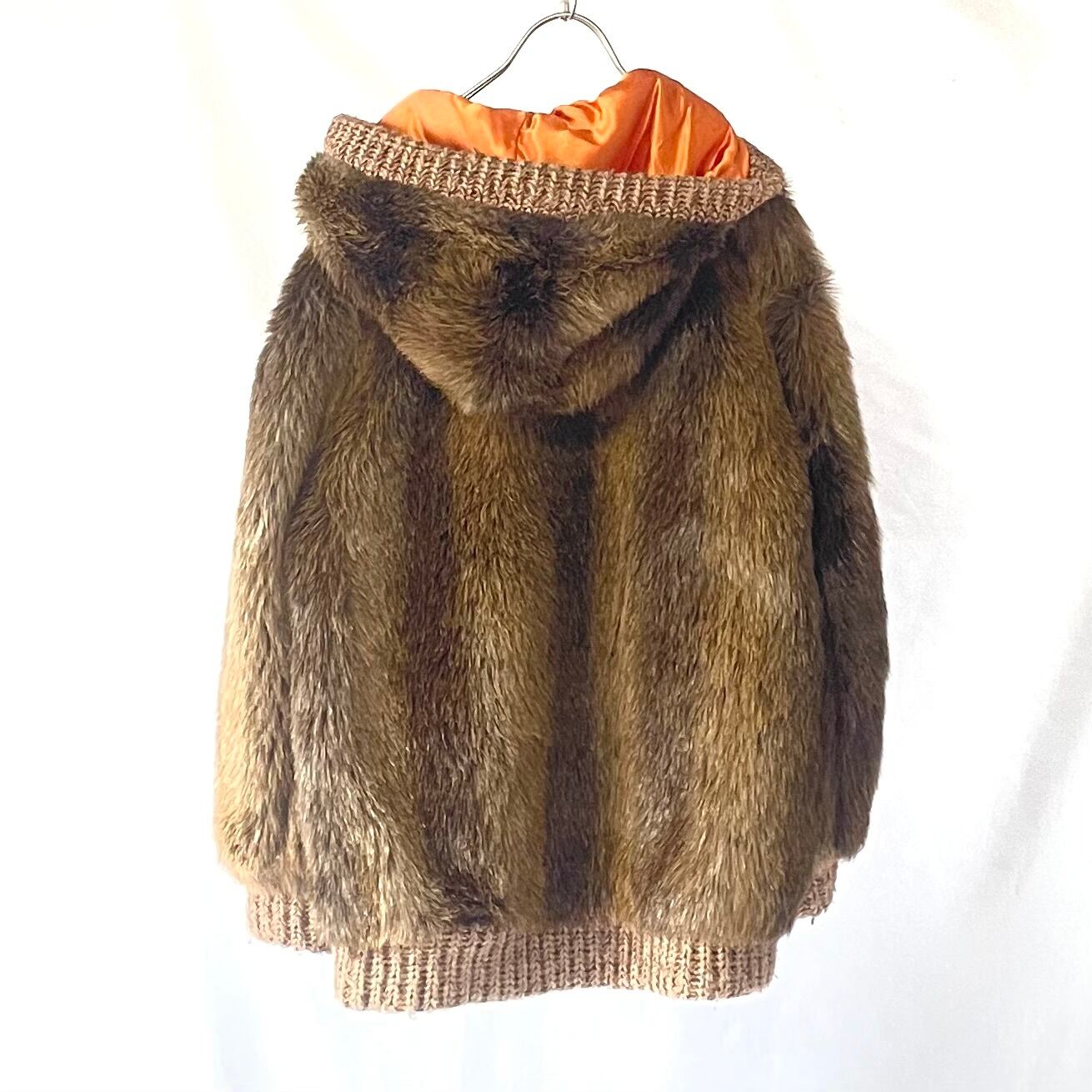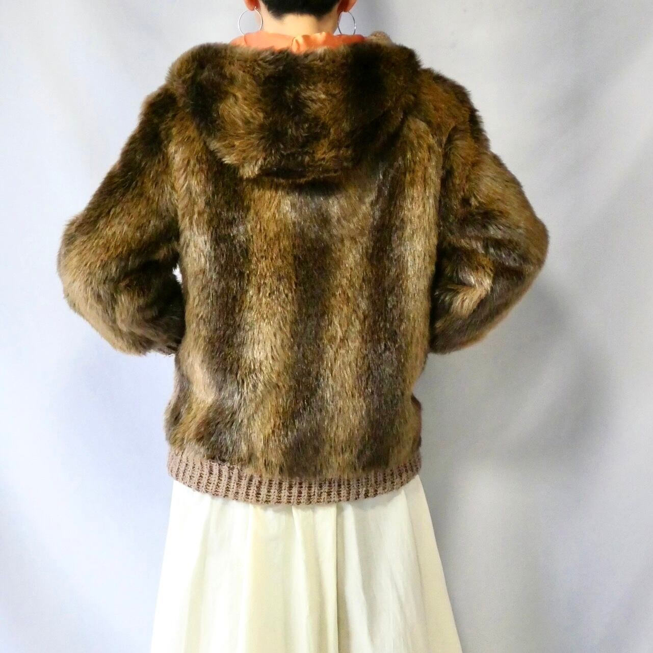 Brown volume fake fur hooded coat フード付きブラウンボリュームフェイクファーコート