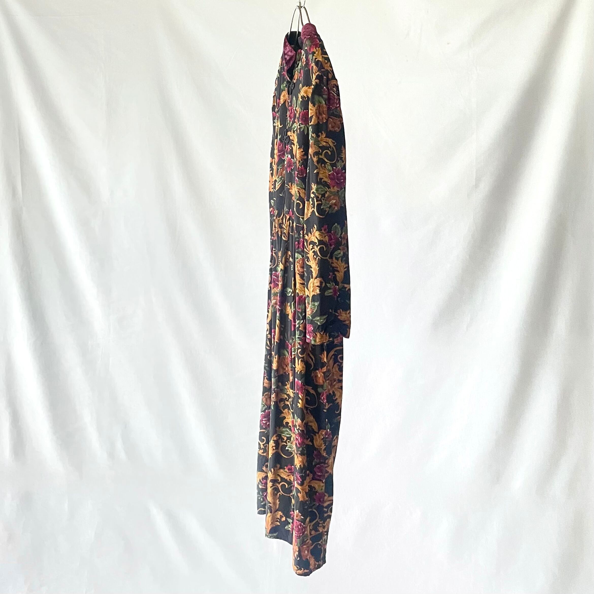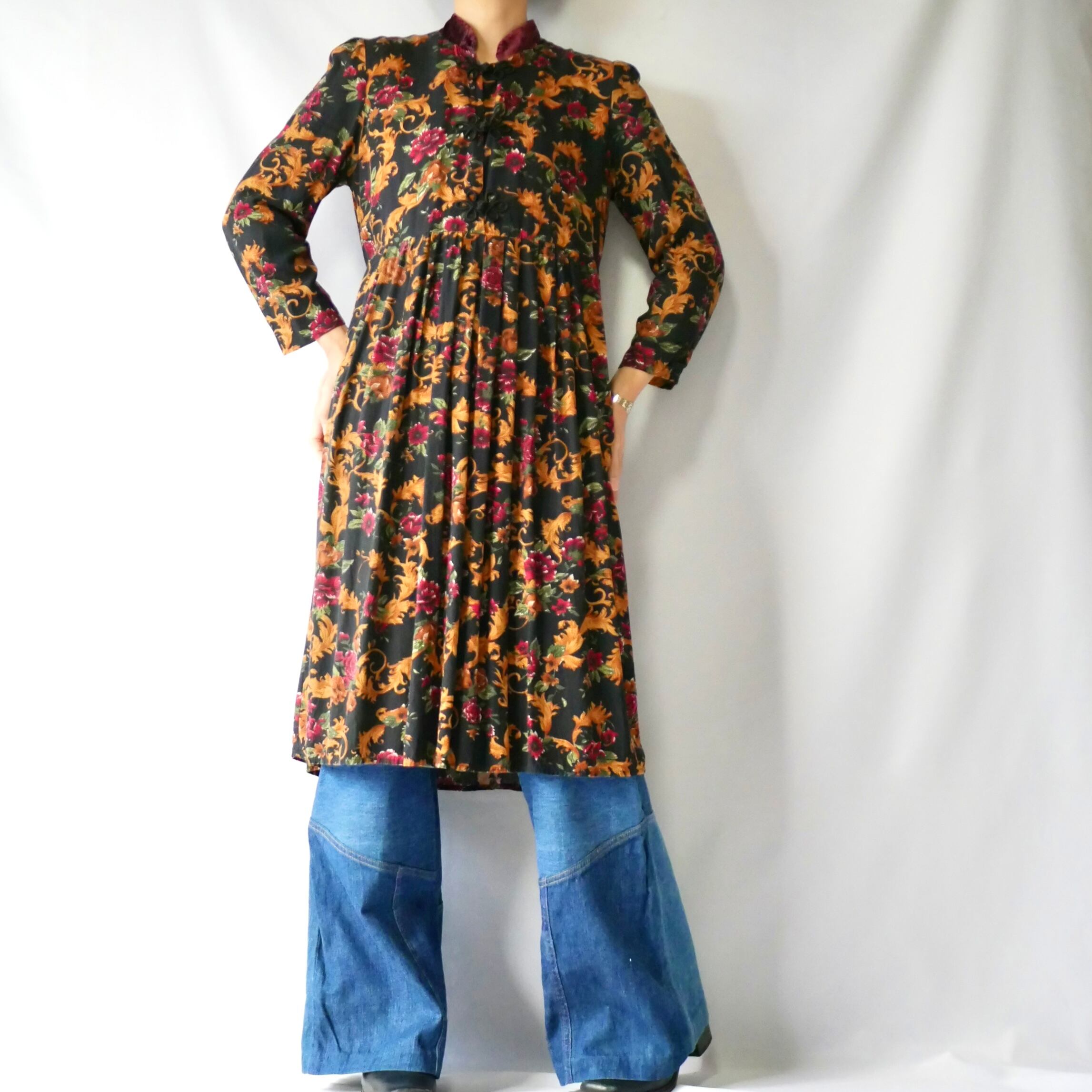 Chinese collar L/S onepiece 花柄レーヨンワンピース