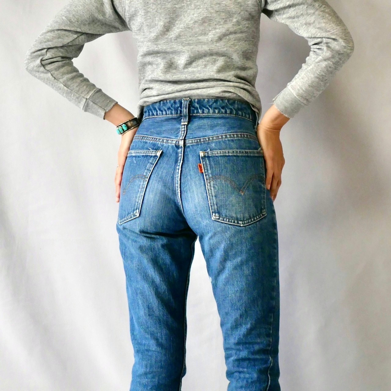 しっかり裾が広がる丈、女性に丁度良いサイズバランスで、色残りもまだまだあり、雰囲気のある色落ちになっています。