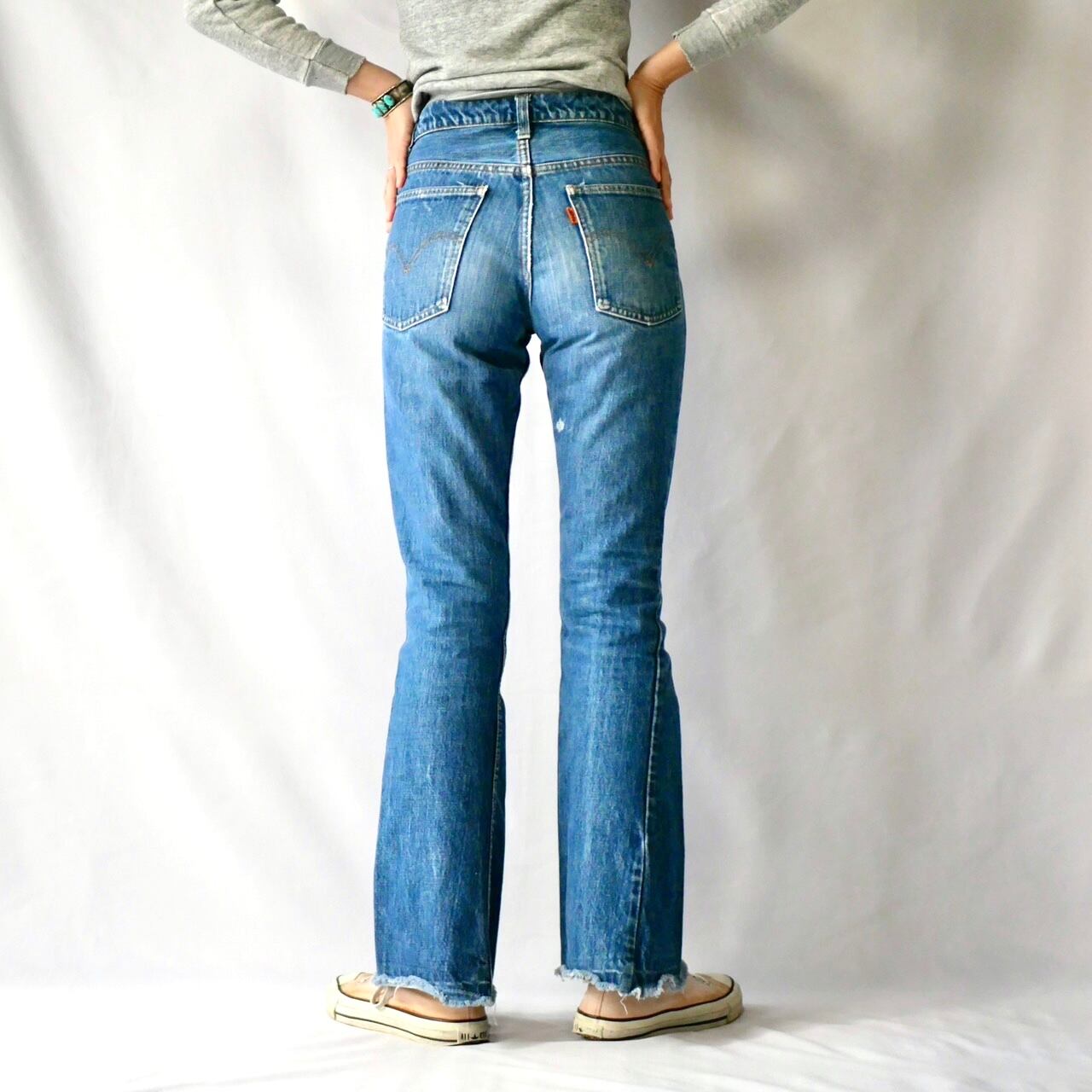 70年代ヴィンテージ アメリカ製 リーバイス 646 裾切りっぱなしフレアデニムパンツです。