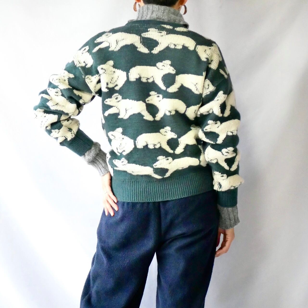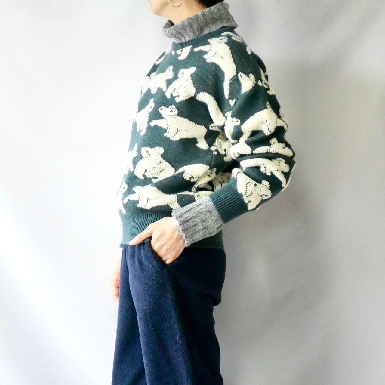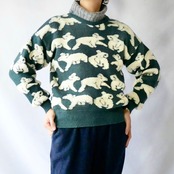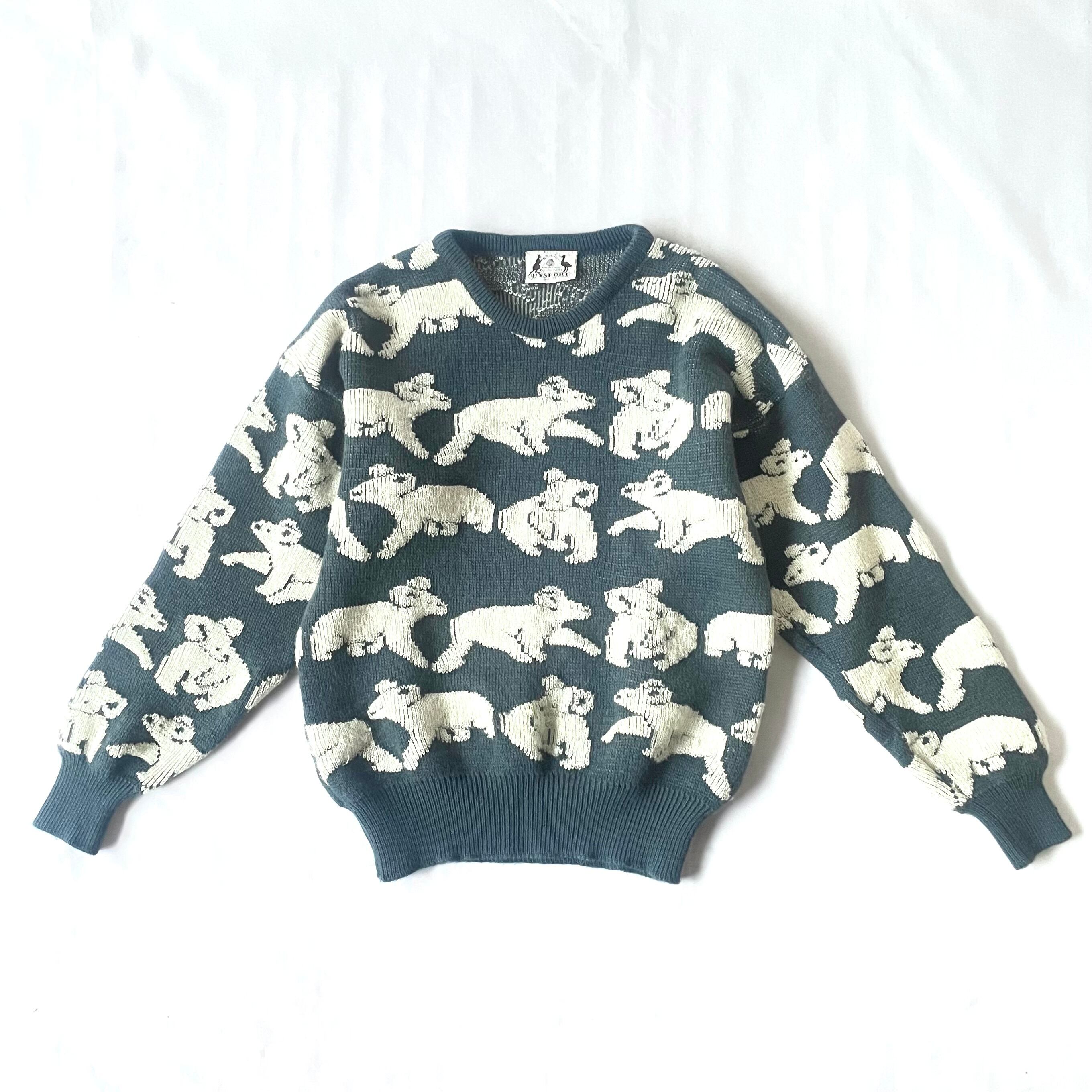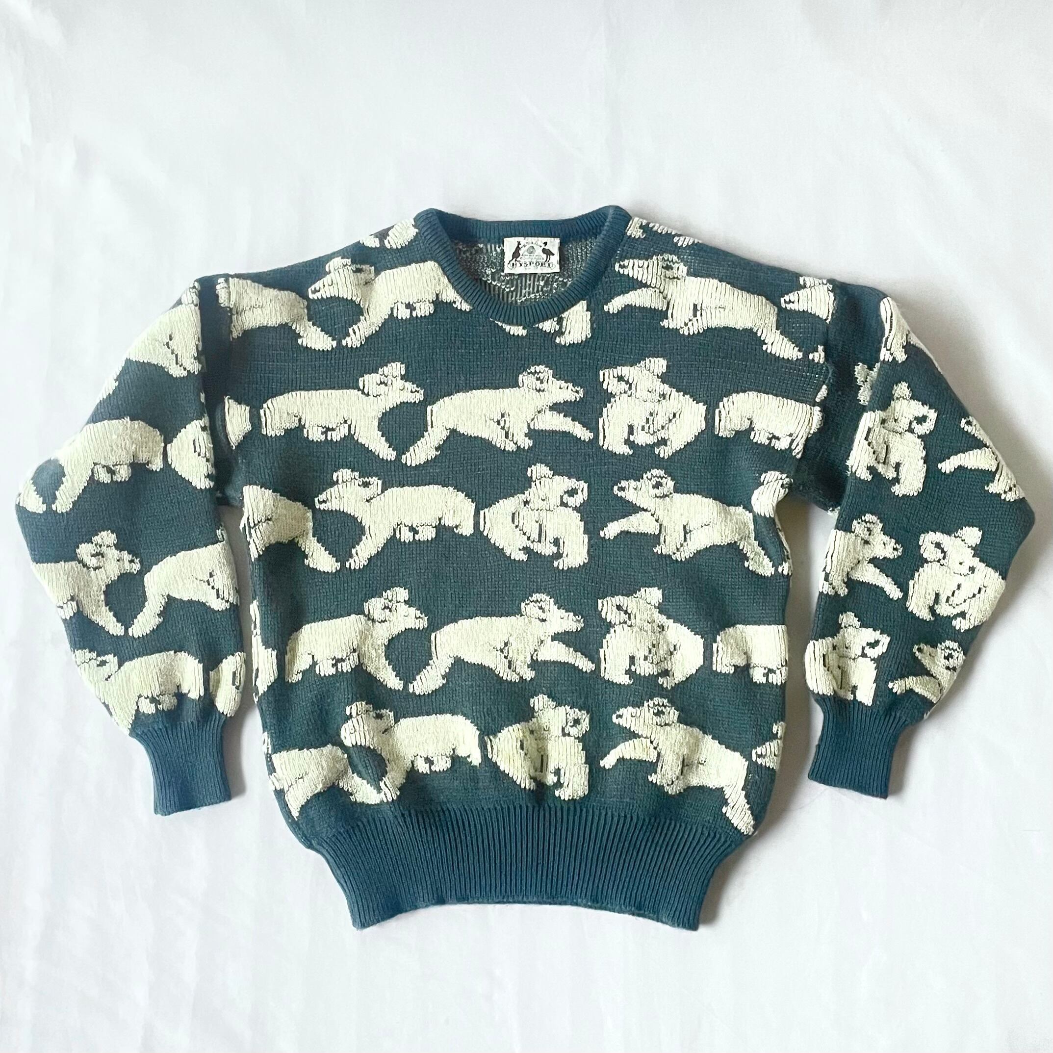 Made in Australia pure new wool koala knit オーストラリア製緑群青色コアラ総柄ニット