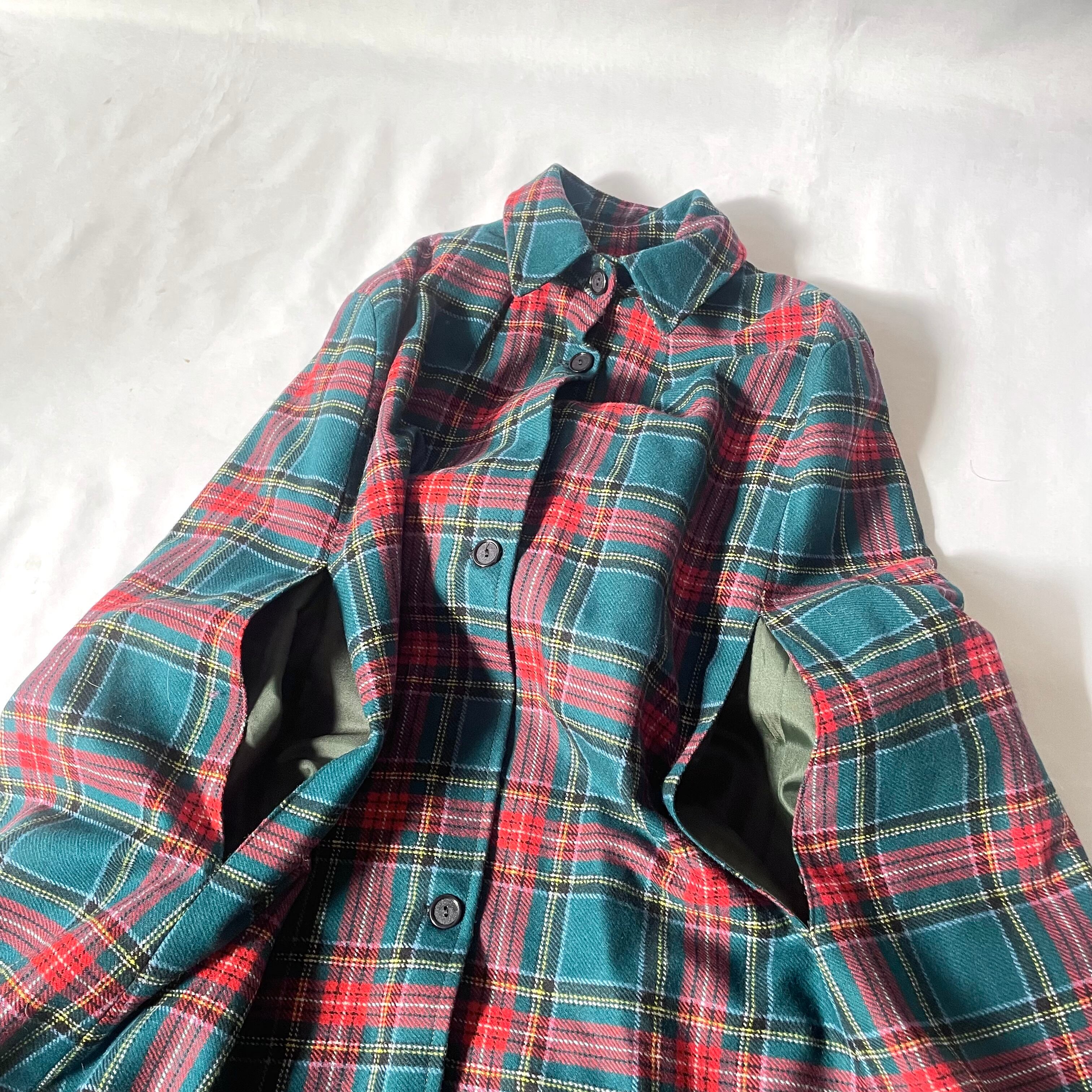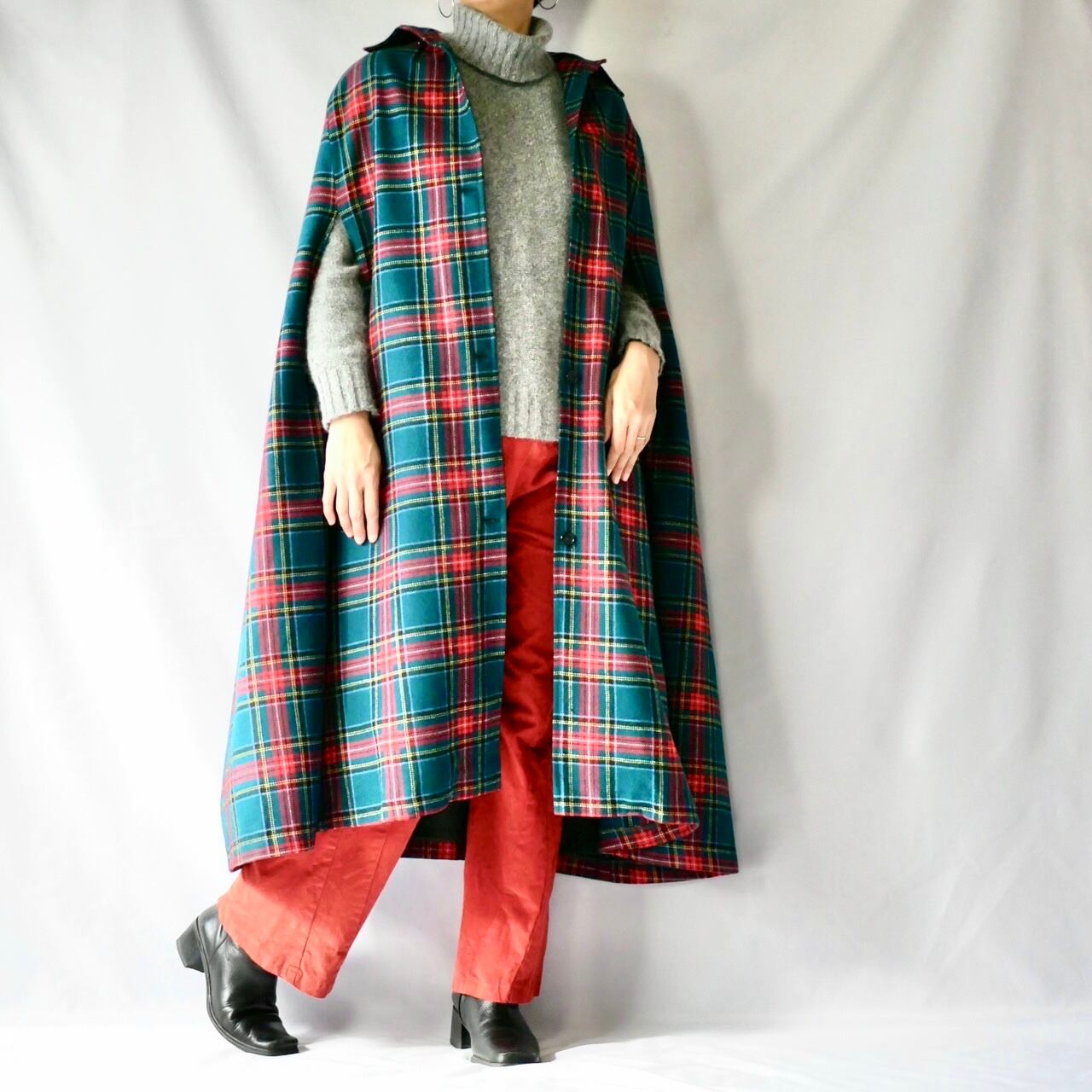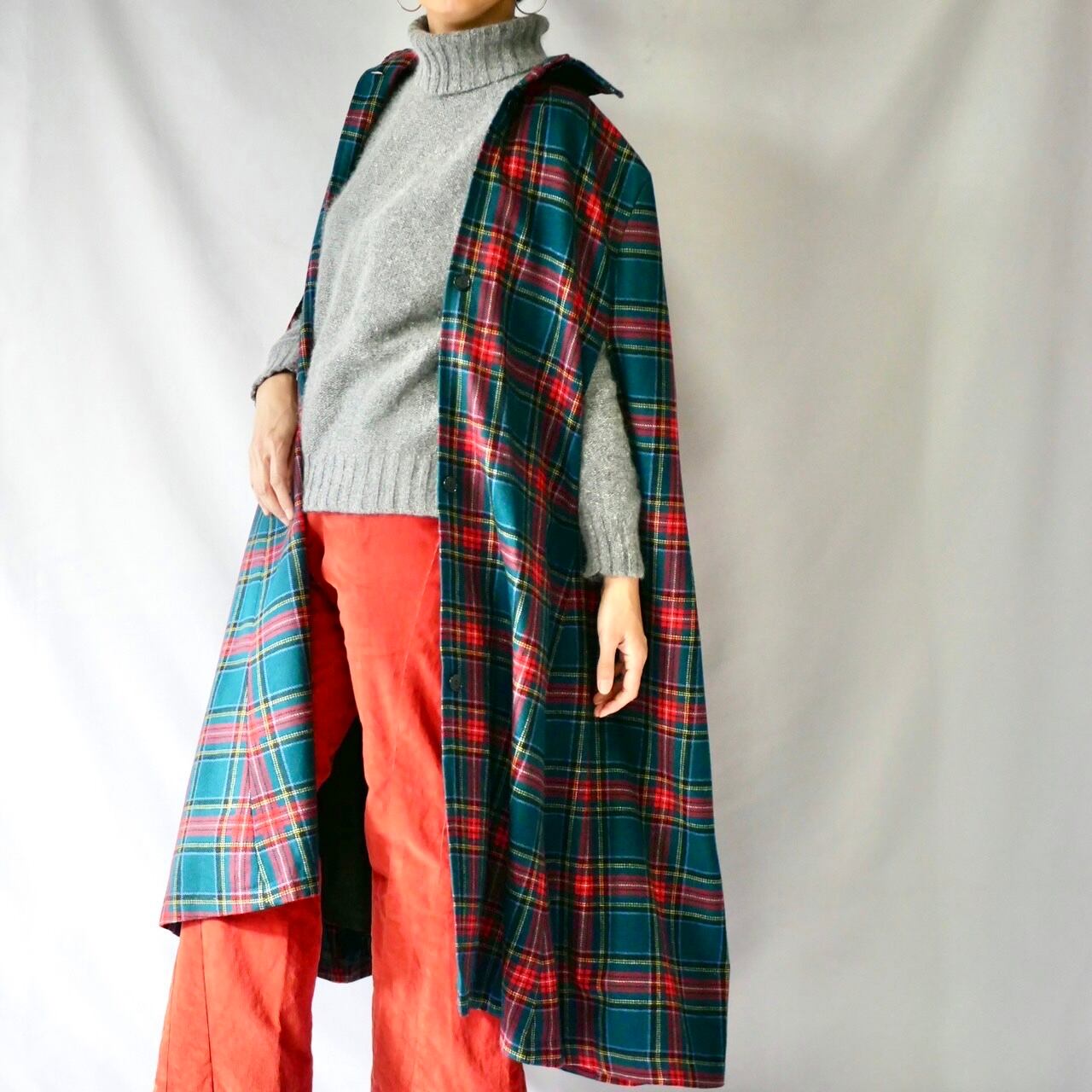 Made in UK pure new wool plaid manteau ユナイテッドキングダム製グリーンチェック柄ロングマント