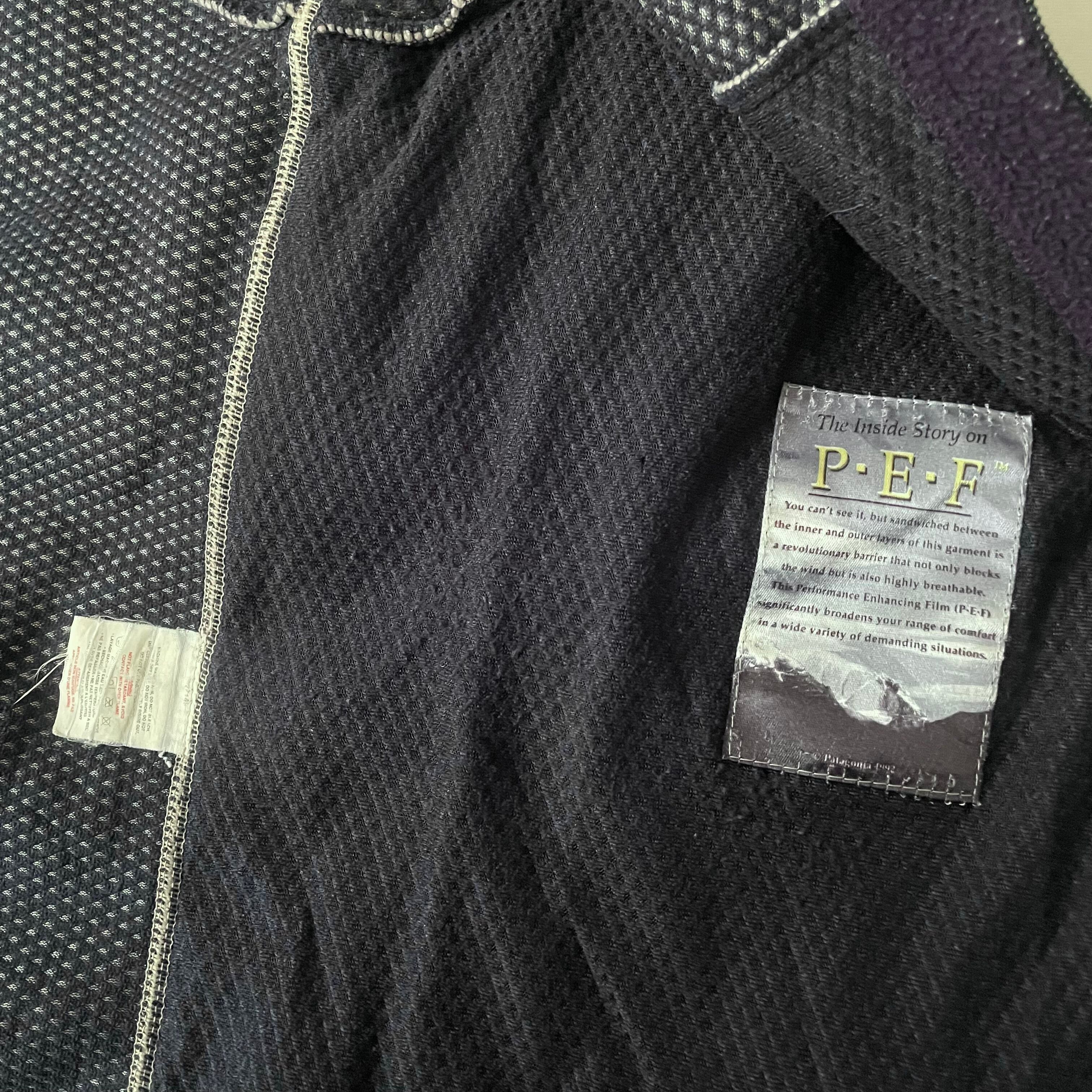 吸水性と速乾性を持つキャプリーンインナーメッシュ、そのインナーとアウターレイヤーの間に挟まれるのはPEFと呼ばれる防風性と通気性を兼ね備えたバリア素材が使用され、表地には保温性と速乾性のあるパイルフリースという真冬にも耐え得る三層構造となっています。