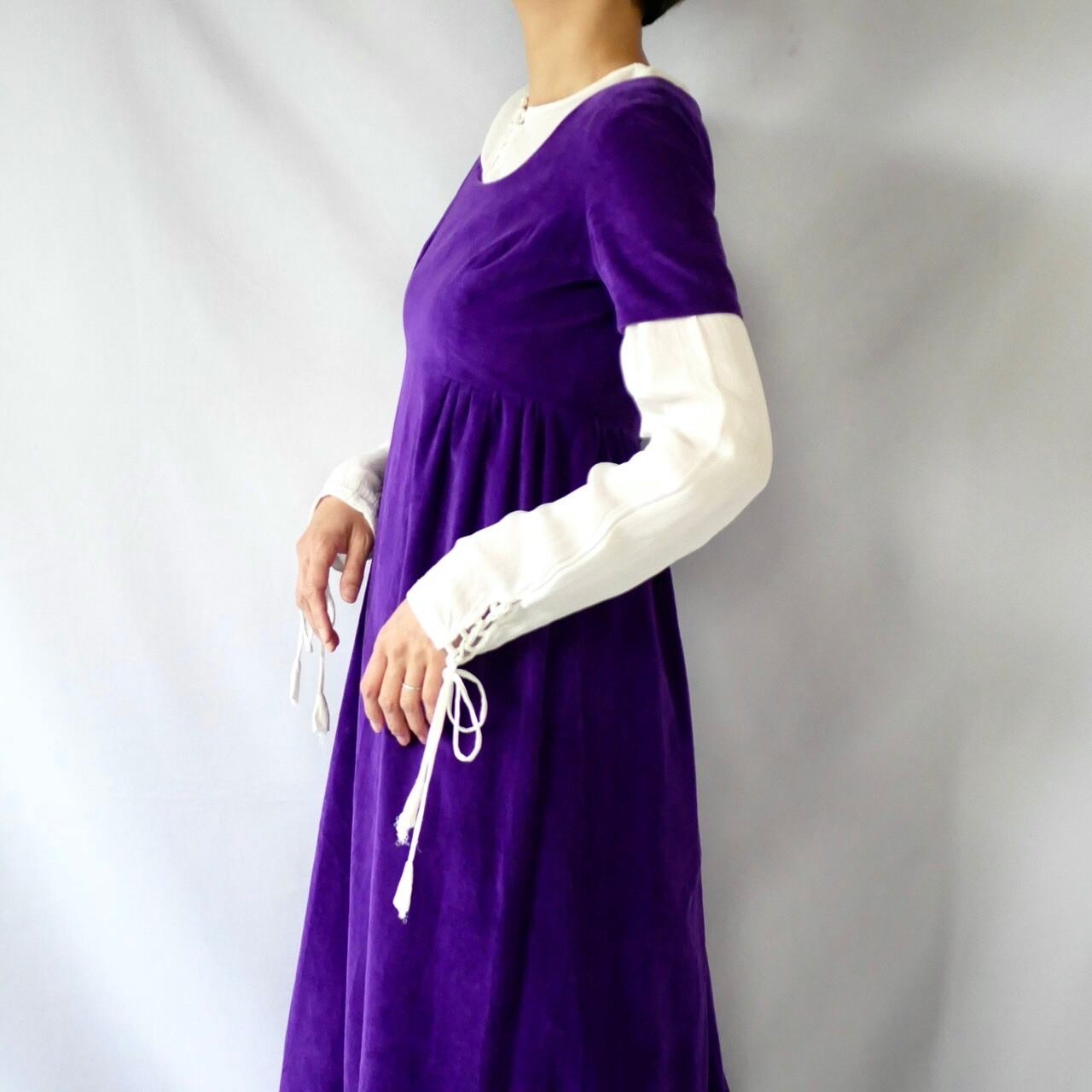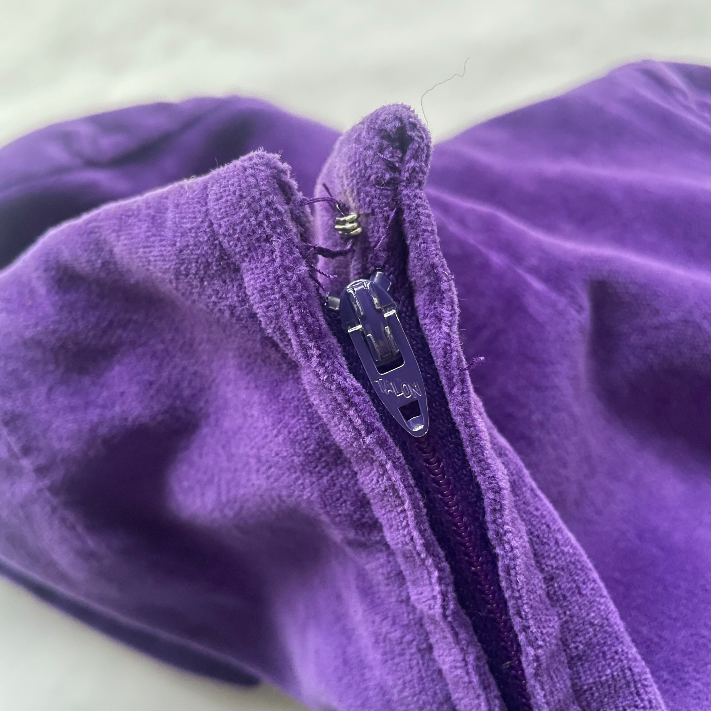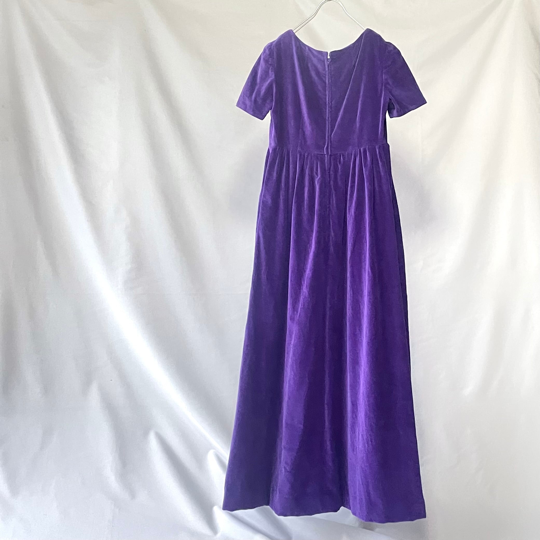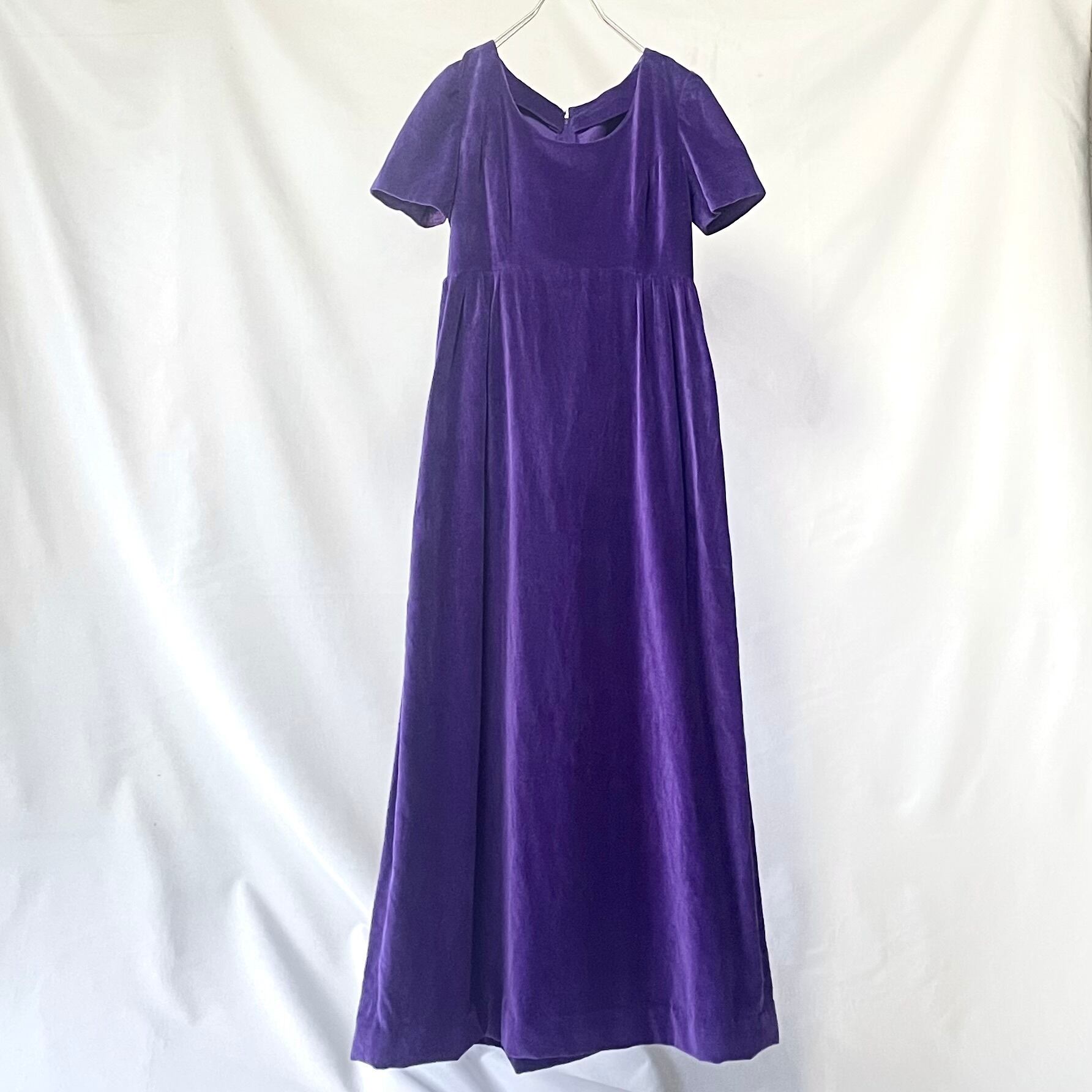 パーティーやきちんとした行事にも使えそうな、紫ベロア地の半袖マキシ丈ヴィンテージワンピースです。talon zipper