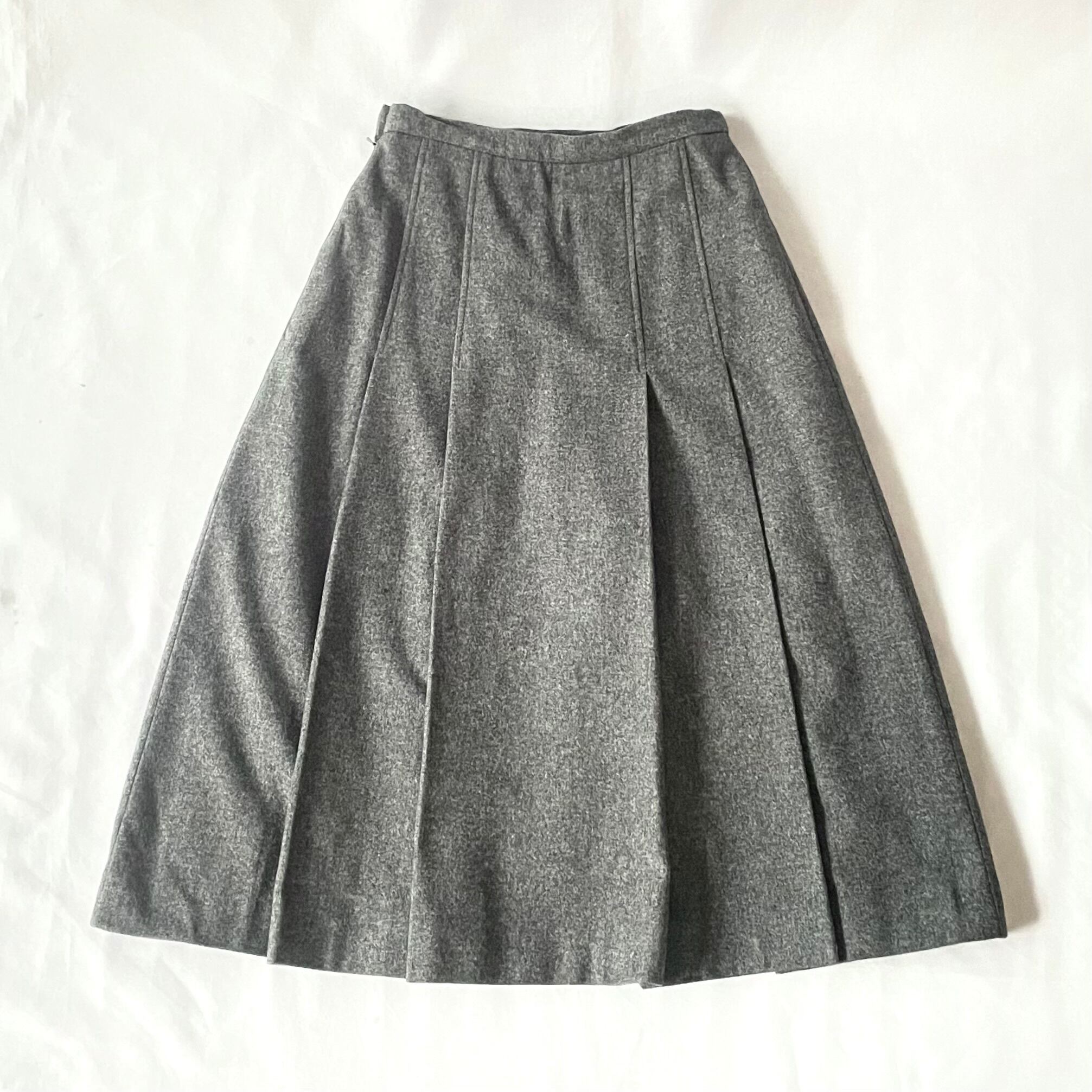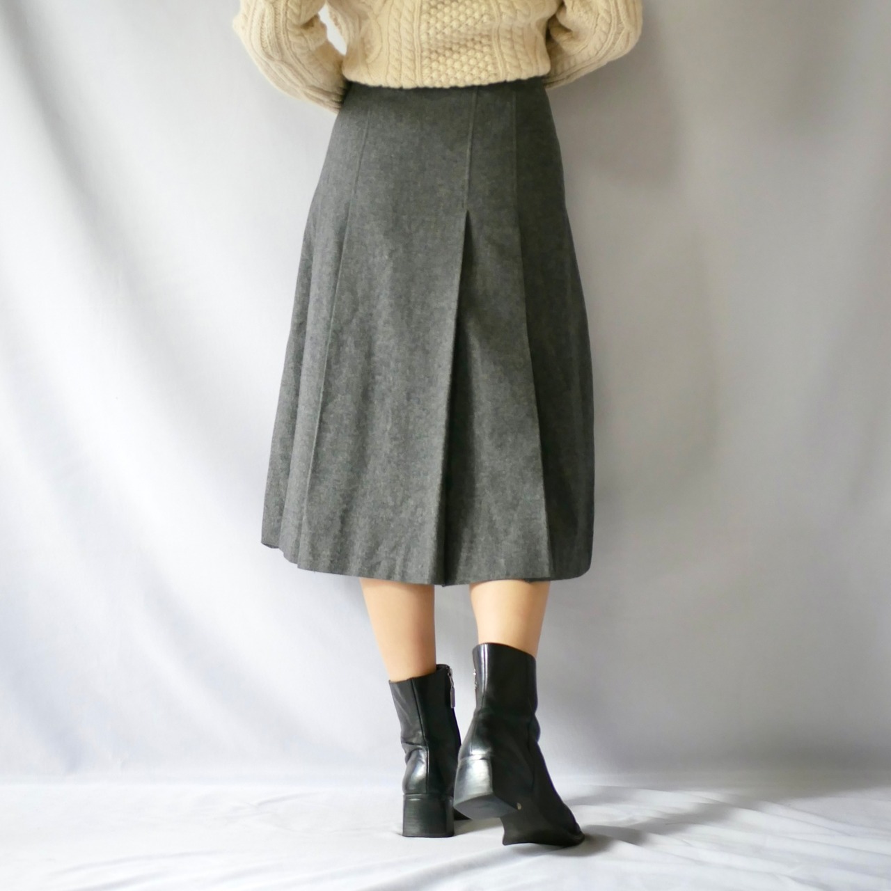 80s Made in England BURBERRYS grey box pleats skirt イングランド製バーバリーグレーウールボックスプリーツスカート