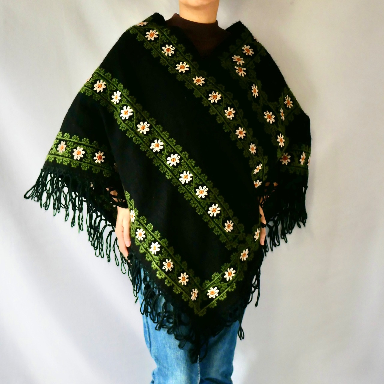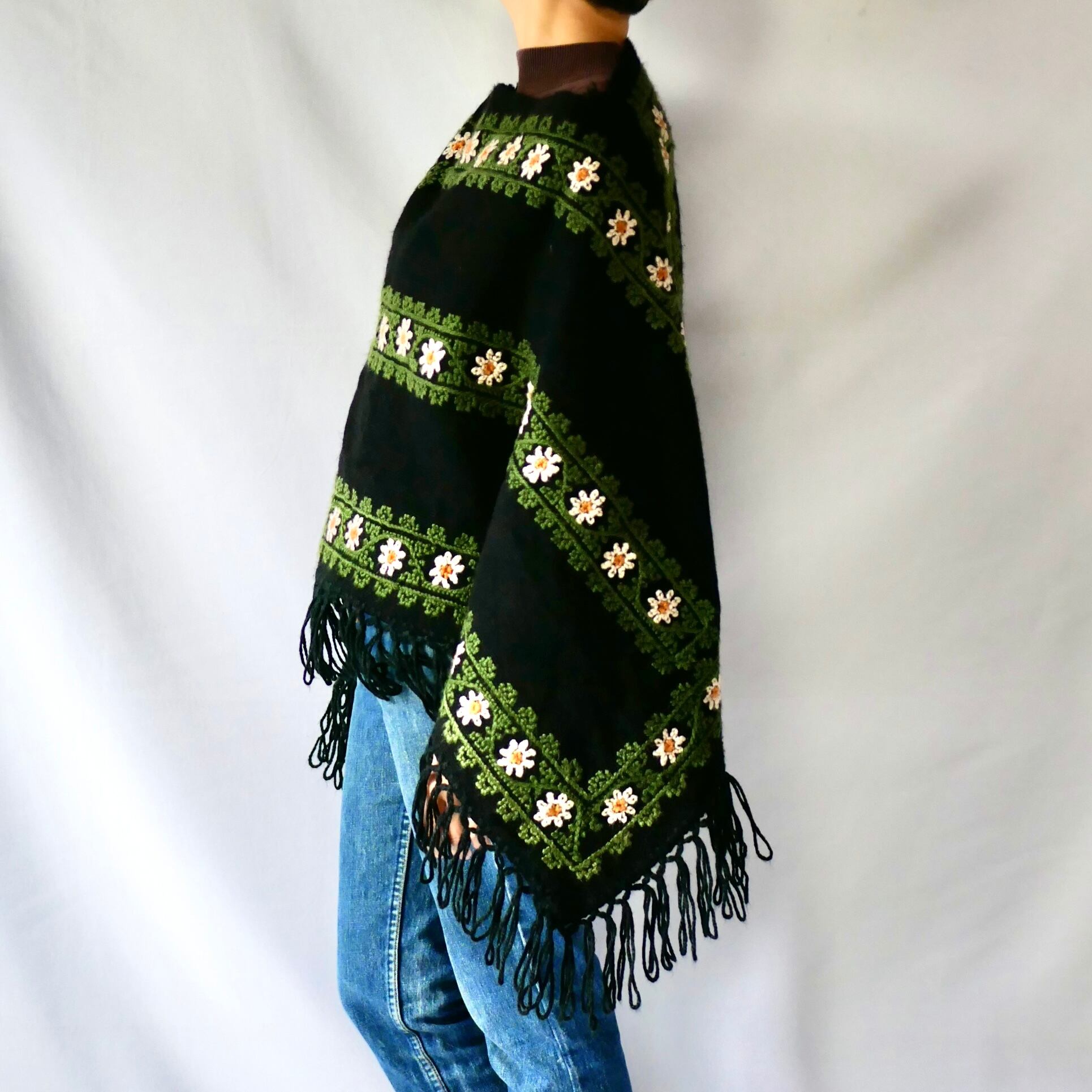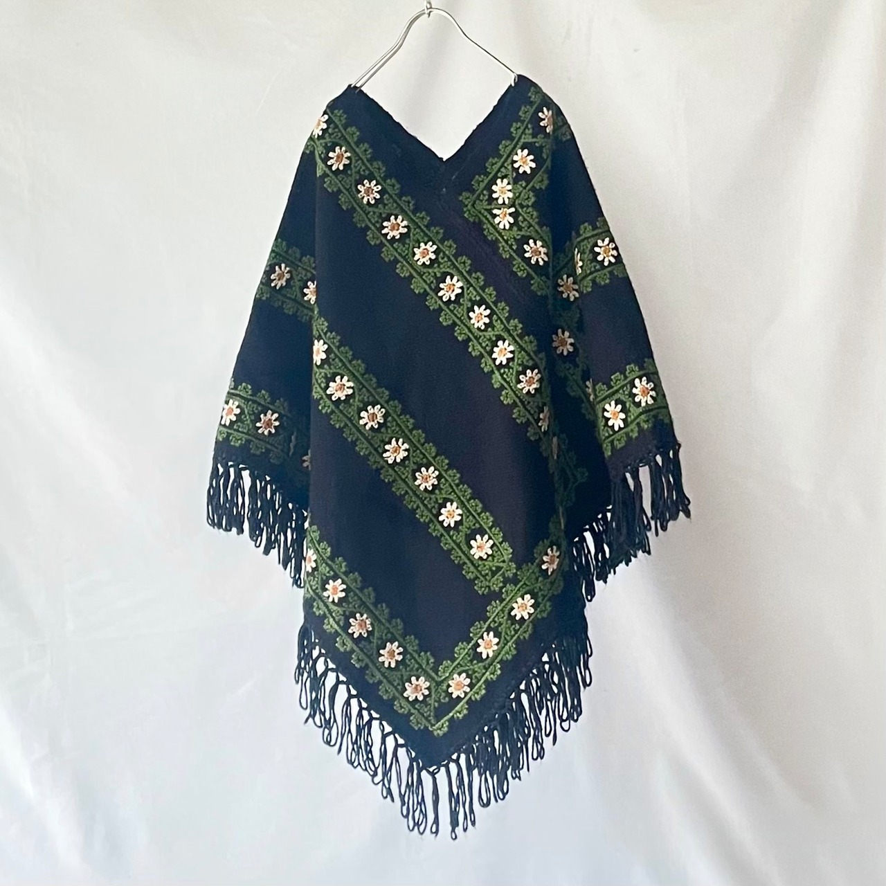 Vintage black floral embroidery poncho 黒お花刺繍ポンチョ