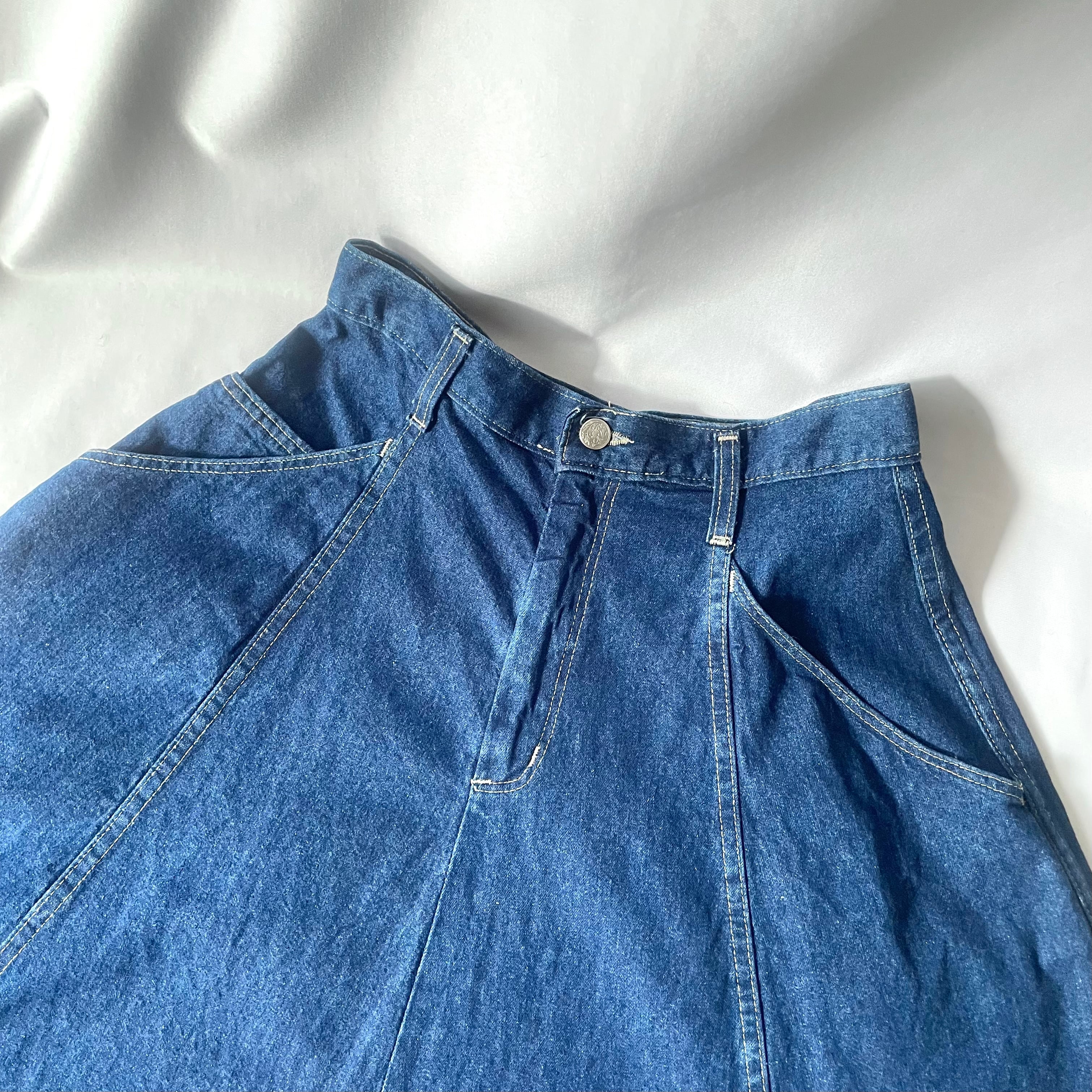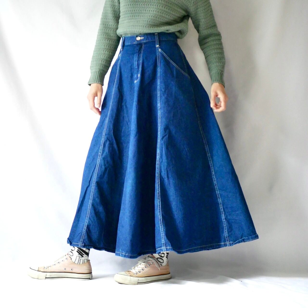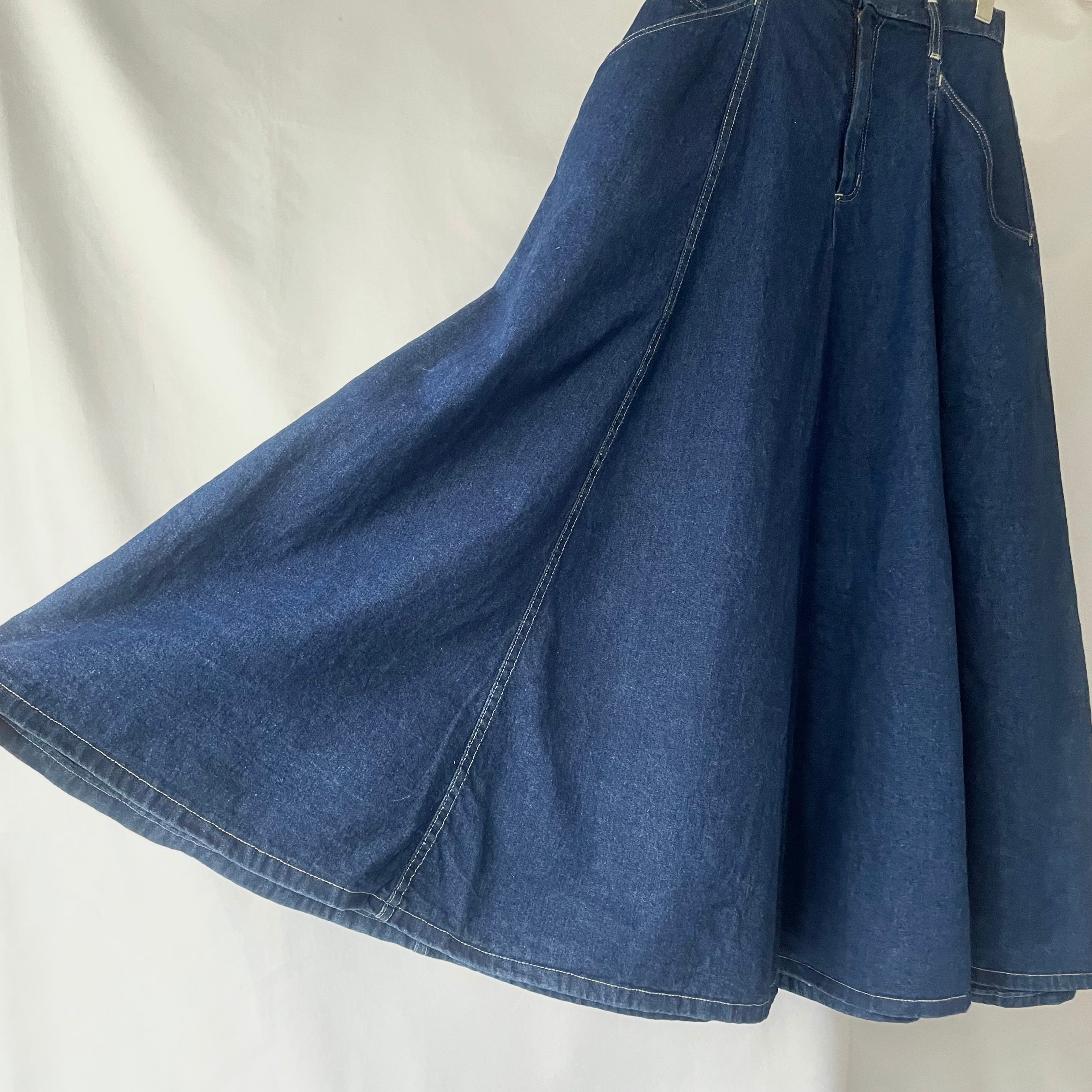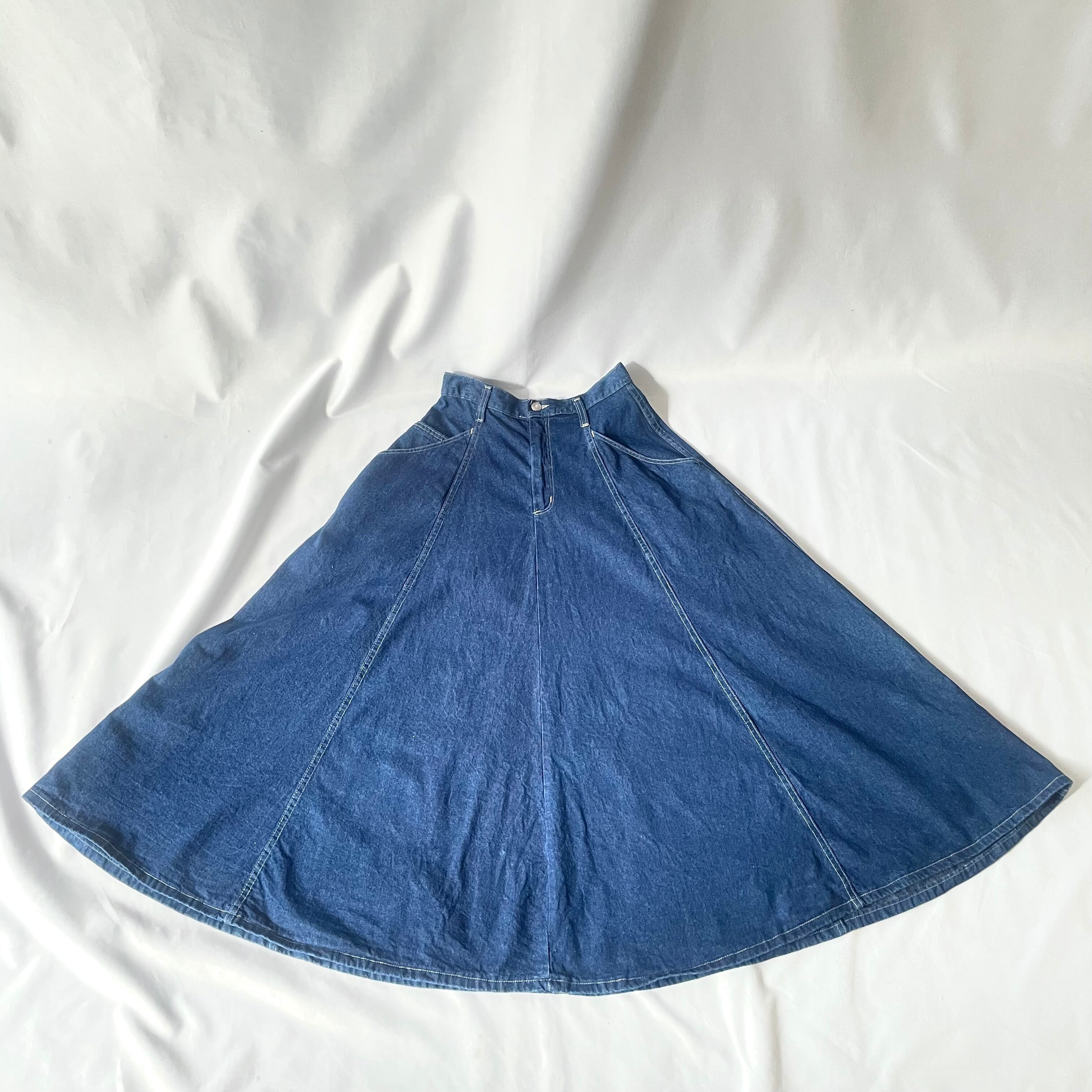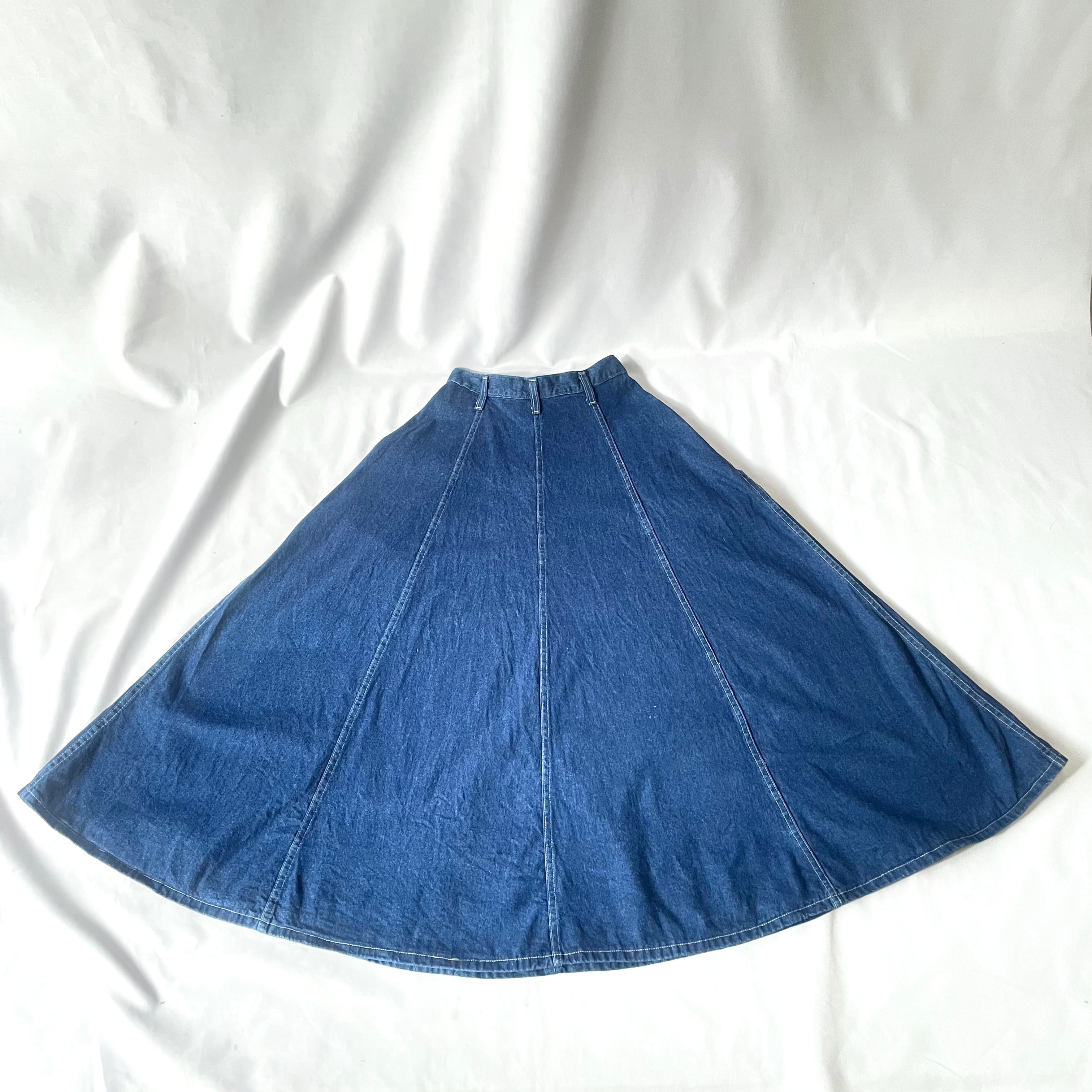 Made in USA denim flare maxi skirt アメリカ製濃紺フレアデニムマキシスカート