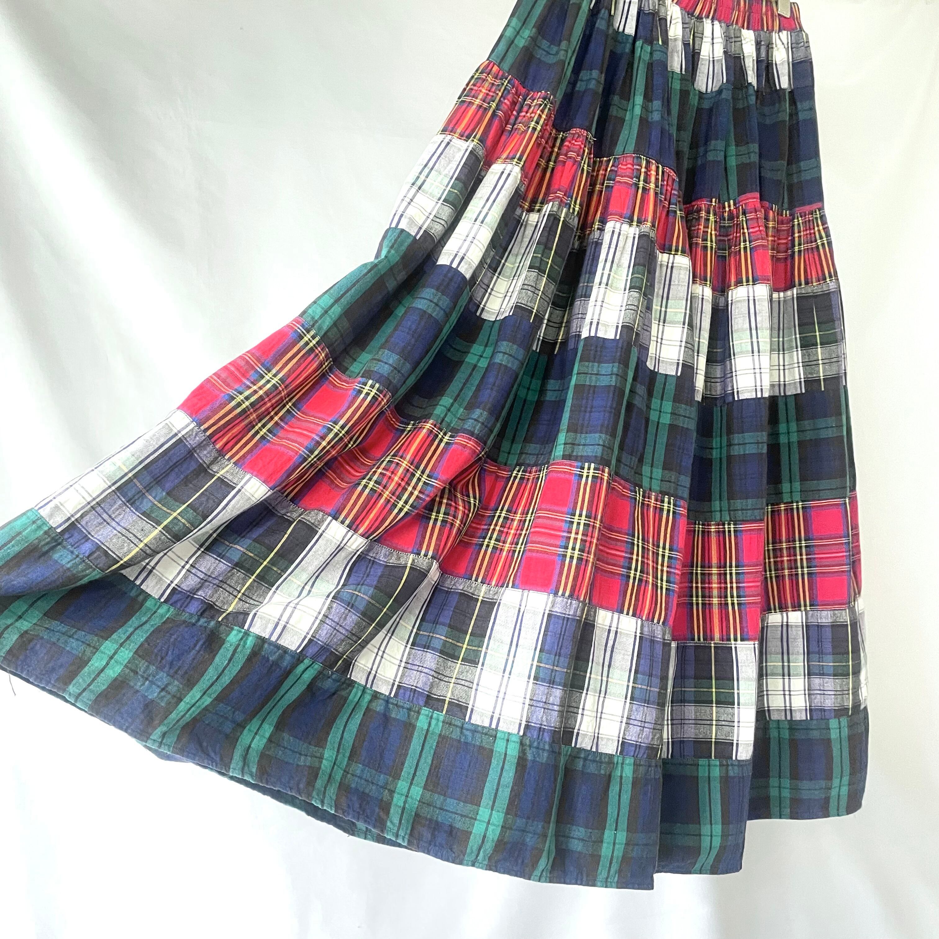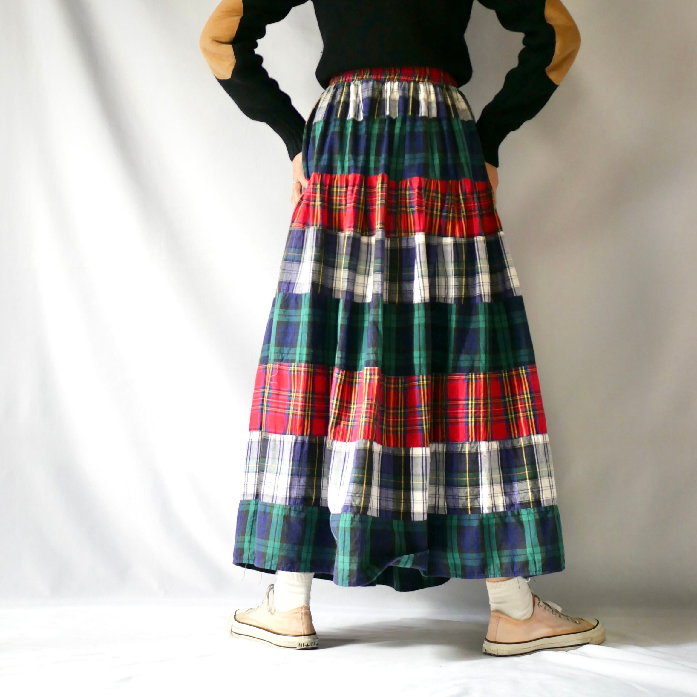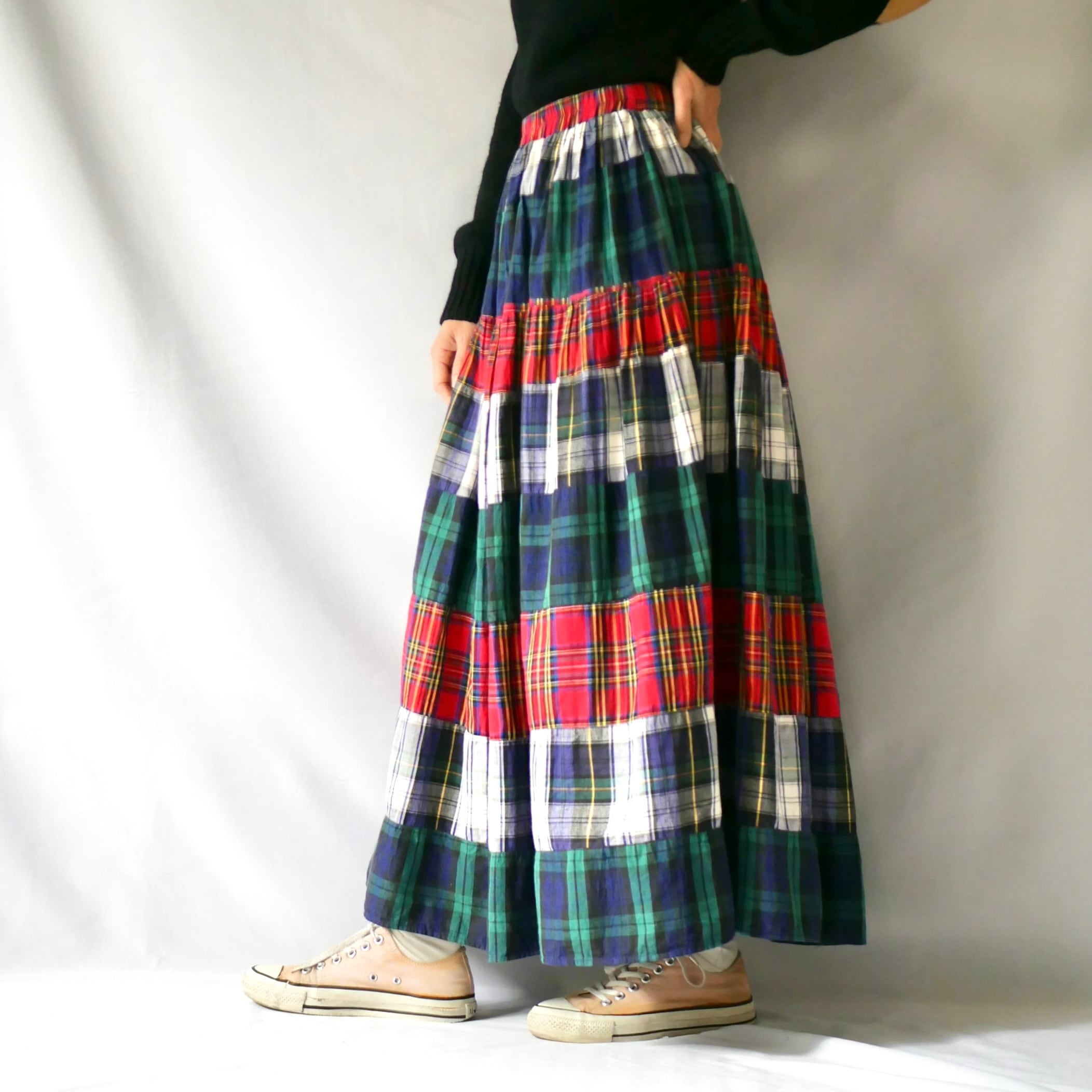 Made in USA plaid pattern maxi tiered skirt アメリカ製マキシ丈3パターンチェック柄ティアードスカート