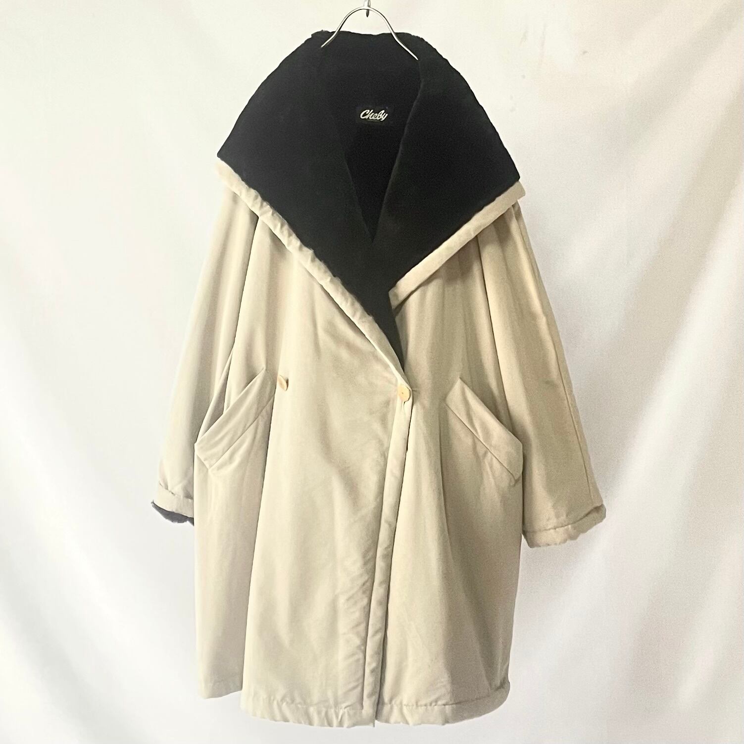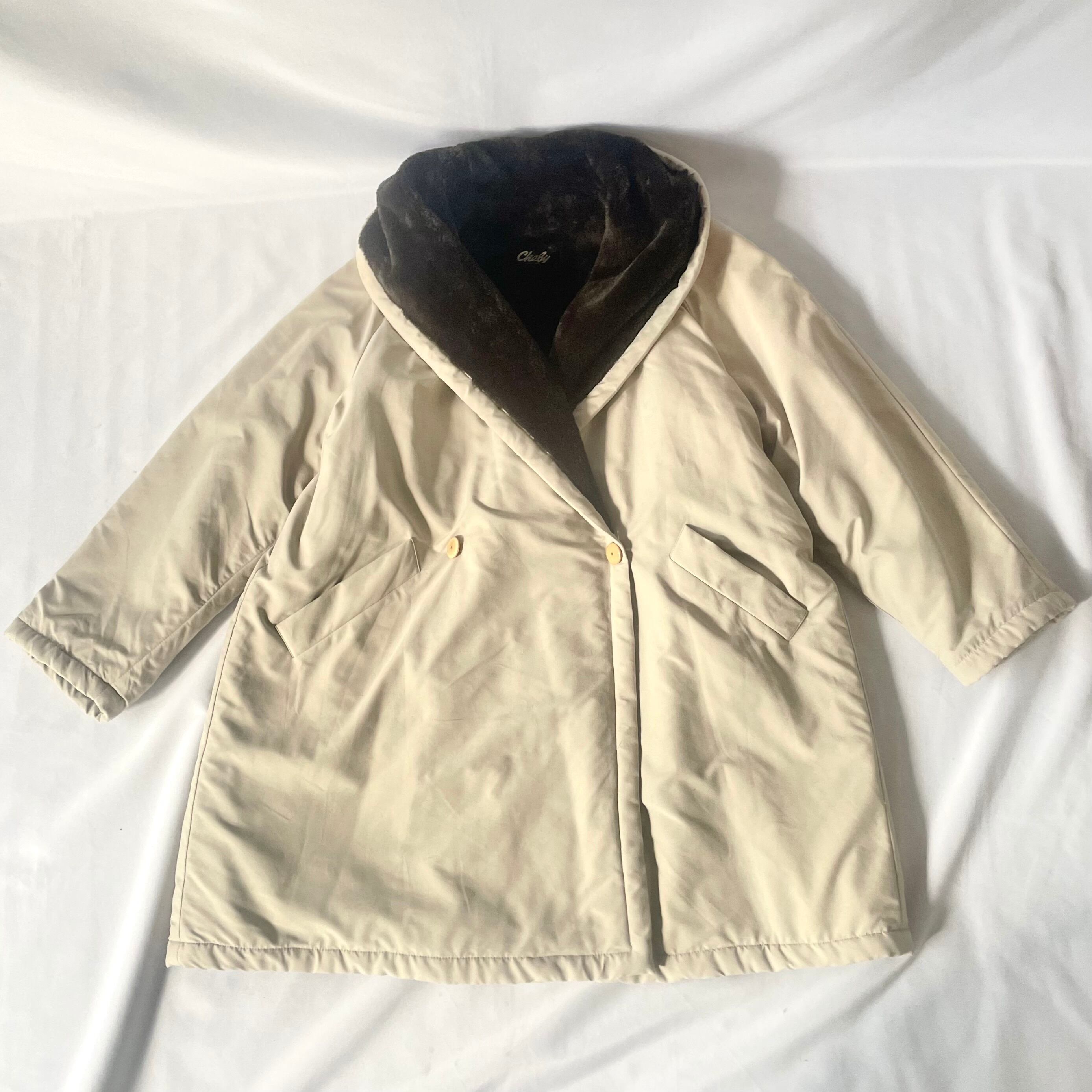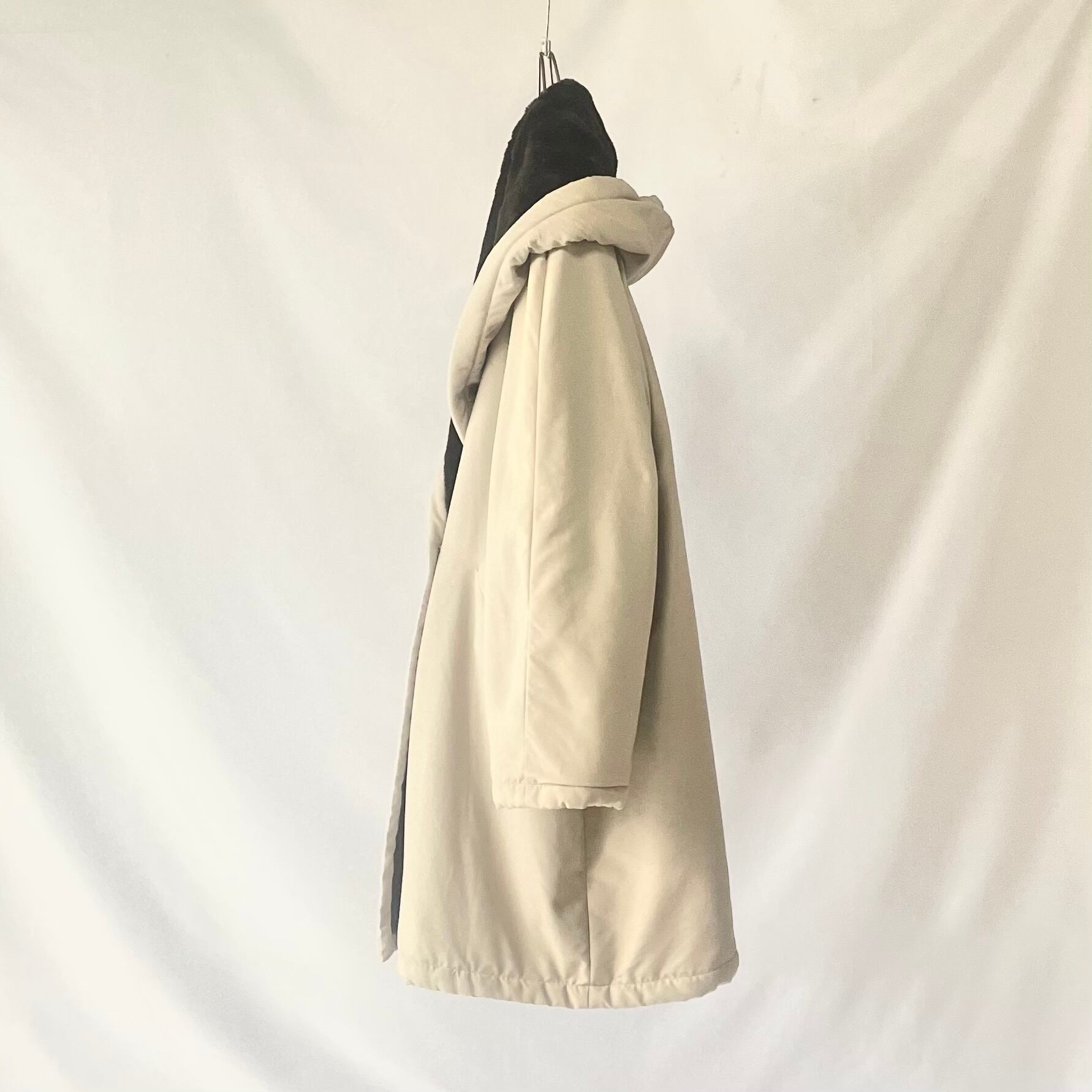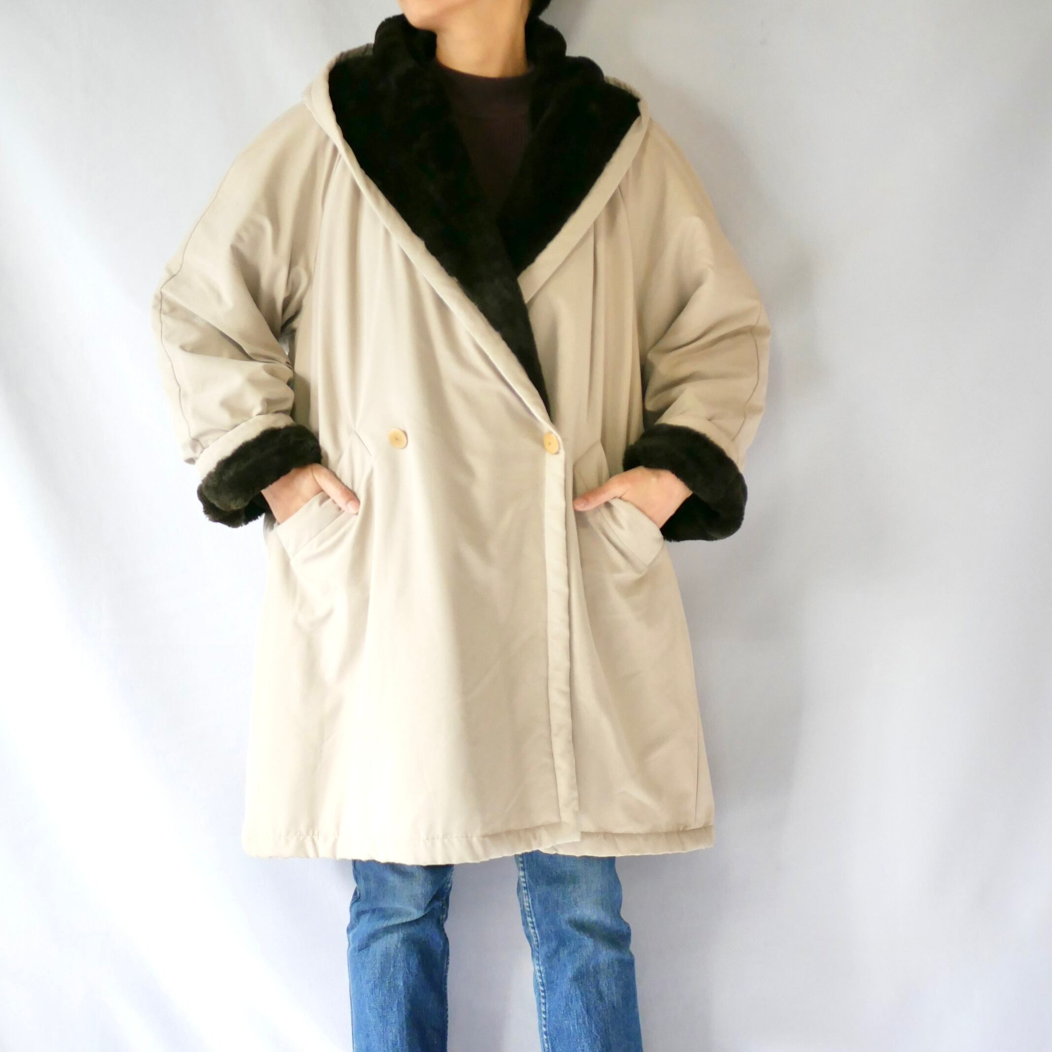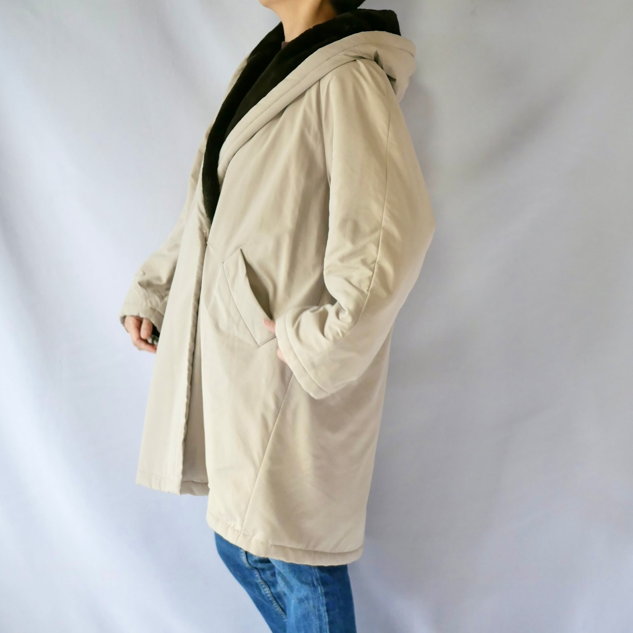 Made in Italy ivory beige brown fakefur hooded coat イタリア製裏側フェイクファーフード付きコート