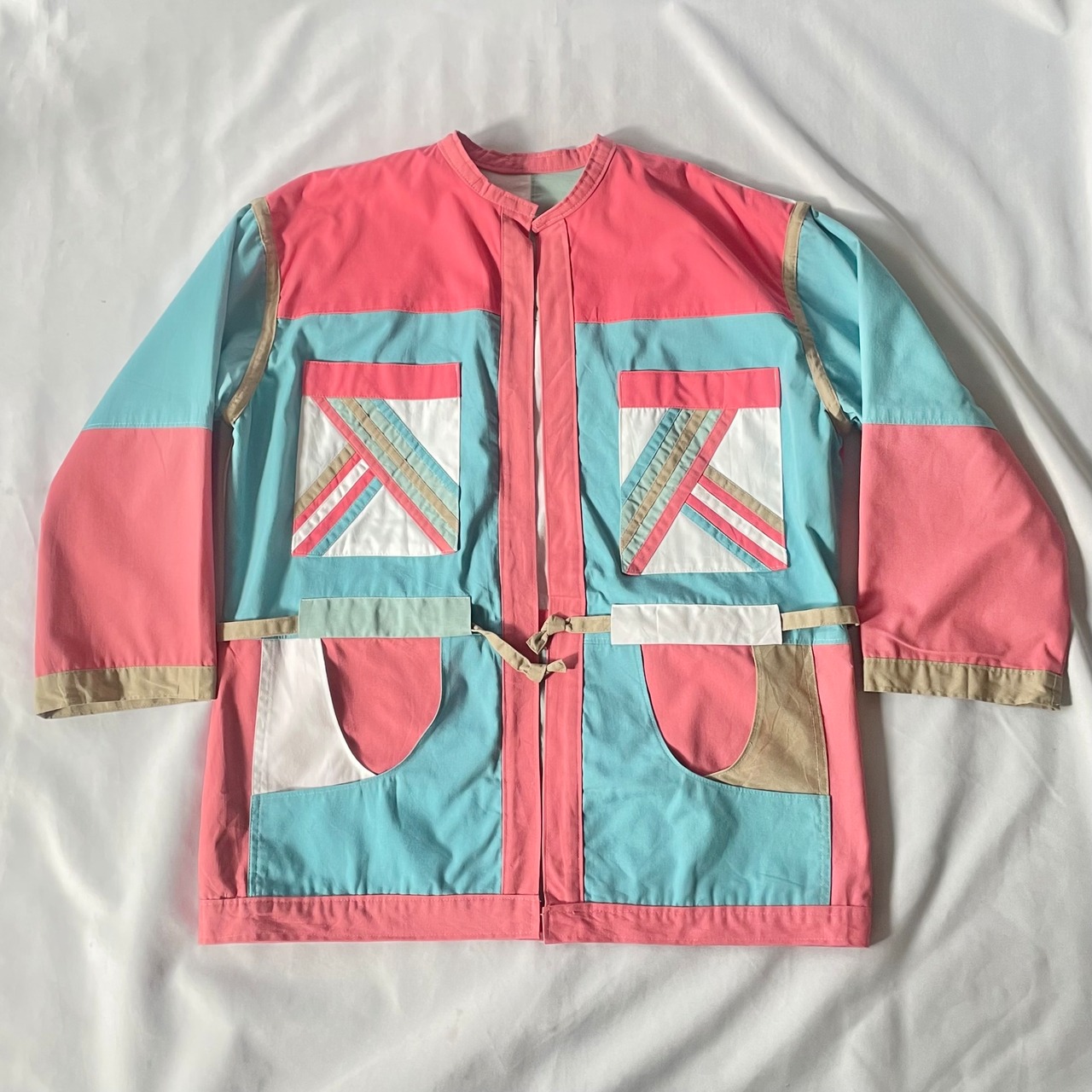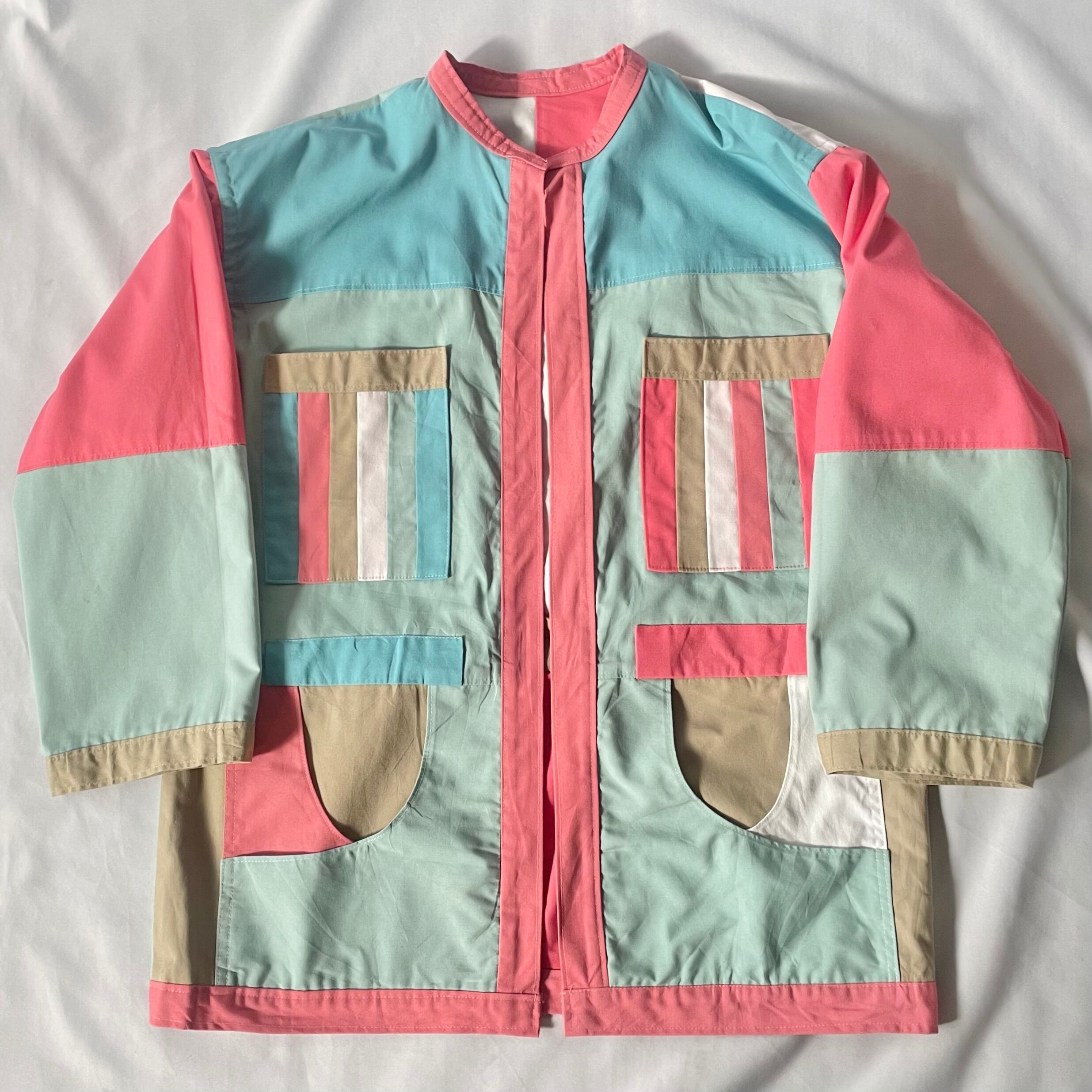 カラフルなパステルカラーがとても可愛い、リバーシブル クレイジーパッチワークのJKTです。タグが欠損していますが、造りからネパールのヴィンテージ物で間違いないと思われます。