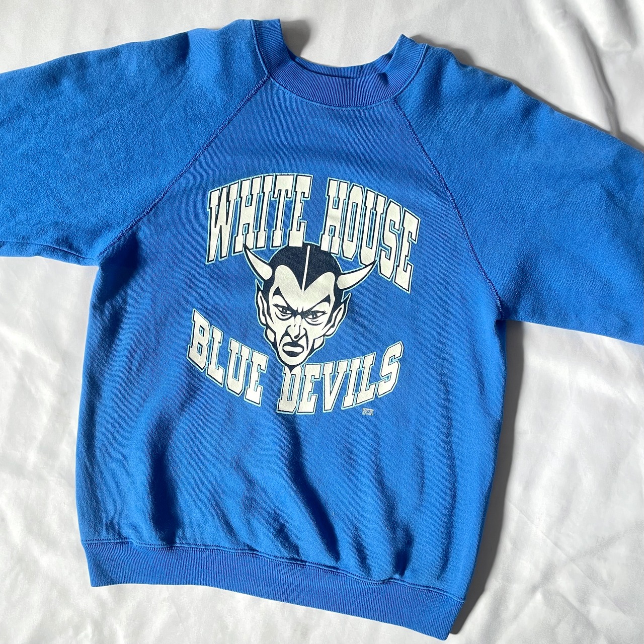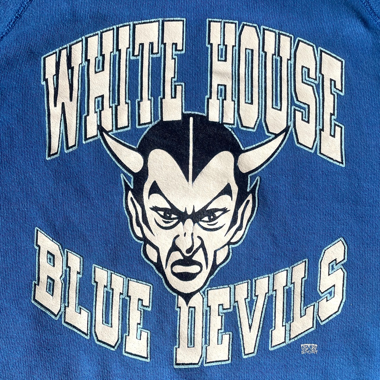 アメリカ製TULTEXボディーに フットボールチーム WHITE HOUSE BLUE DEVILSのプリントが入ったスウェットです。