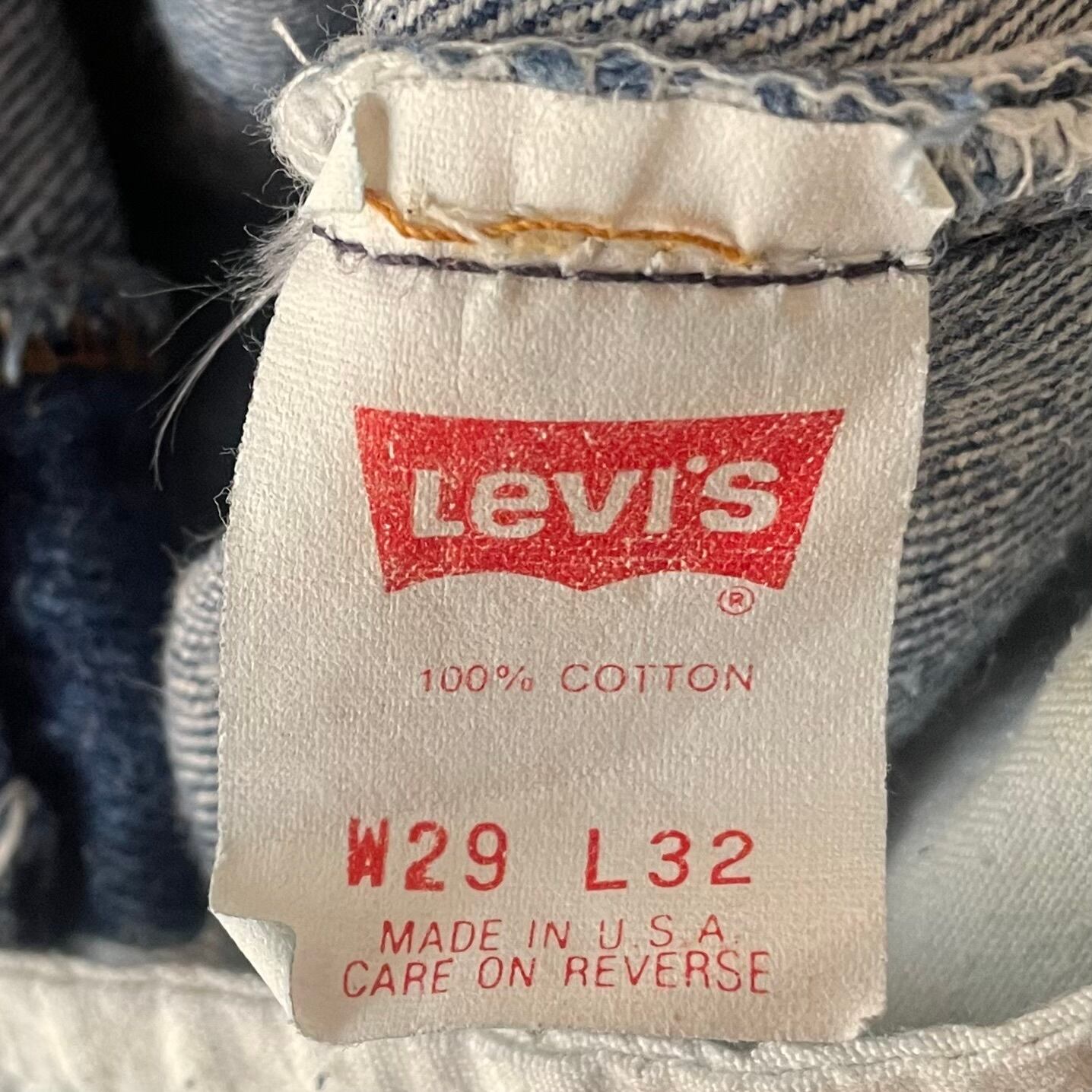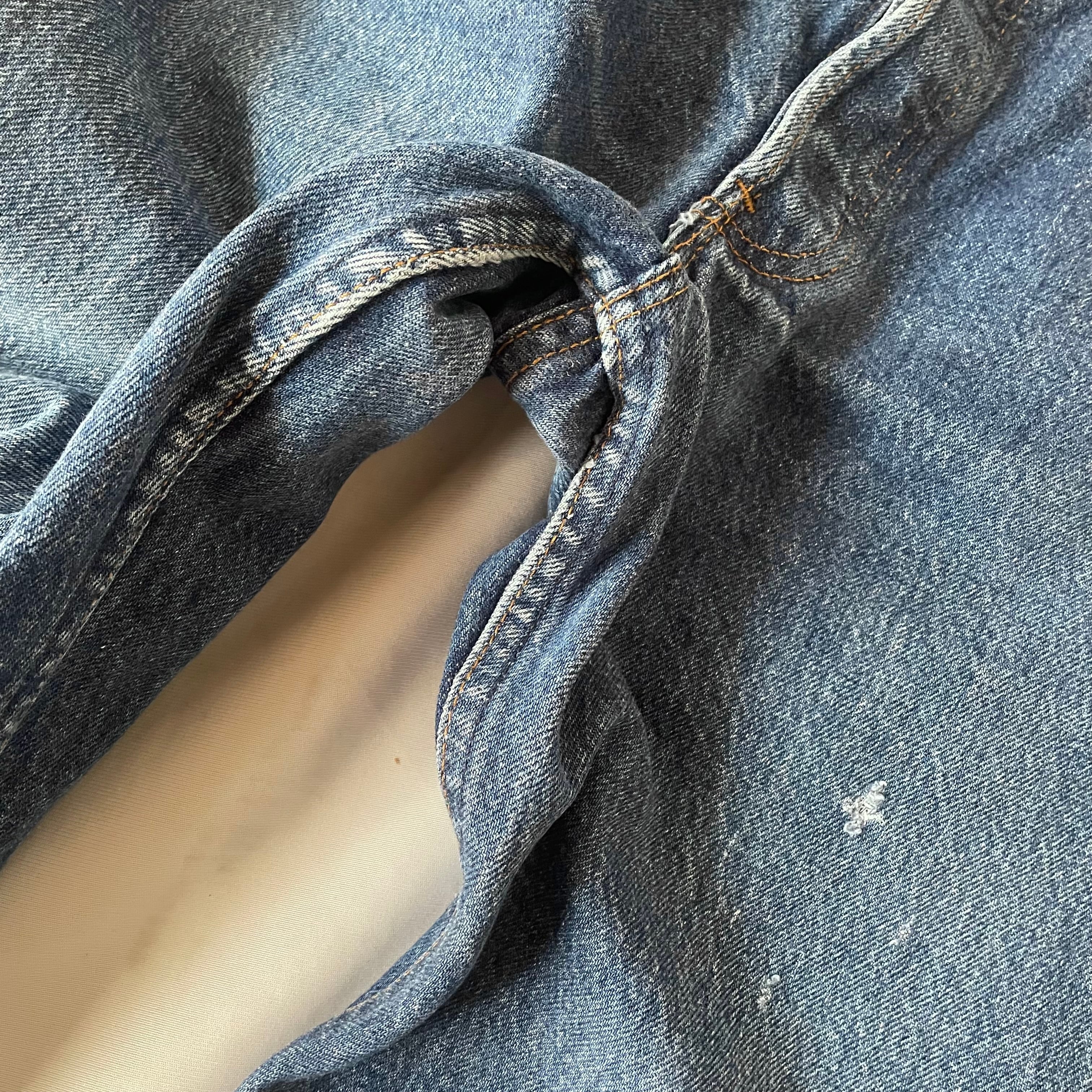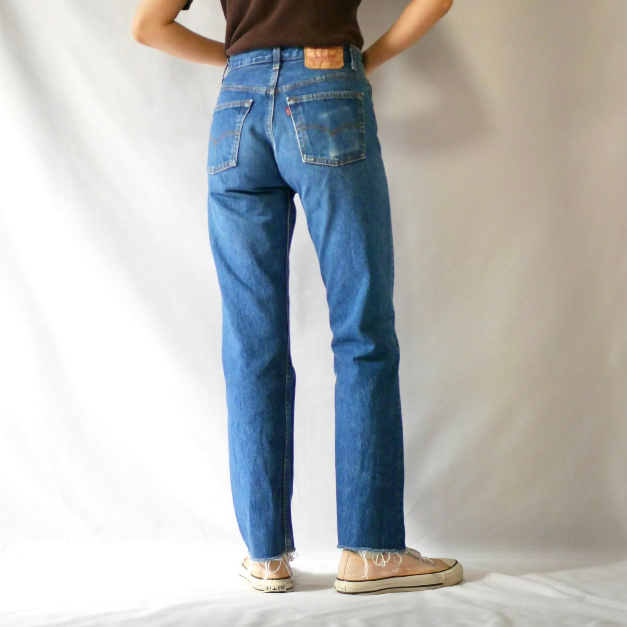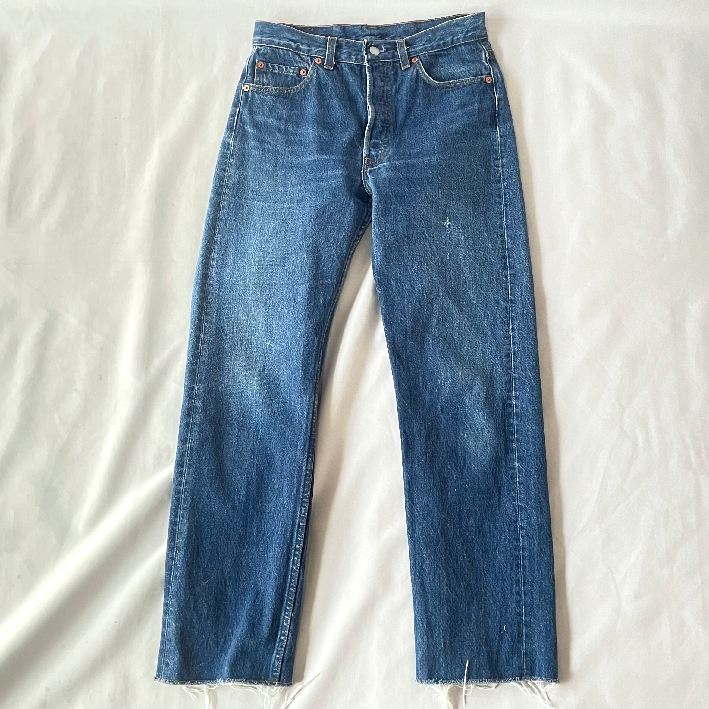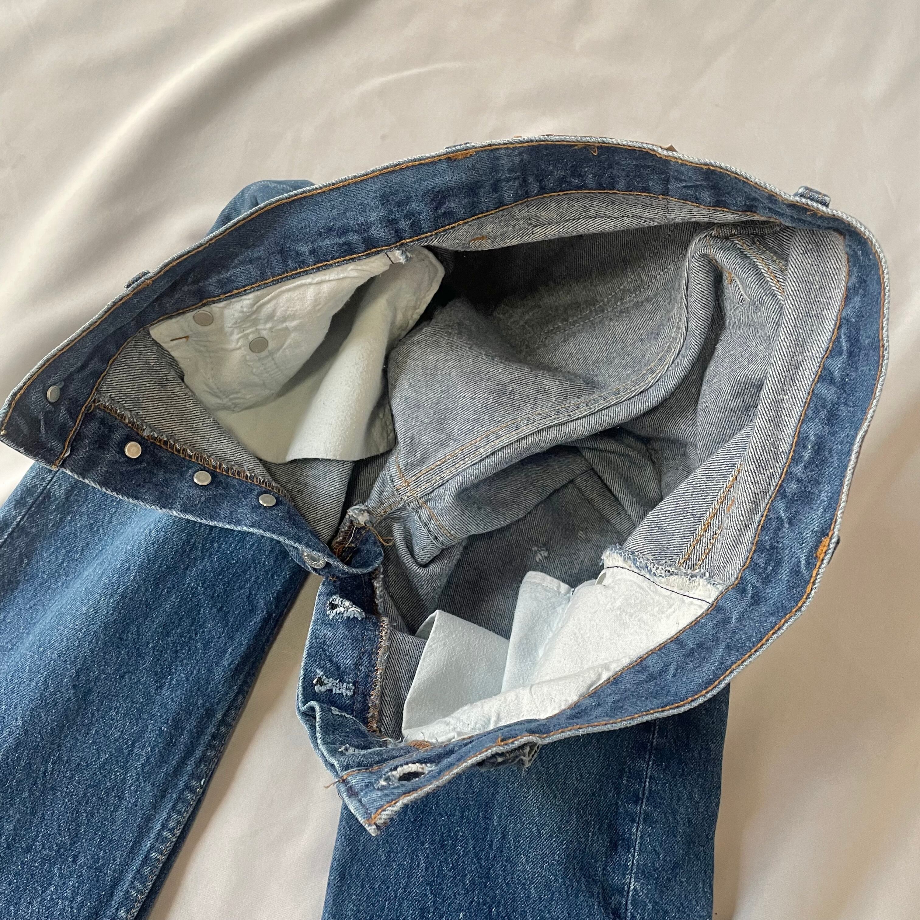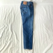 90年代ヴィンテージ USA製リーバイス 501裾切りっぱなし デニムパンツです。裾上にステッチ入りで、ほつれてこない様になっています。ボタン裏553