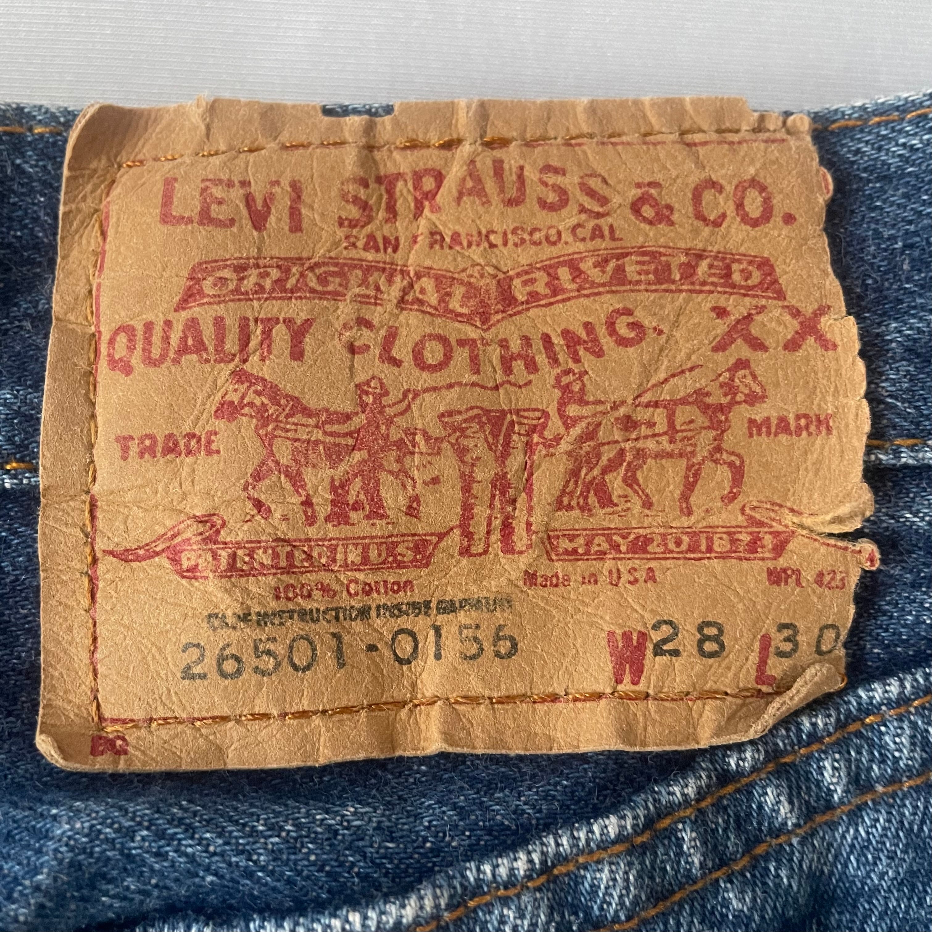 80年代ヴィンテージ USA製リーバイス 26501 -0156 内股シングル デニムパンツです。501のレディースタイプの26501品番は、通常の501よりハイウエストかつ若干お尻に丸みのあるシルエットとなっており、女性に大変お勧めな希少デニムです。赤耳直後のインサイドシングルステッチ。