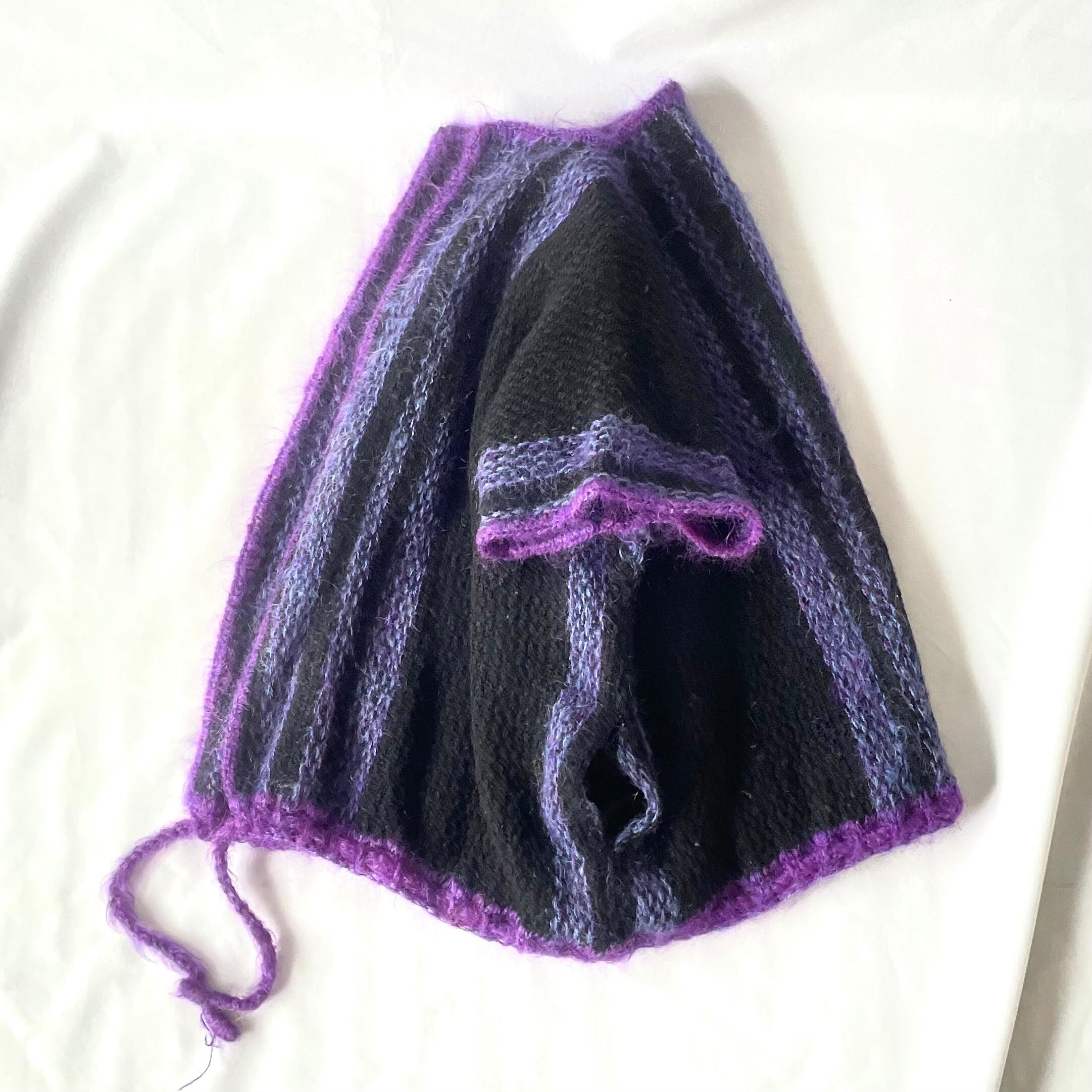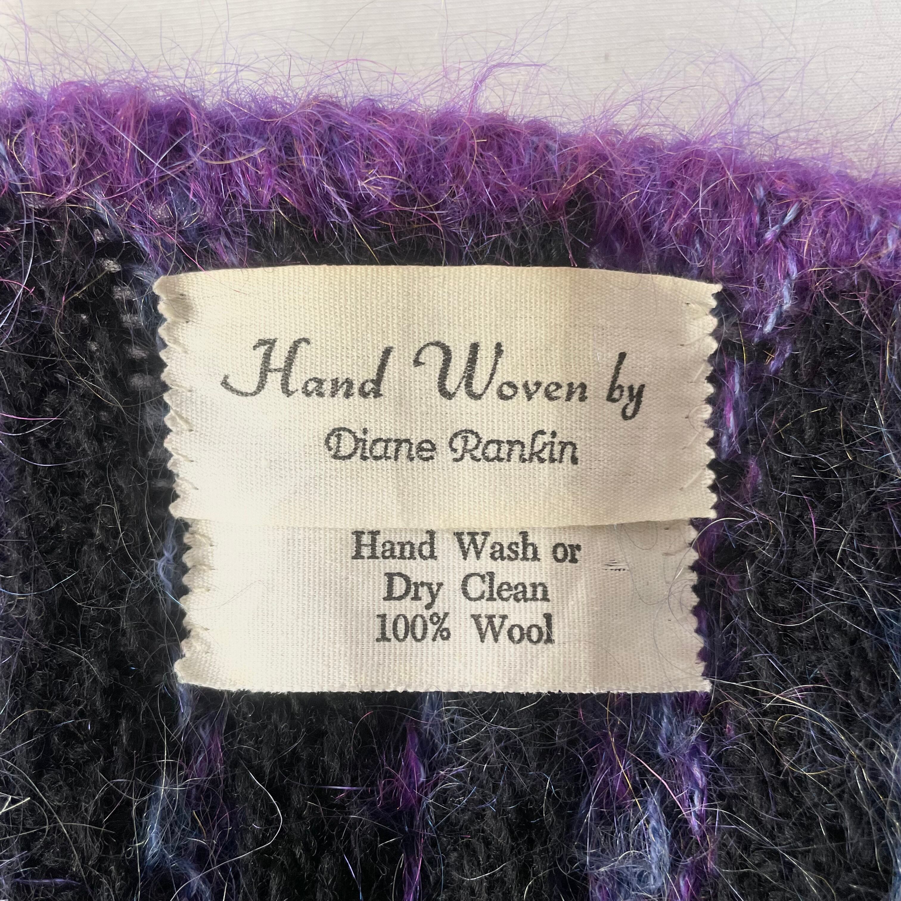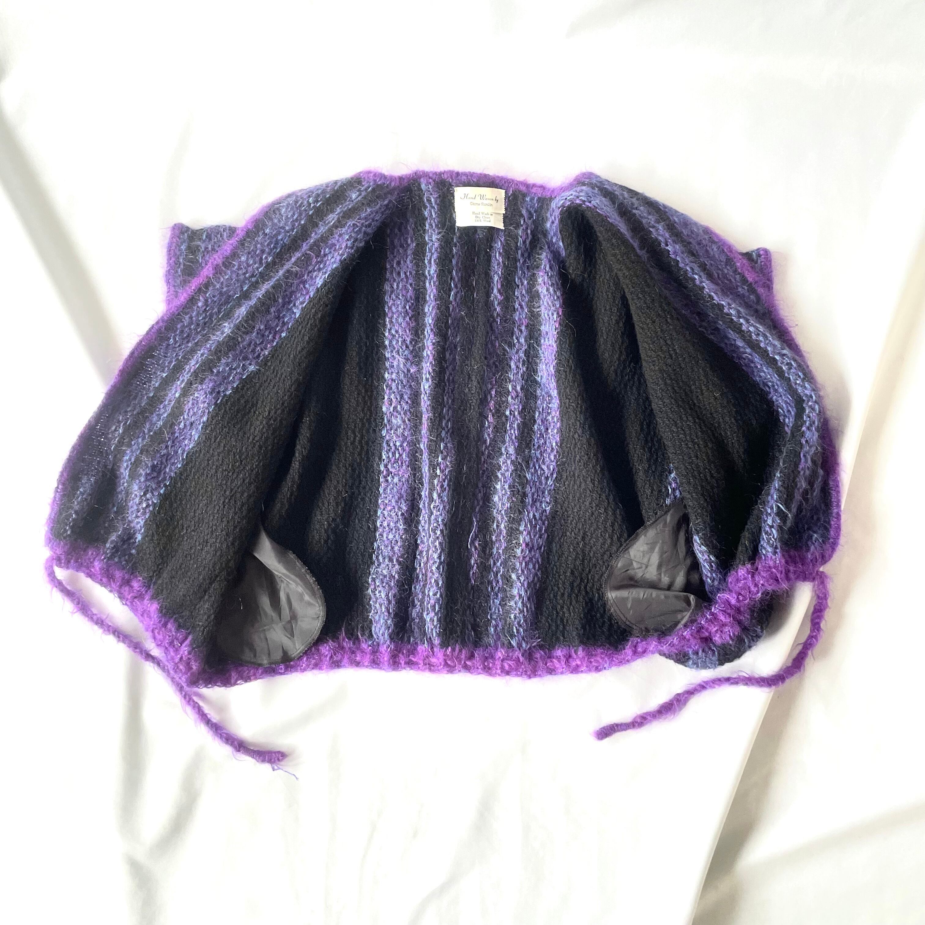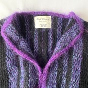 黒地に紫のふんわりした手織りニットが素敵な、ヴィンテージフレンチスリーブ前開きニットベストです。