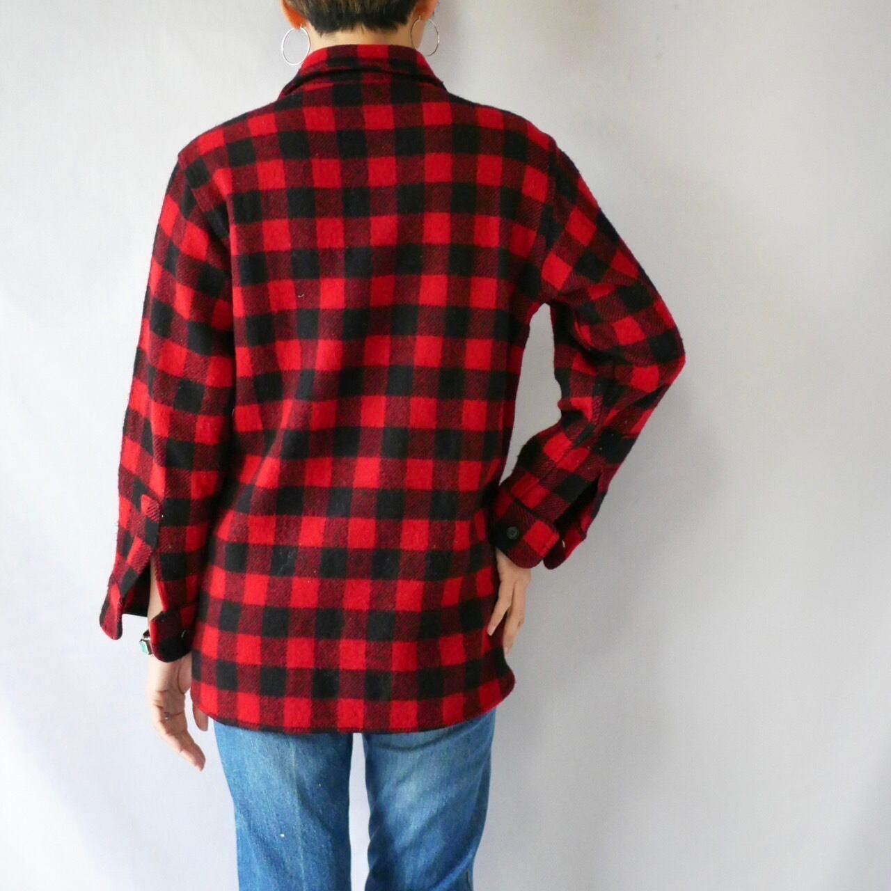 70年代ヴィンテージ アメリカ製 赤黒バッファローチェック ウールシャツです。状態良好。