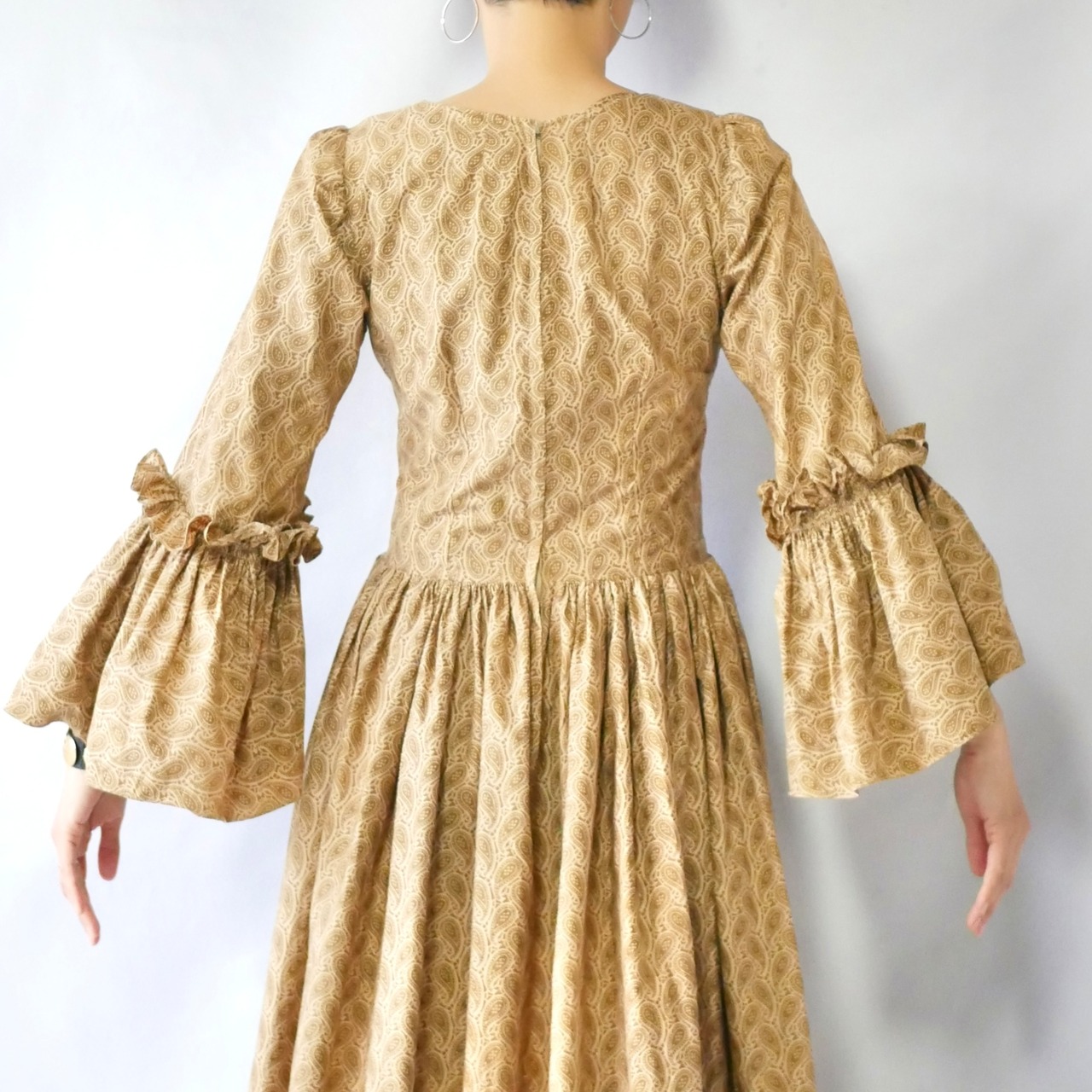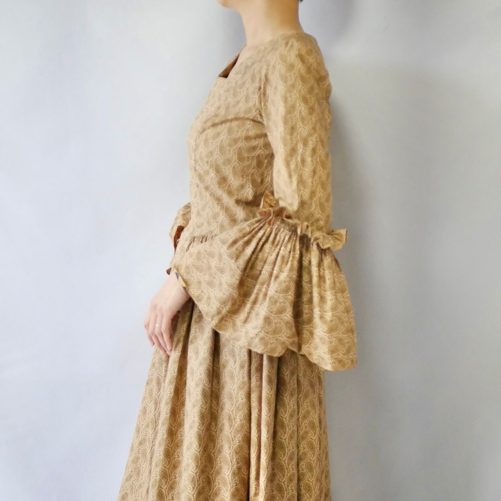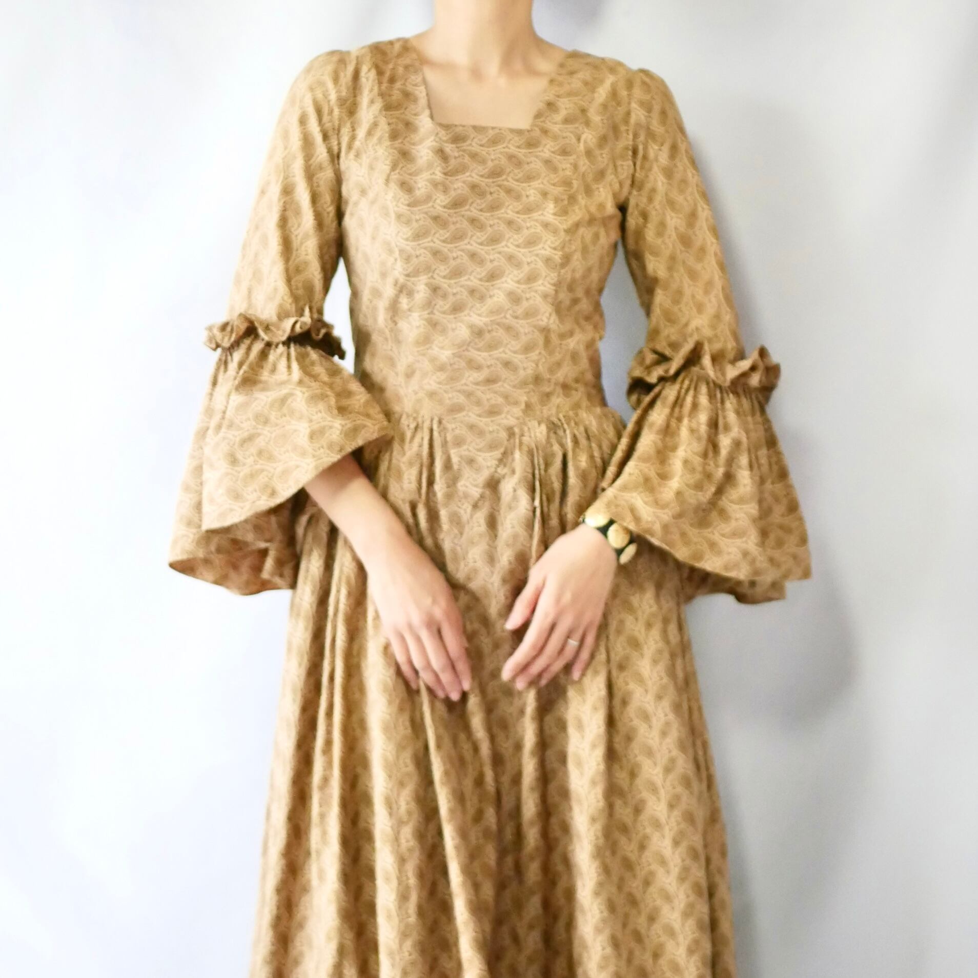 70s handmade bellsleeve maxi onepiece ハンドメイド ペイズリー柄 ワンピース