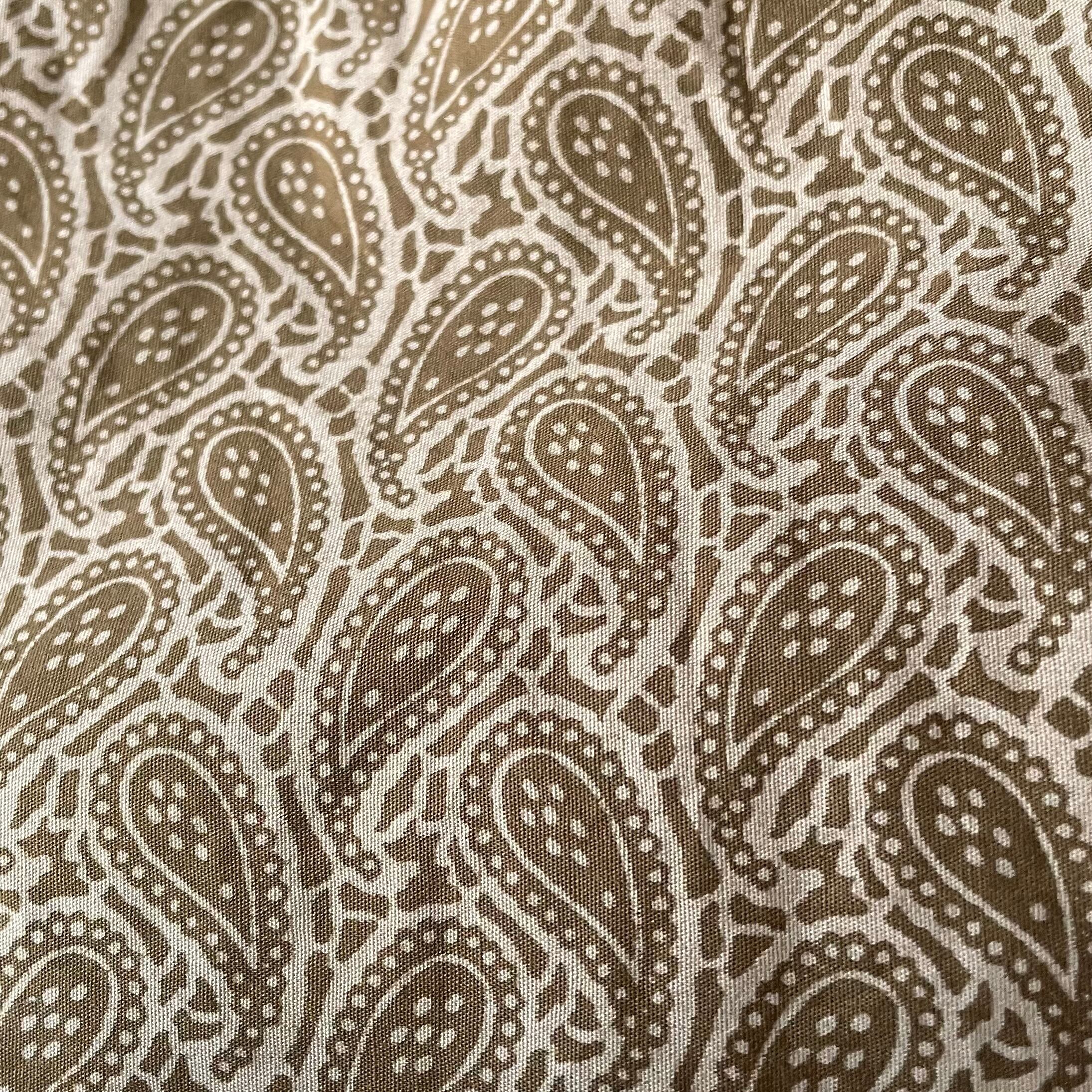 若草物語のような雰囲気が素敵な、ベージュペイズリー柄コットンマキシ丈ワンピースです。生地や部品、デザインから70年代当時のハンドメイドと思われます。