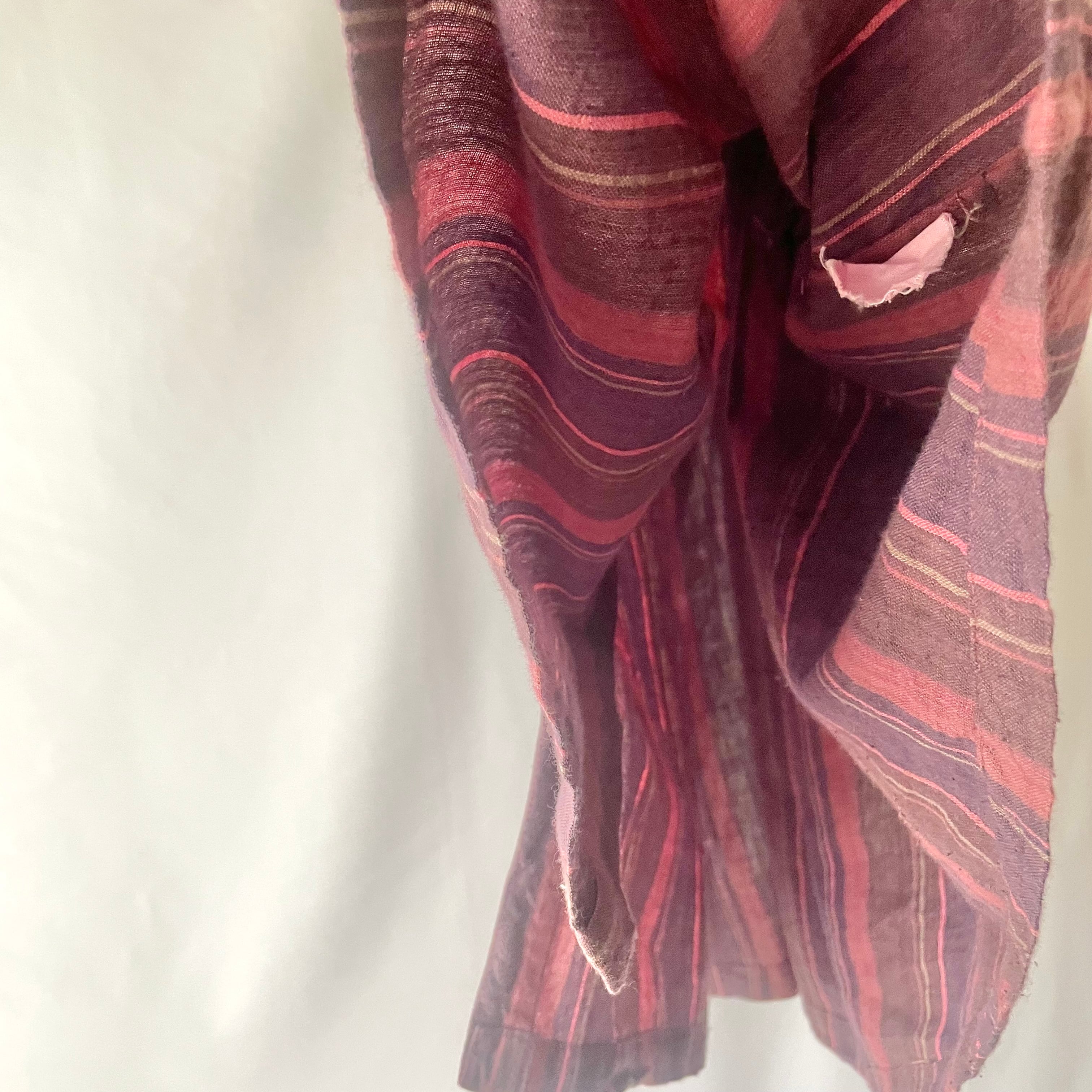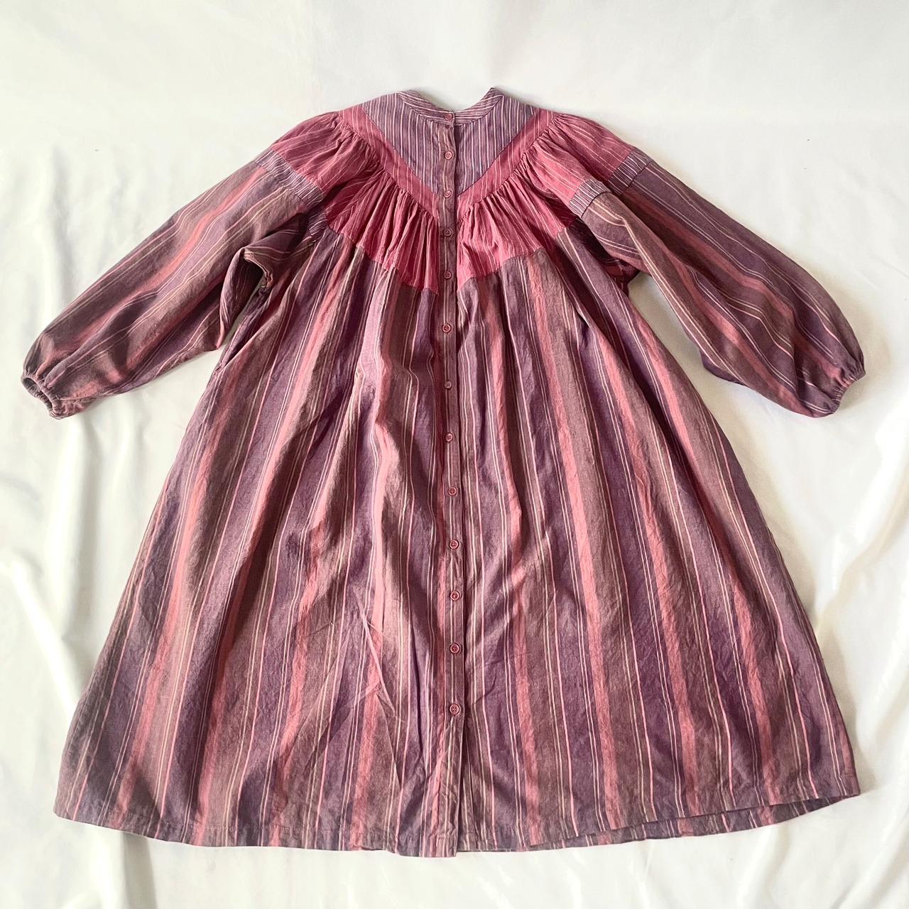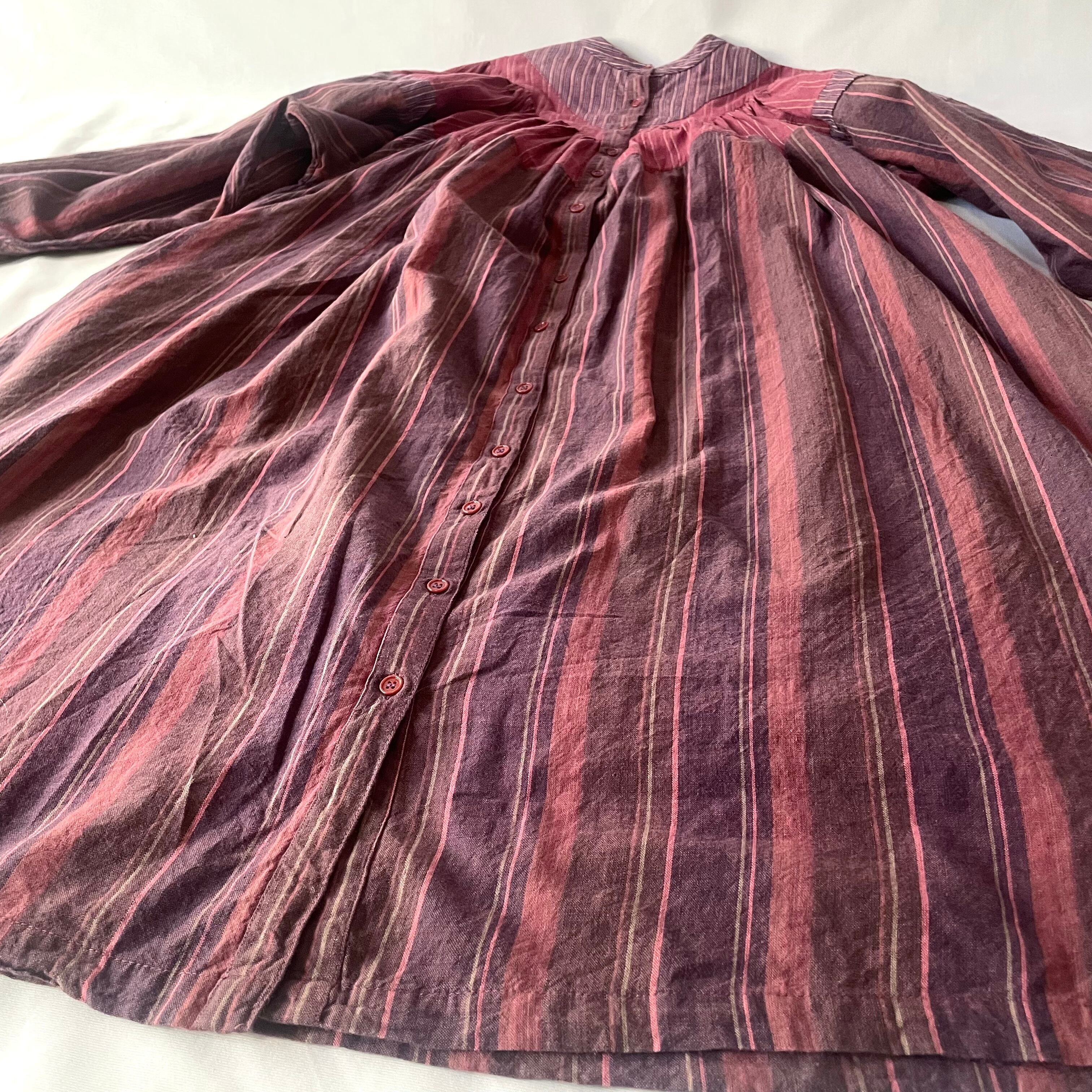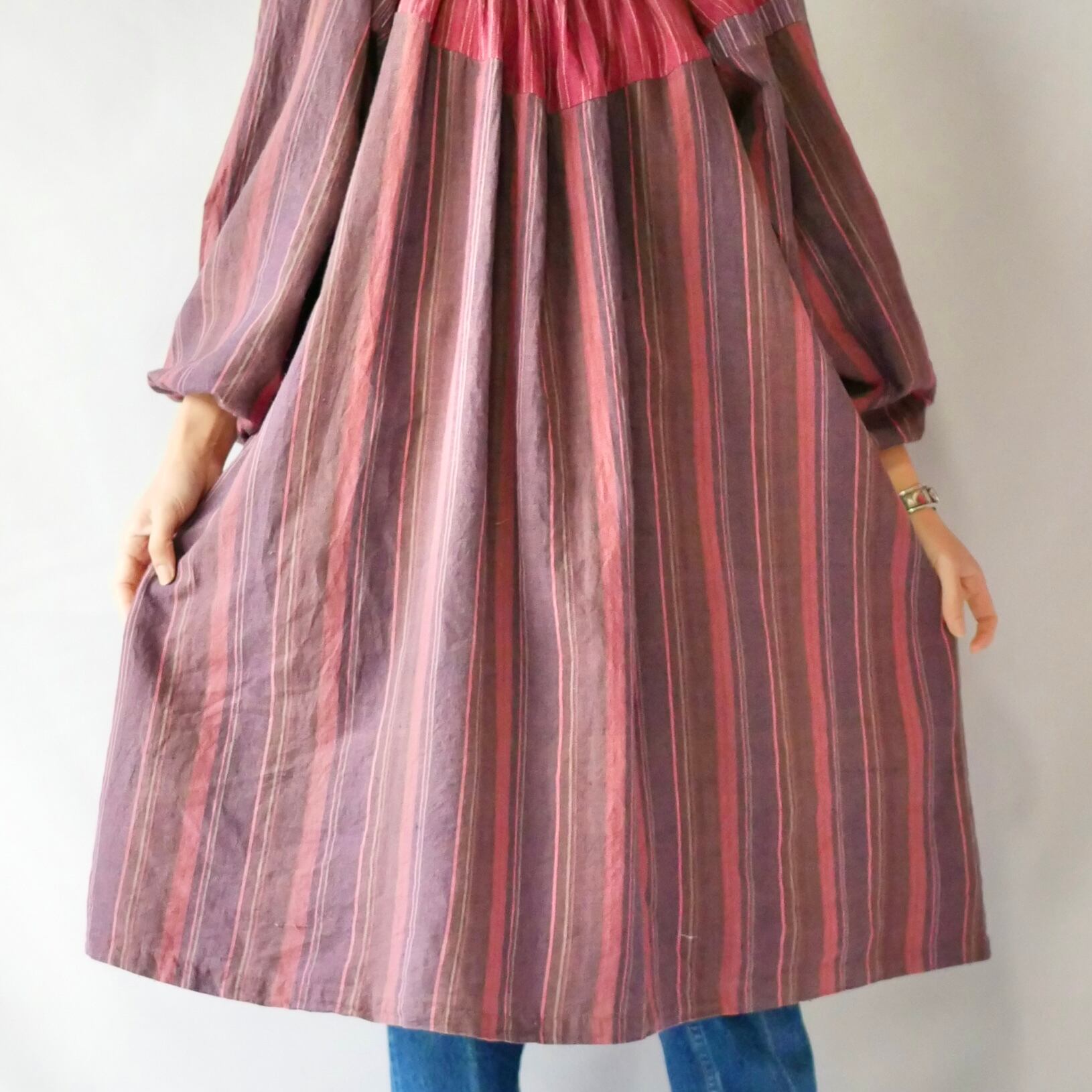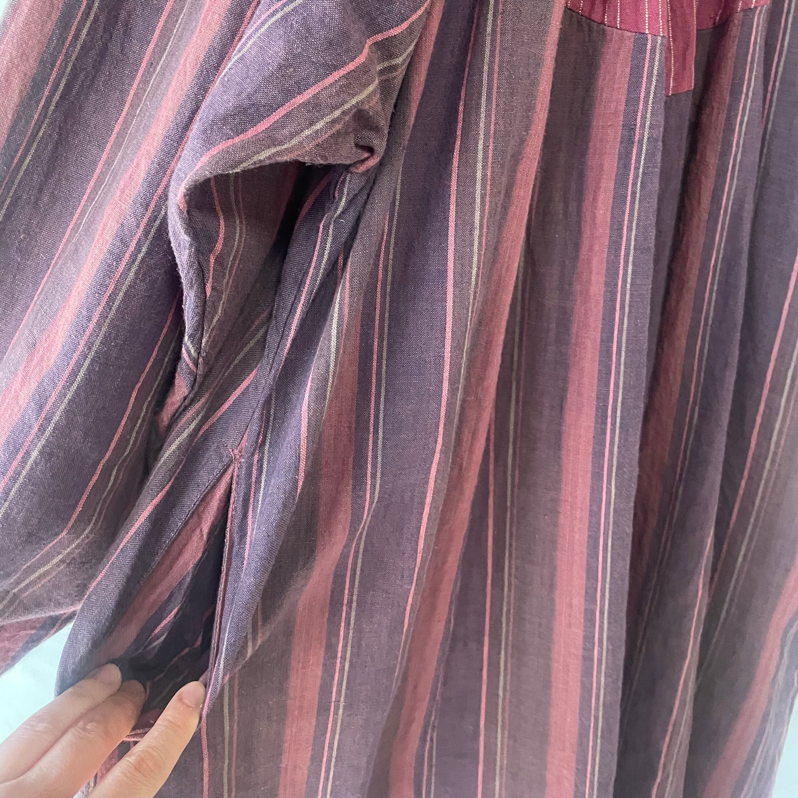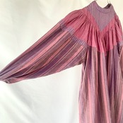70s indian cotton burgundy stripe onepiece インド綿ストライプバルーンスリーブワンピース