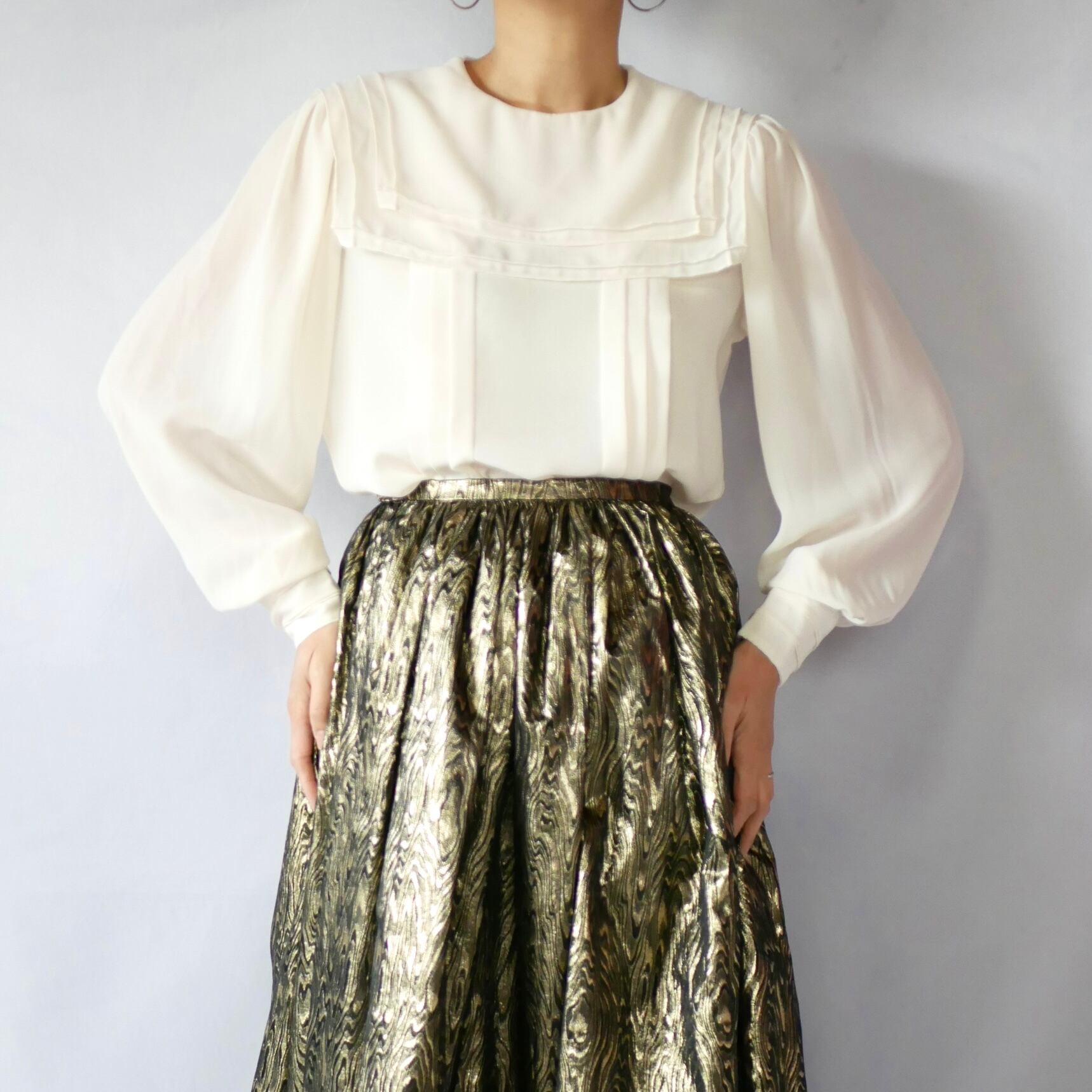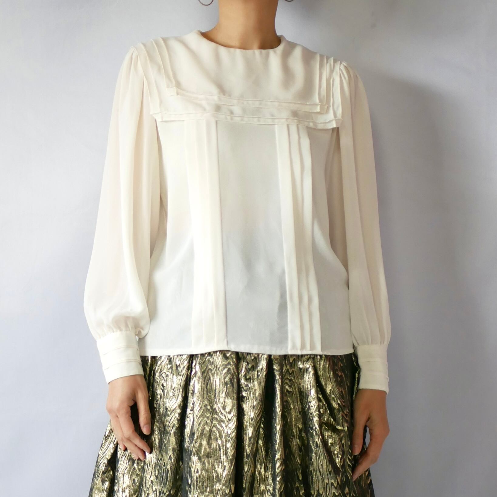 7-80s ivory square collar blouse アイボリー四角襟ブラウス