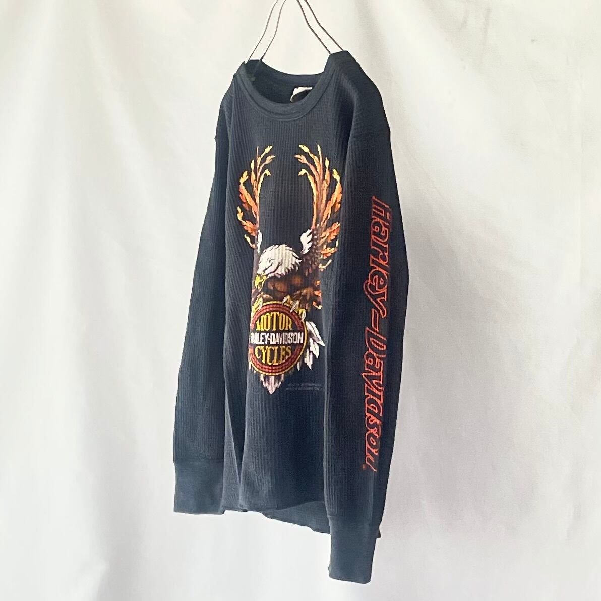 80s Made in USA Harley Davidson print thrmal tops ハーレープリント黒サーマル
