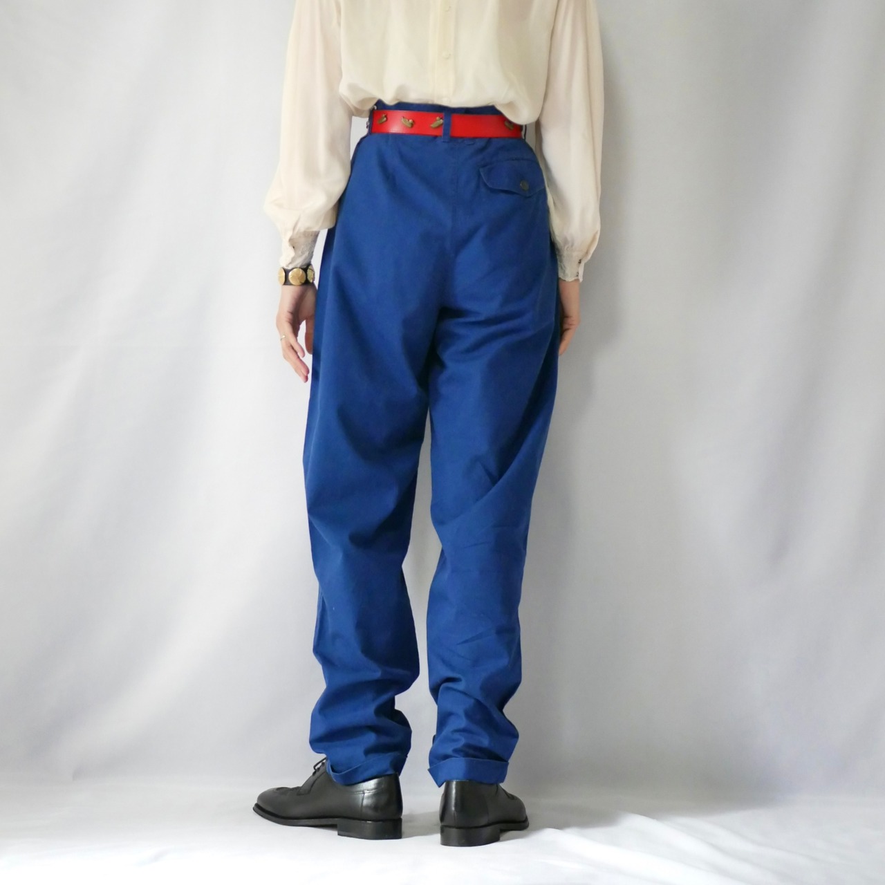 90s LizWear navy blue tuck pants ネイビータックパンツ