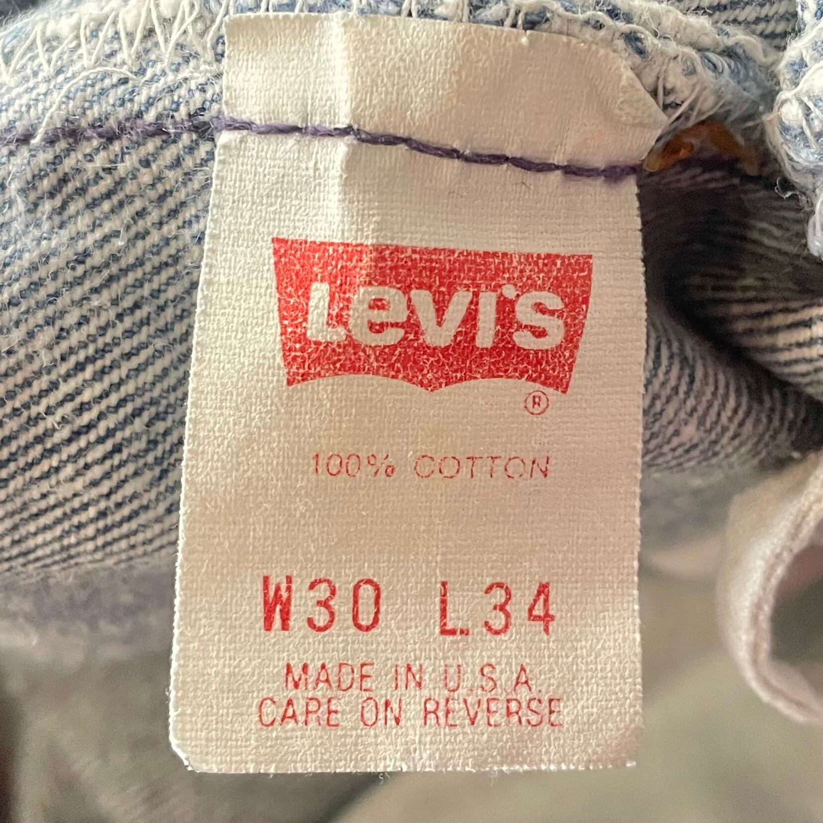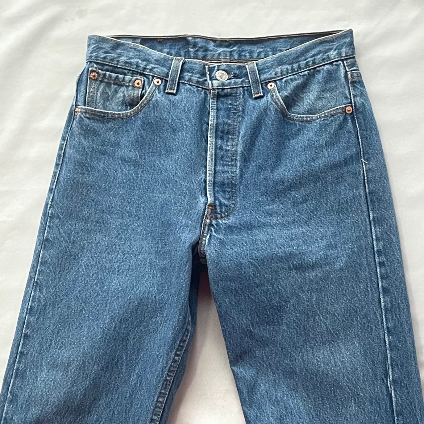 90年代ヴィンテージ USA製リーバイス501 裾切りっぱなし デニムパンツです。裾上はほつれ留めの為ステッチが入っています。ボタン裏501