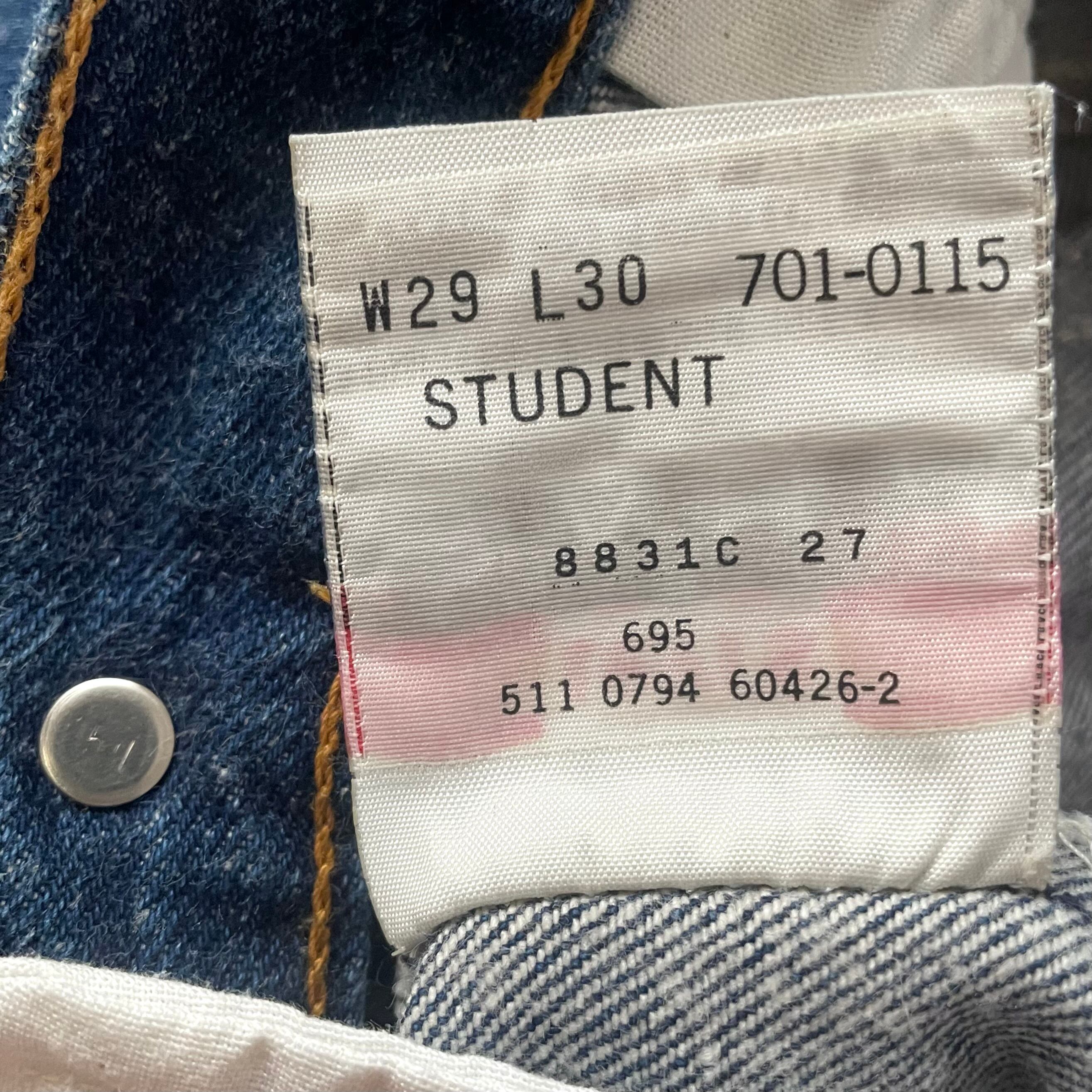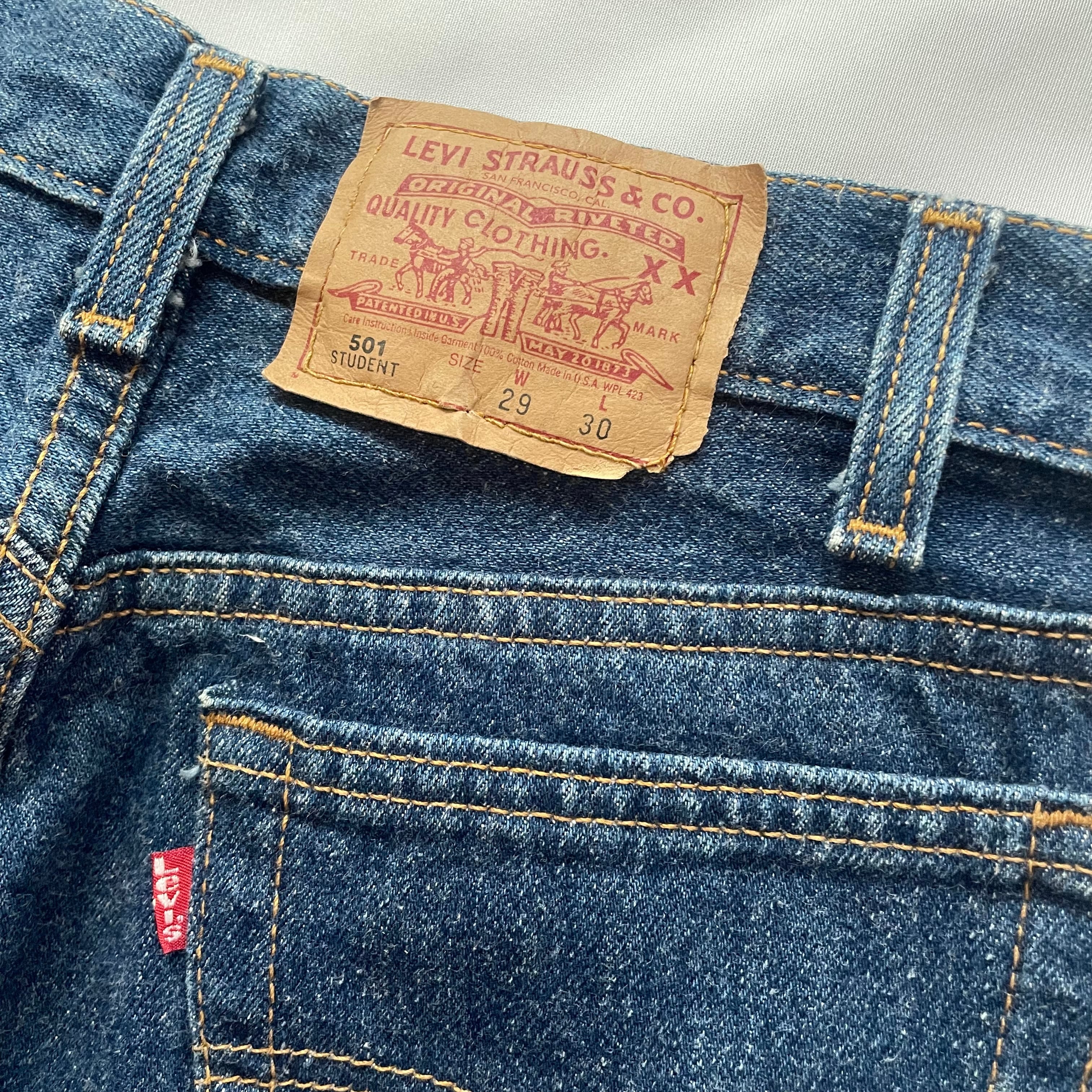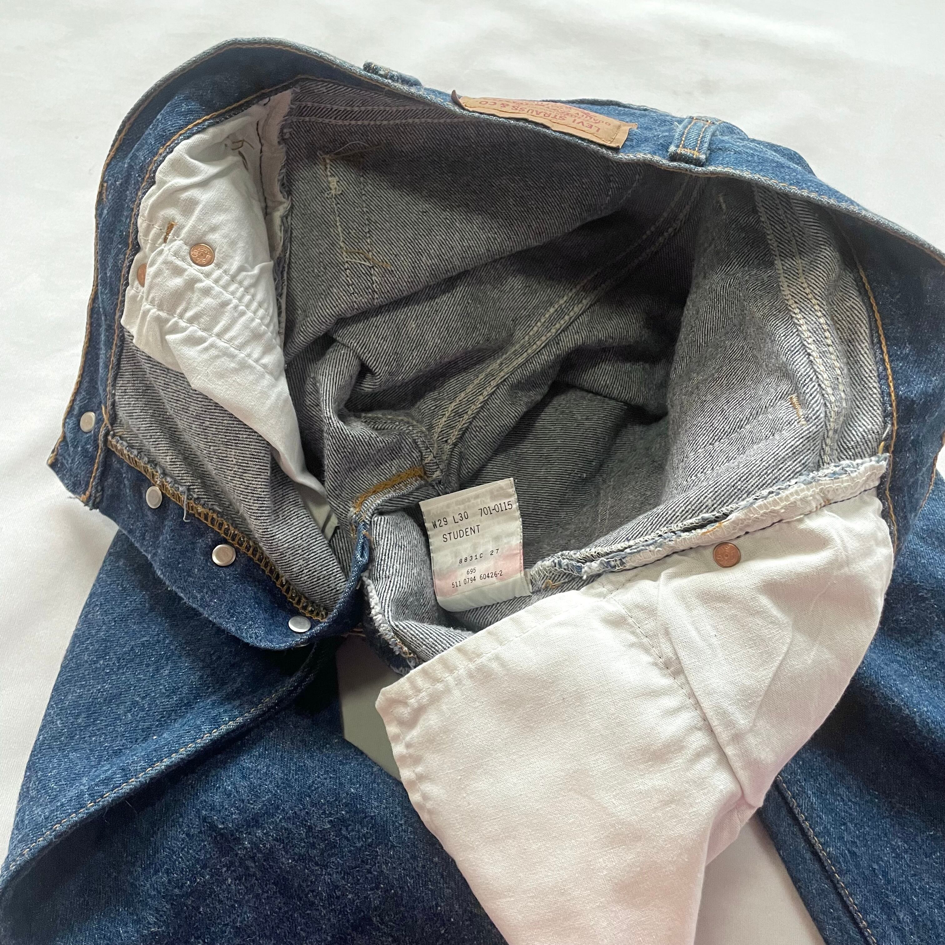 90年代ヴィンテージ USA製リーバイス501 studentモデル(701-0115) デニムパンツです。まだ毛羽立ちの残る濃紺生地で、使用感少なく状態良好です。アメリカ製リーバイスデニムはアメリカ国内でもどんどん入手困難となってきており、価格高騰中のアイテムとなります。特に状態の良いものは希少です。ボタン裏511