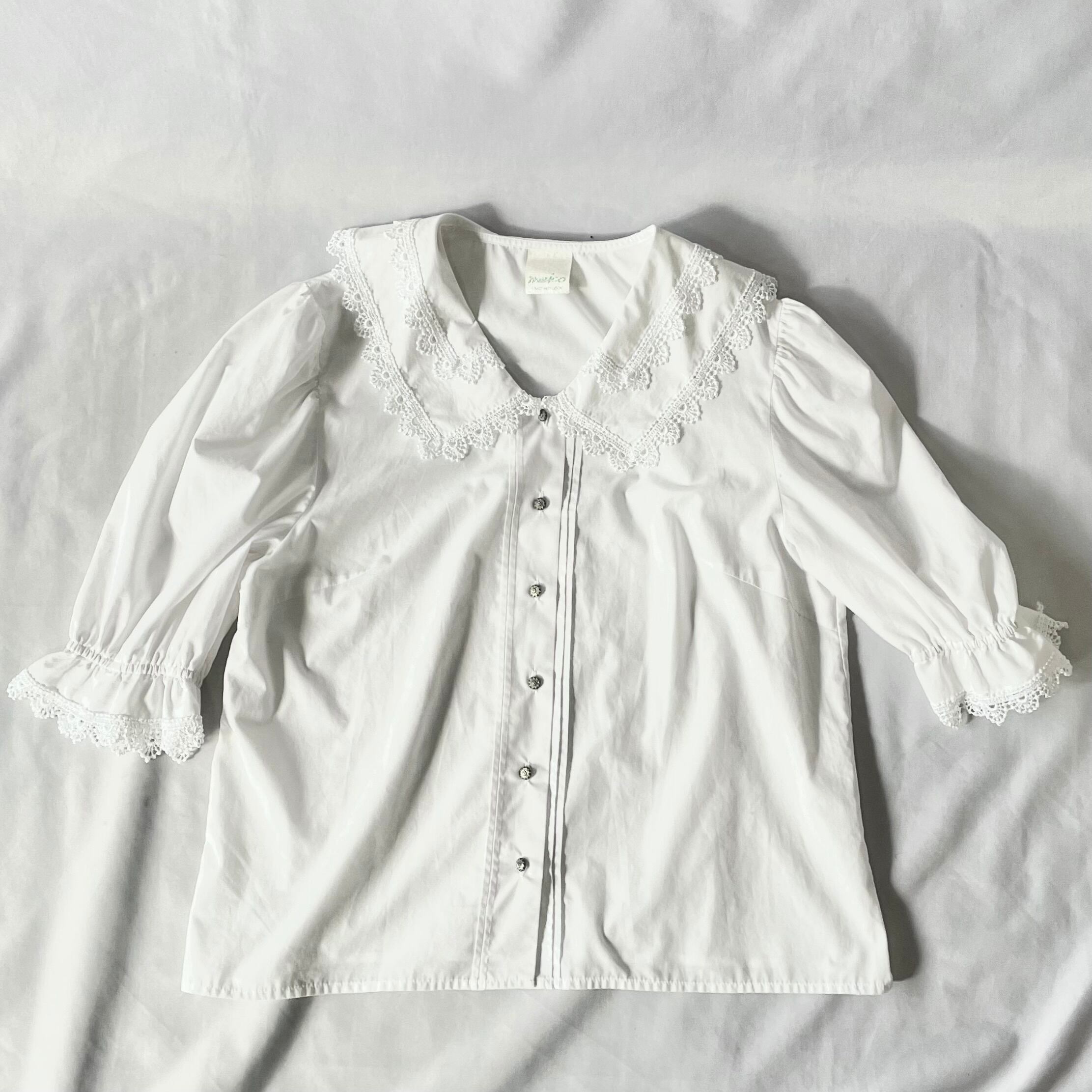 Euro vintage white lace blouse ヨーロッパヴィンテージ白レース襟ブラウス