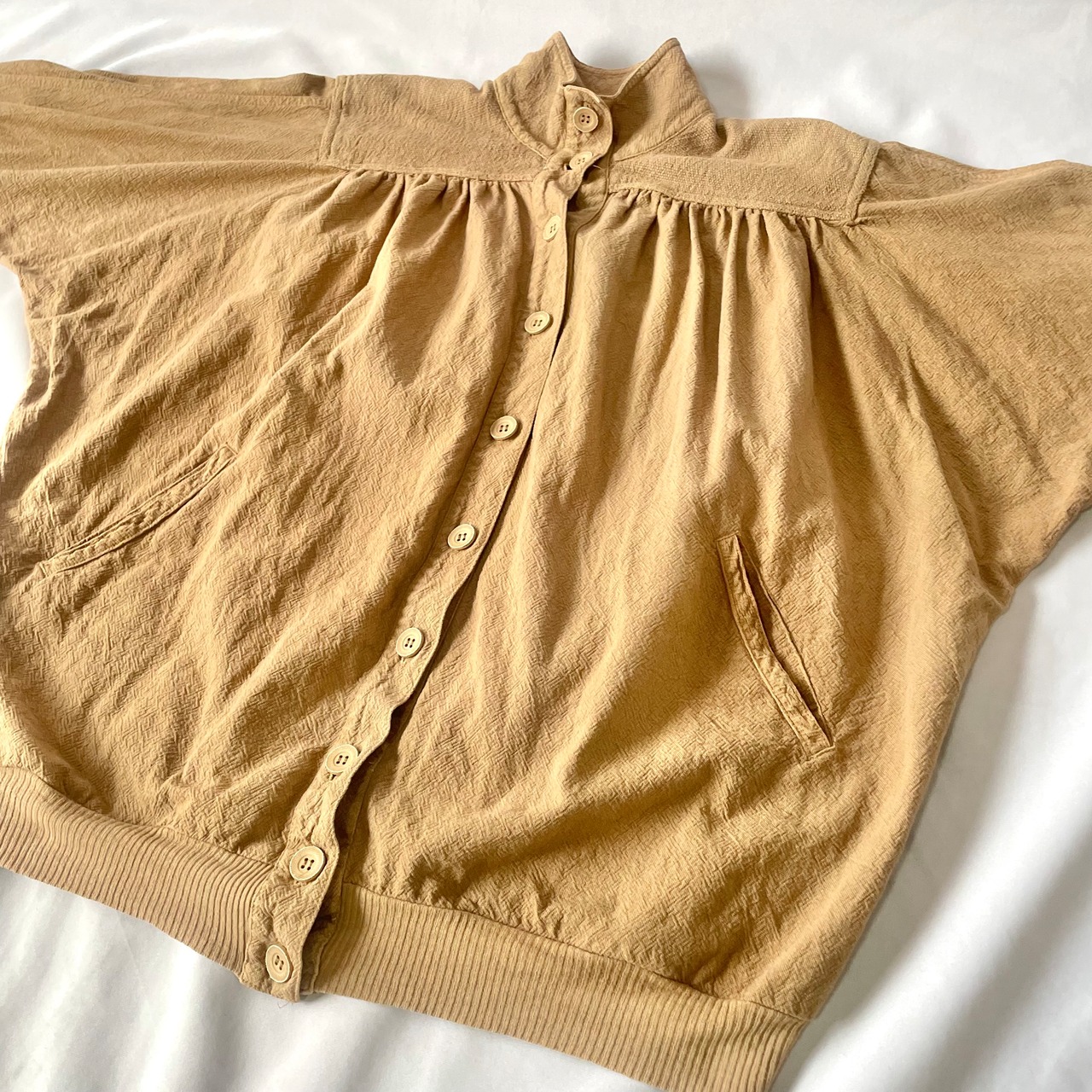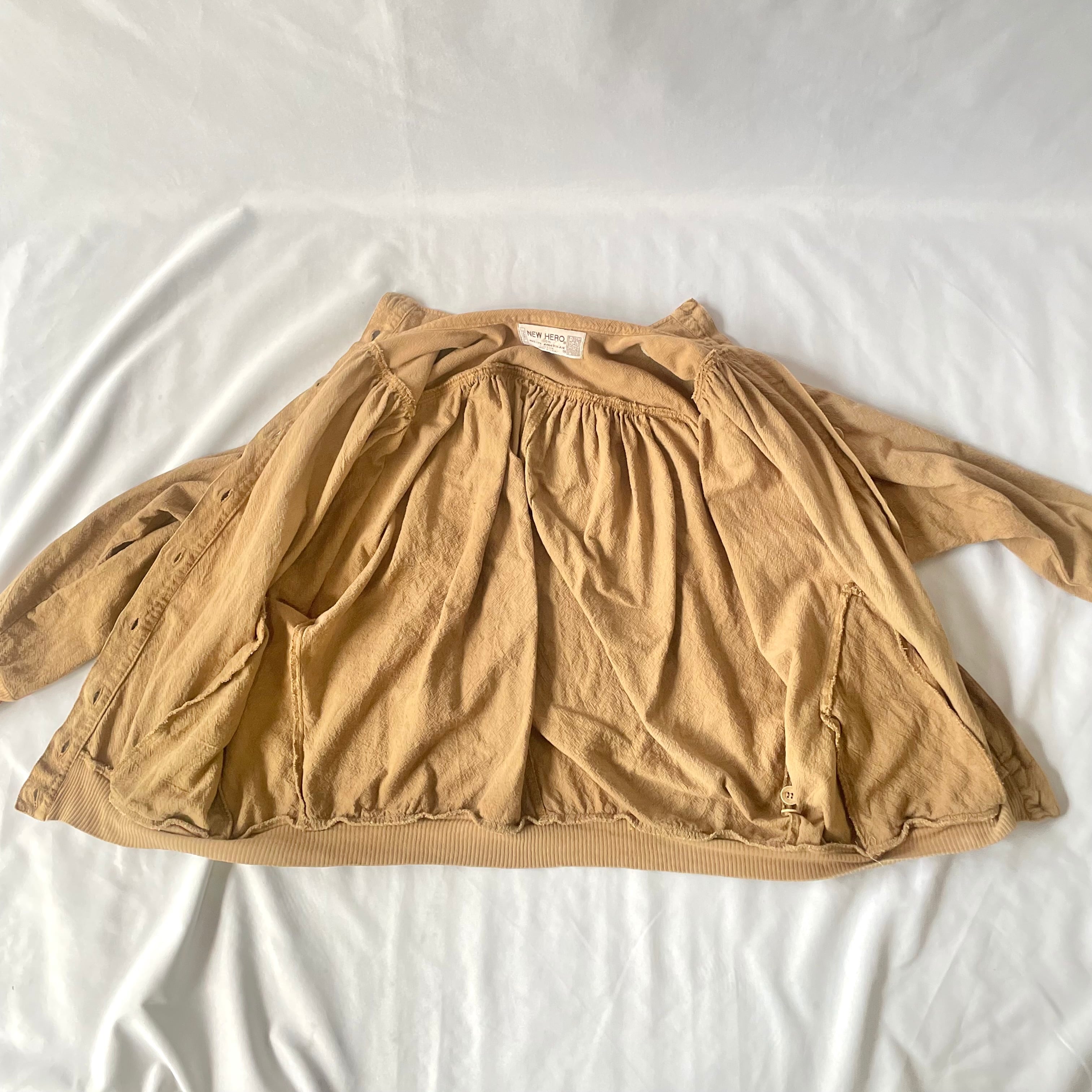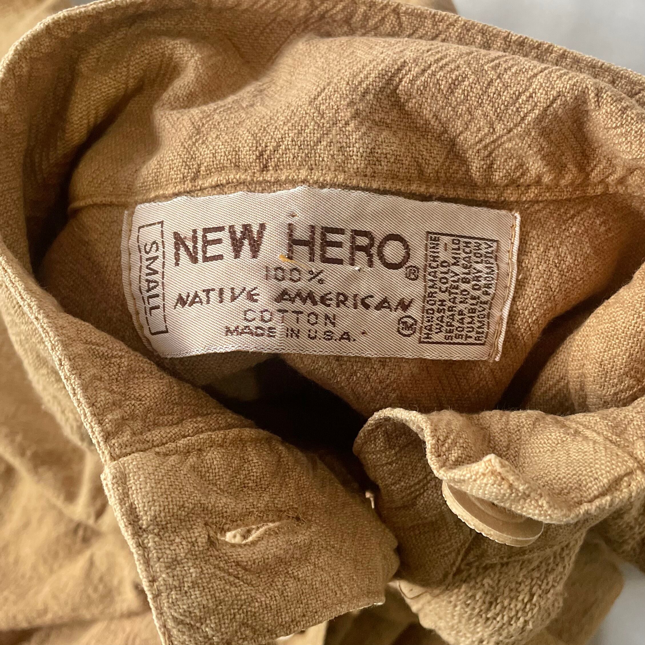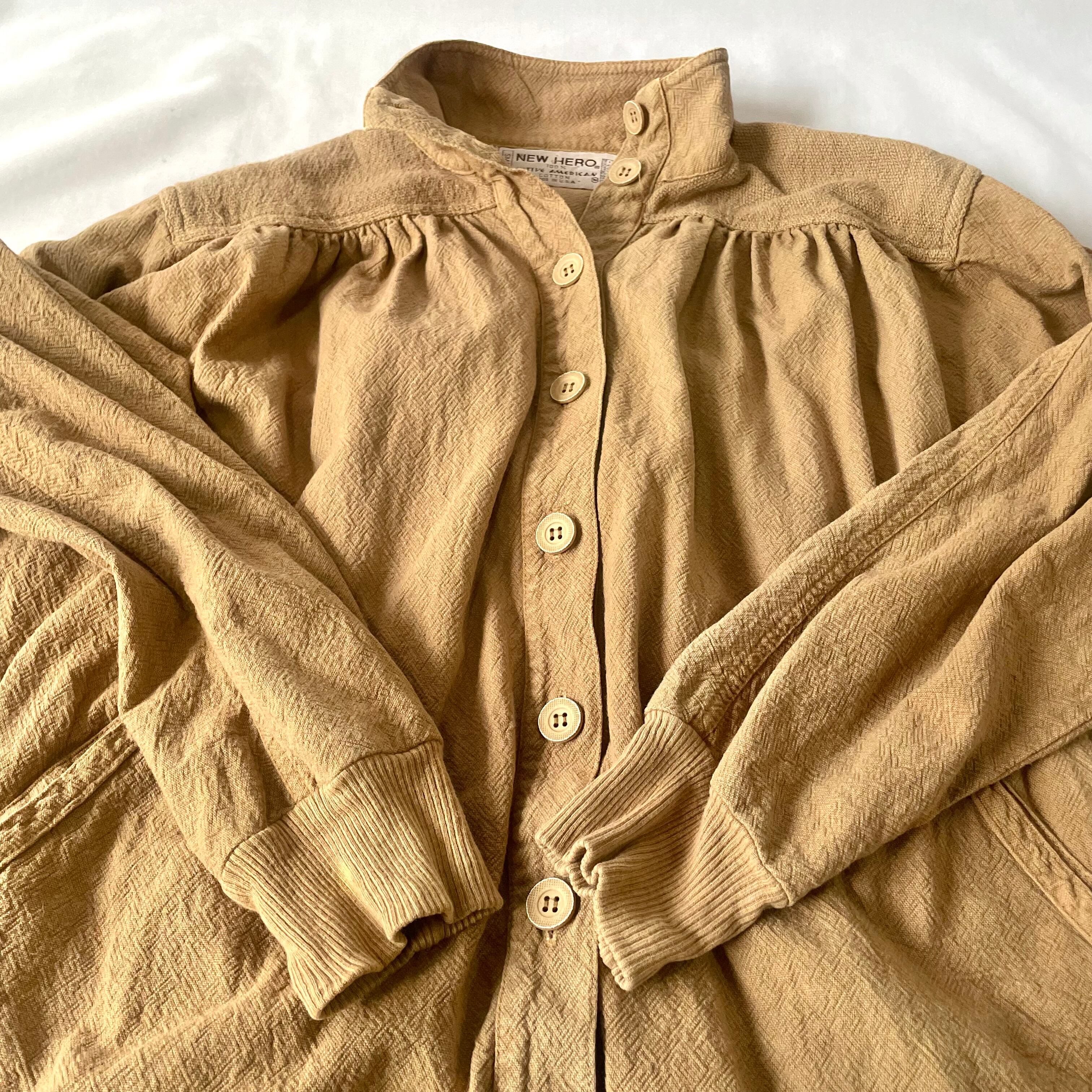 ネイティブアメリカンコットンと名付けられたガサッとしたコットン生地がとても雰囲気のあるアメリカ製New Hero ドルマンスリーブJKTです。