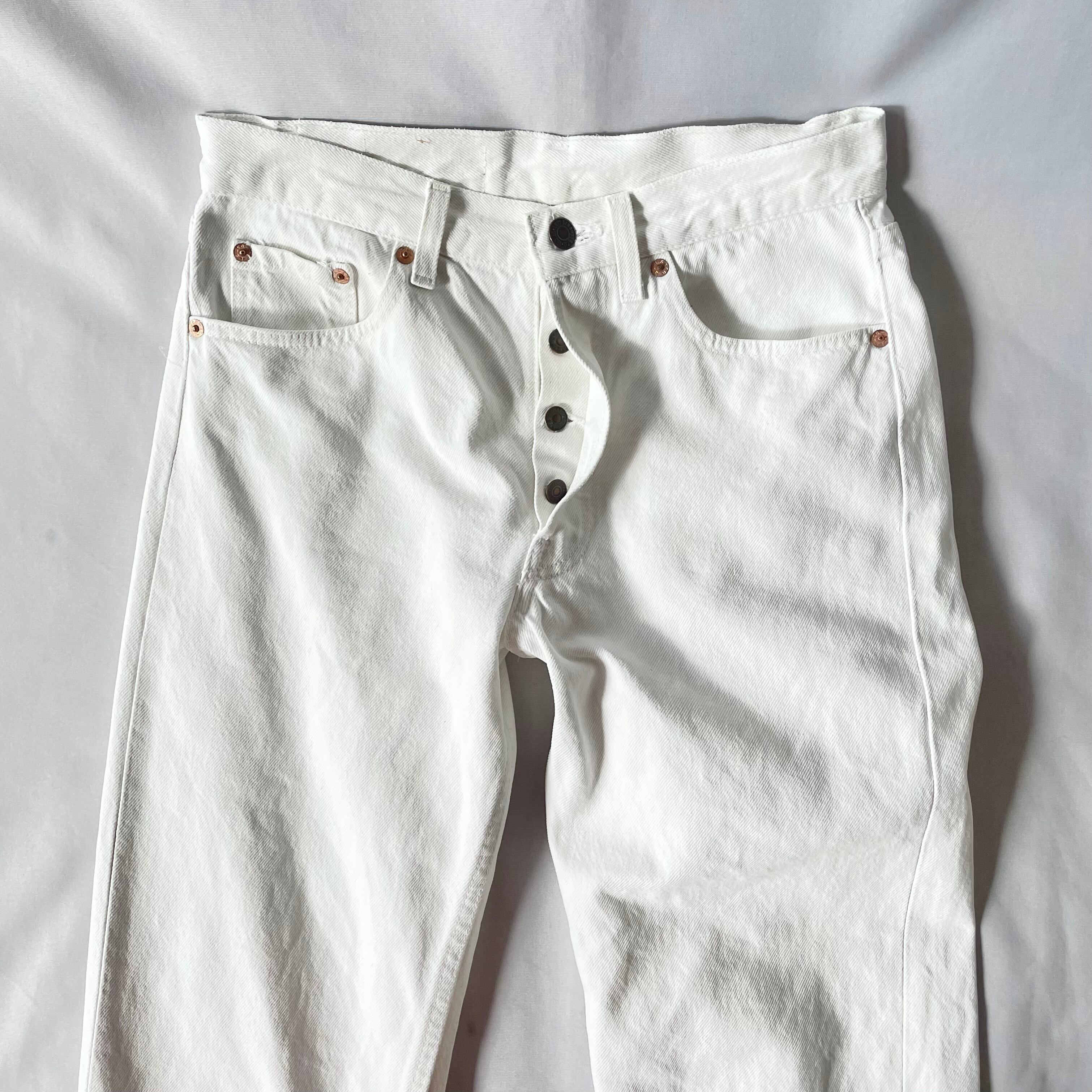 90年代ヴィンテージ USA製リーバイス 501ホワイトデニムパンツです。ボタン裏刻印520