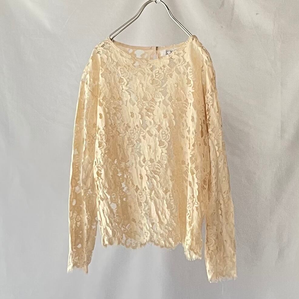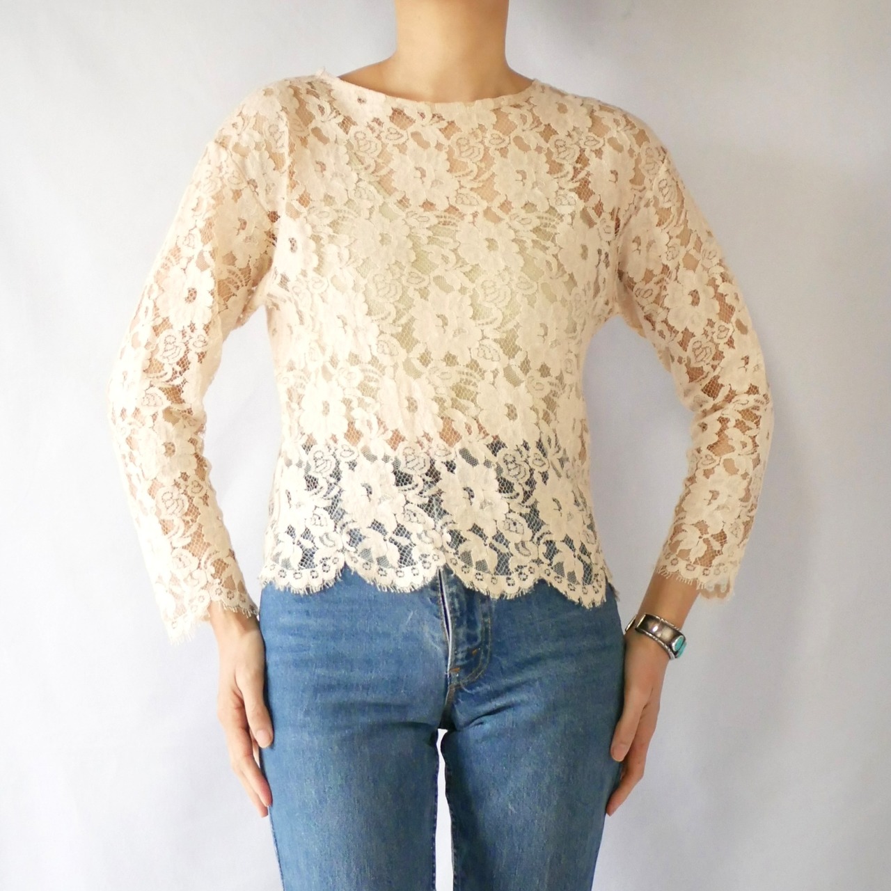 Made in USA ANNE KLEIN beige all lace pullover tops アメリカ製ベージュ総レーストップス