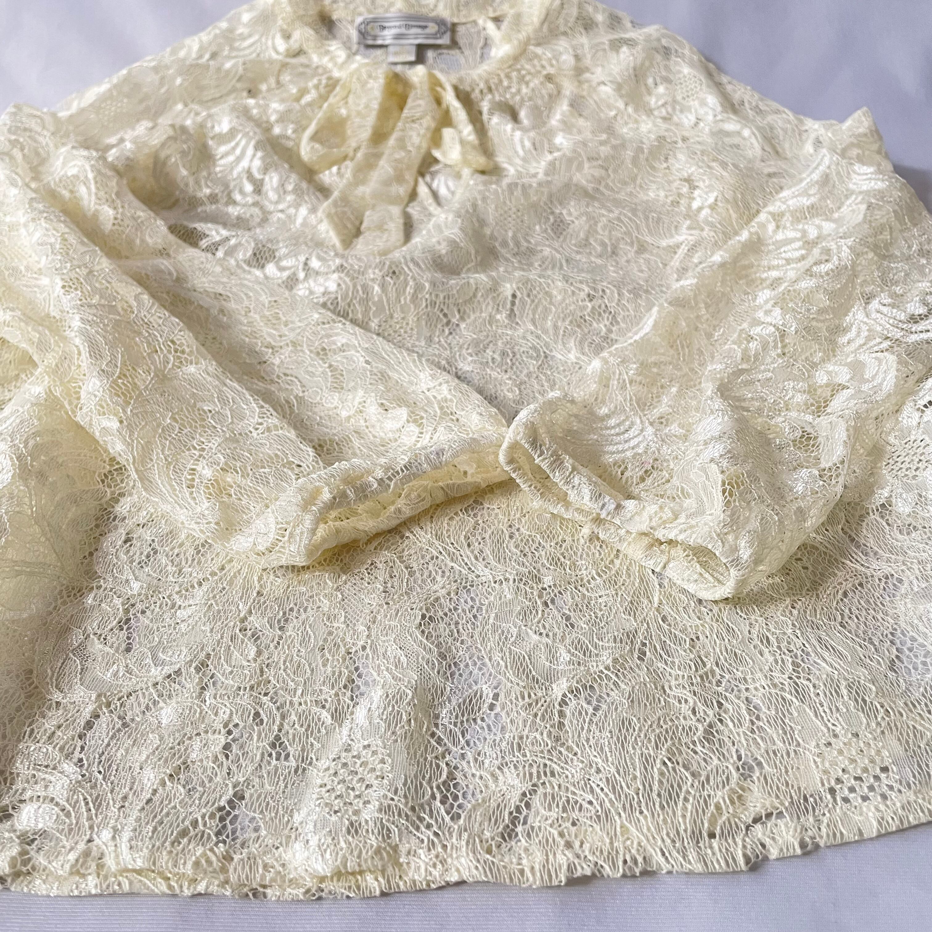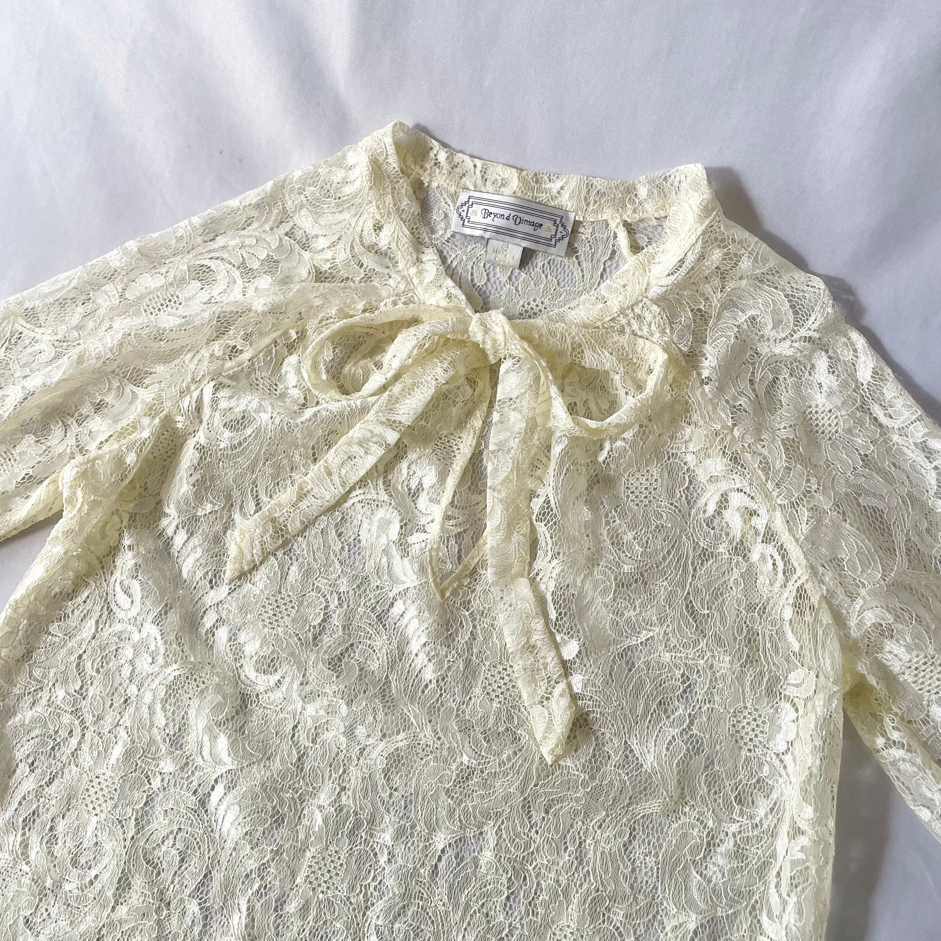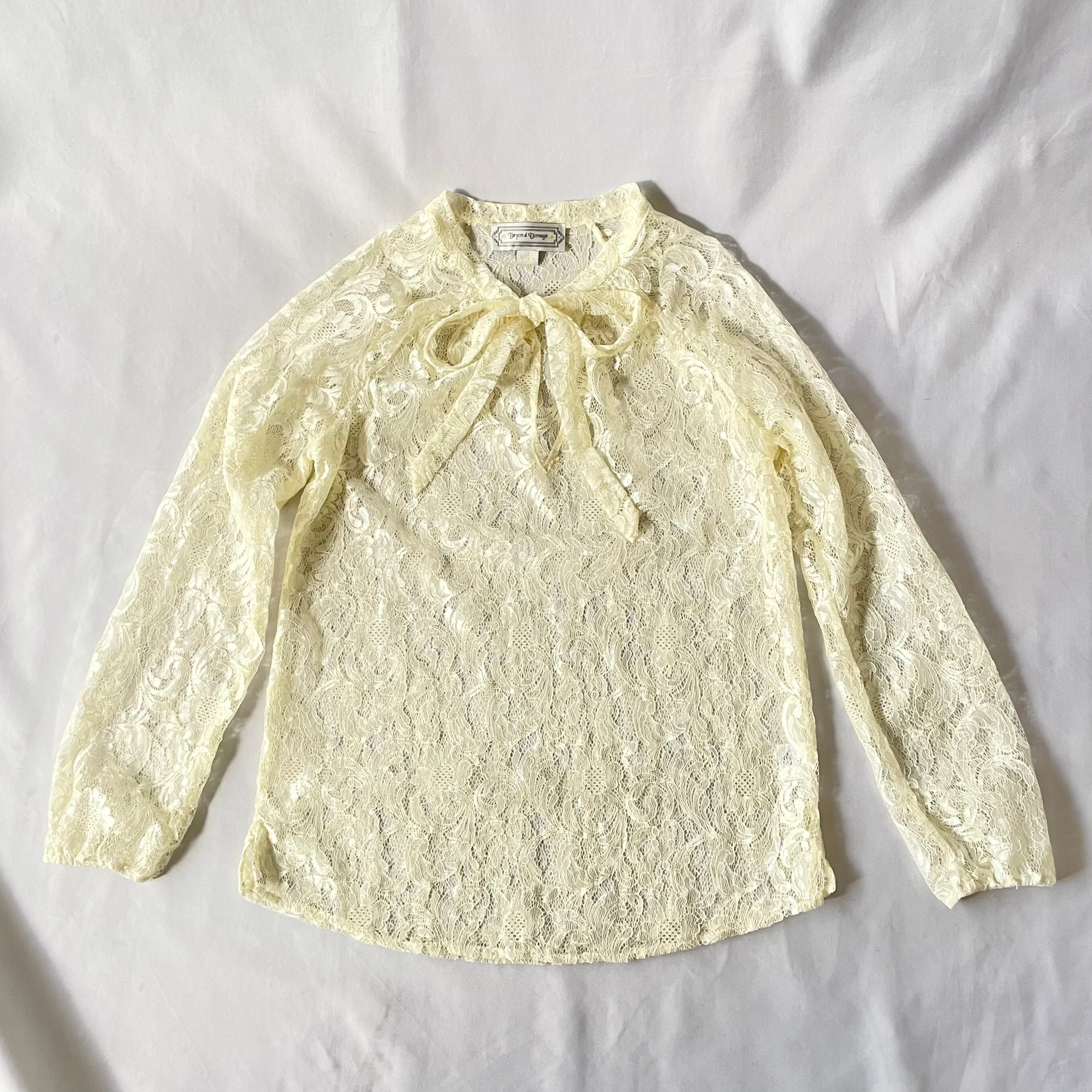 Ivory lace pullover blouse アイボリー総レースリボン付きプルオーバーブラウス