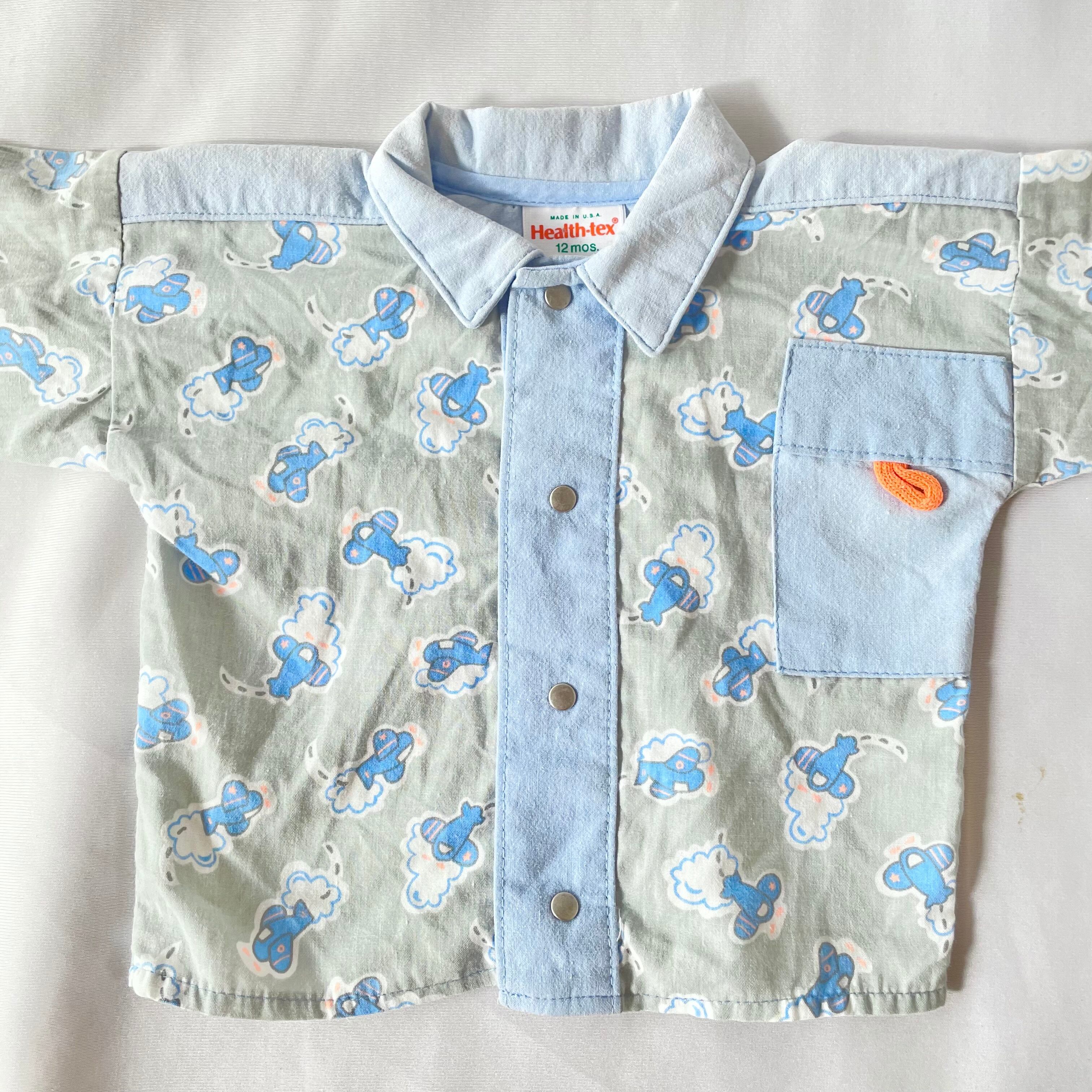 6〜12ヶ月児用 アメリカ製Helth-tex 飛行機総柄シャツです。