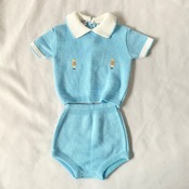約1歳児用 ヴィンテージ ニットセットアップです。胸元の兵隊さんが可愛いです。