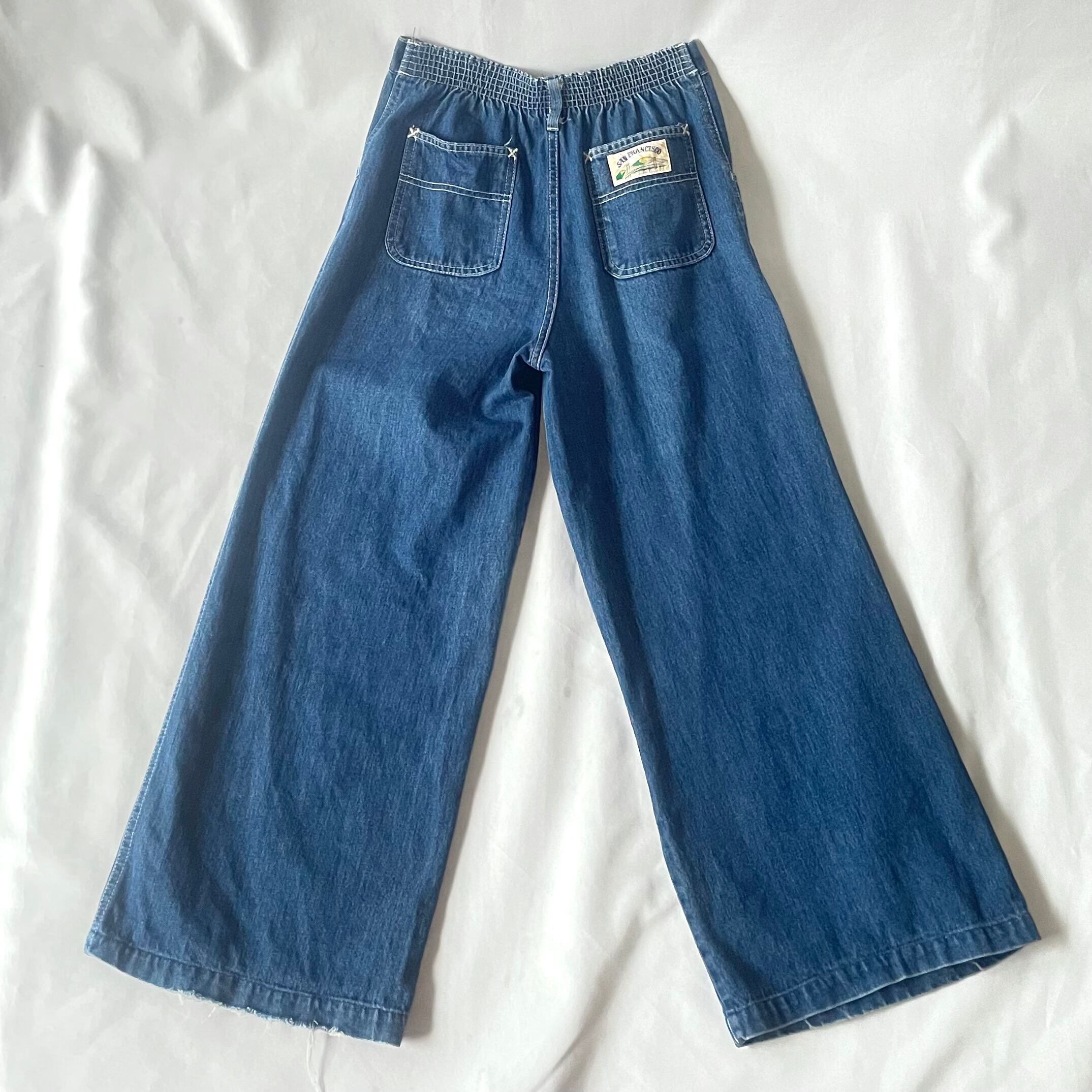 しっかり幅のあるワイドシルエットに、後ろポケットのサンフランシスコタグが可愛い、7-80s vintageバギーデニムパンツです。ポケット付き