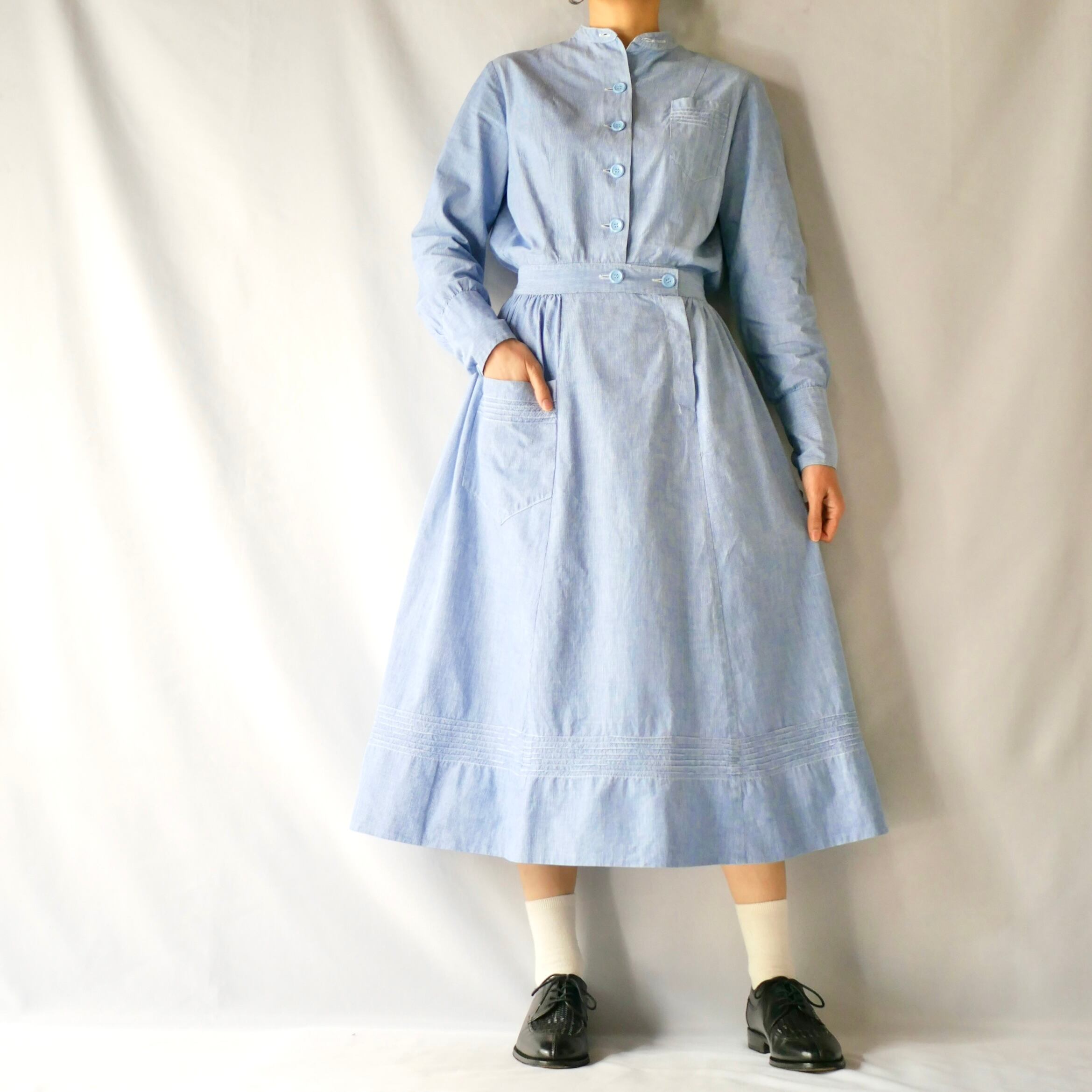 しっかりとしたコットン生地に細やかなステッチで丁寧な造りとなっており、この辺りの古いドレスにしては珍しくとても状態良好です。