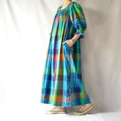SAYBURY indian cotton madras shirring maxi onepiece インド綿マドラスチェック菱形シャーリングマキシワンピース