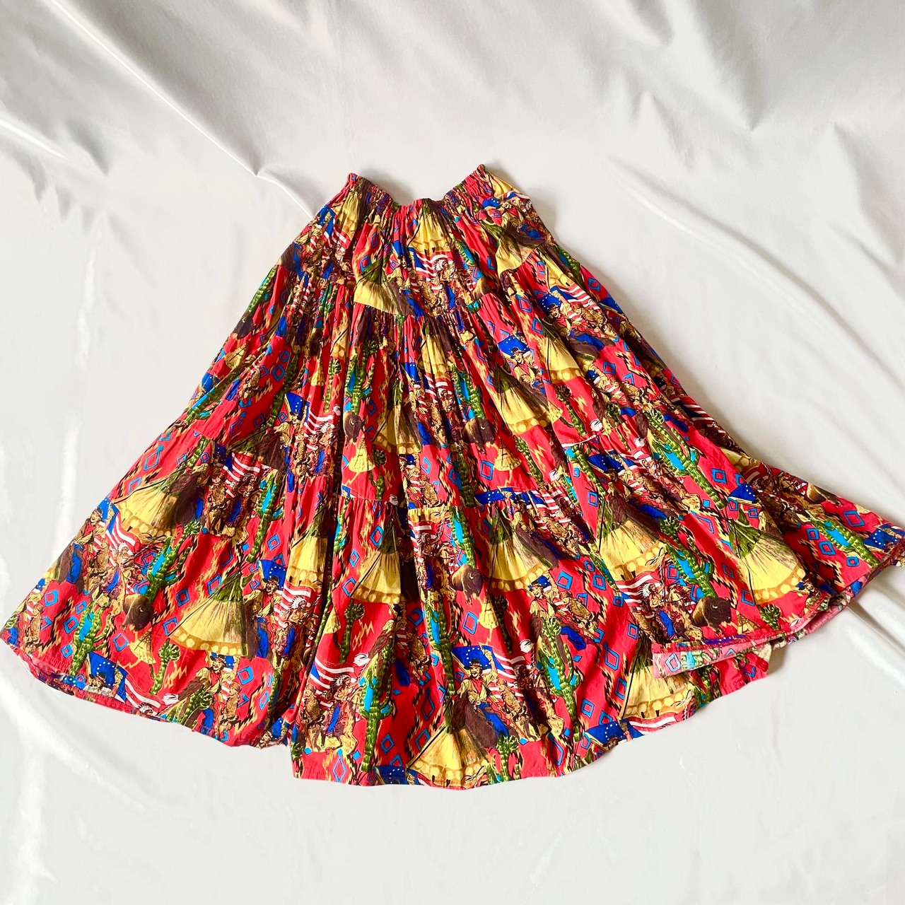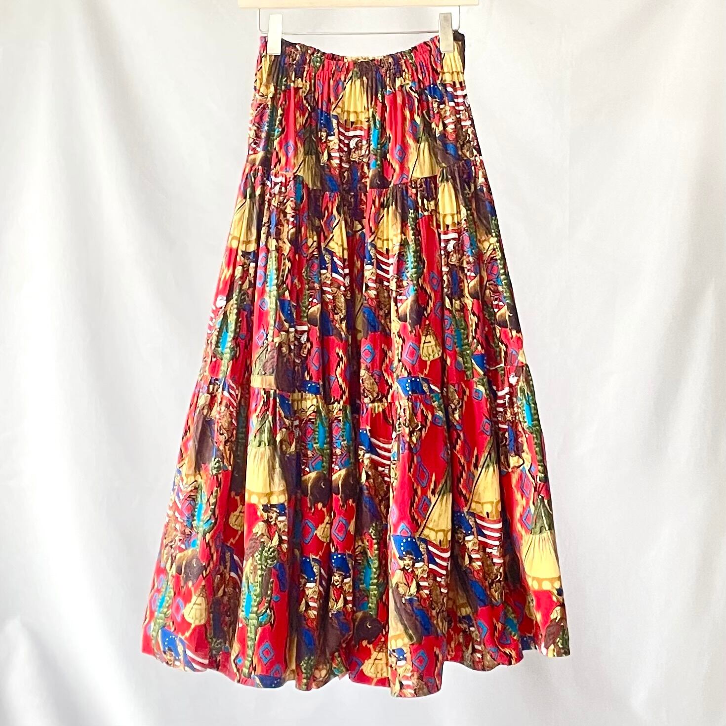 Made in USA indian pattern tiered maxi skirt アメリカ製インディアン総柄ティアードスカート