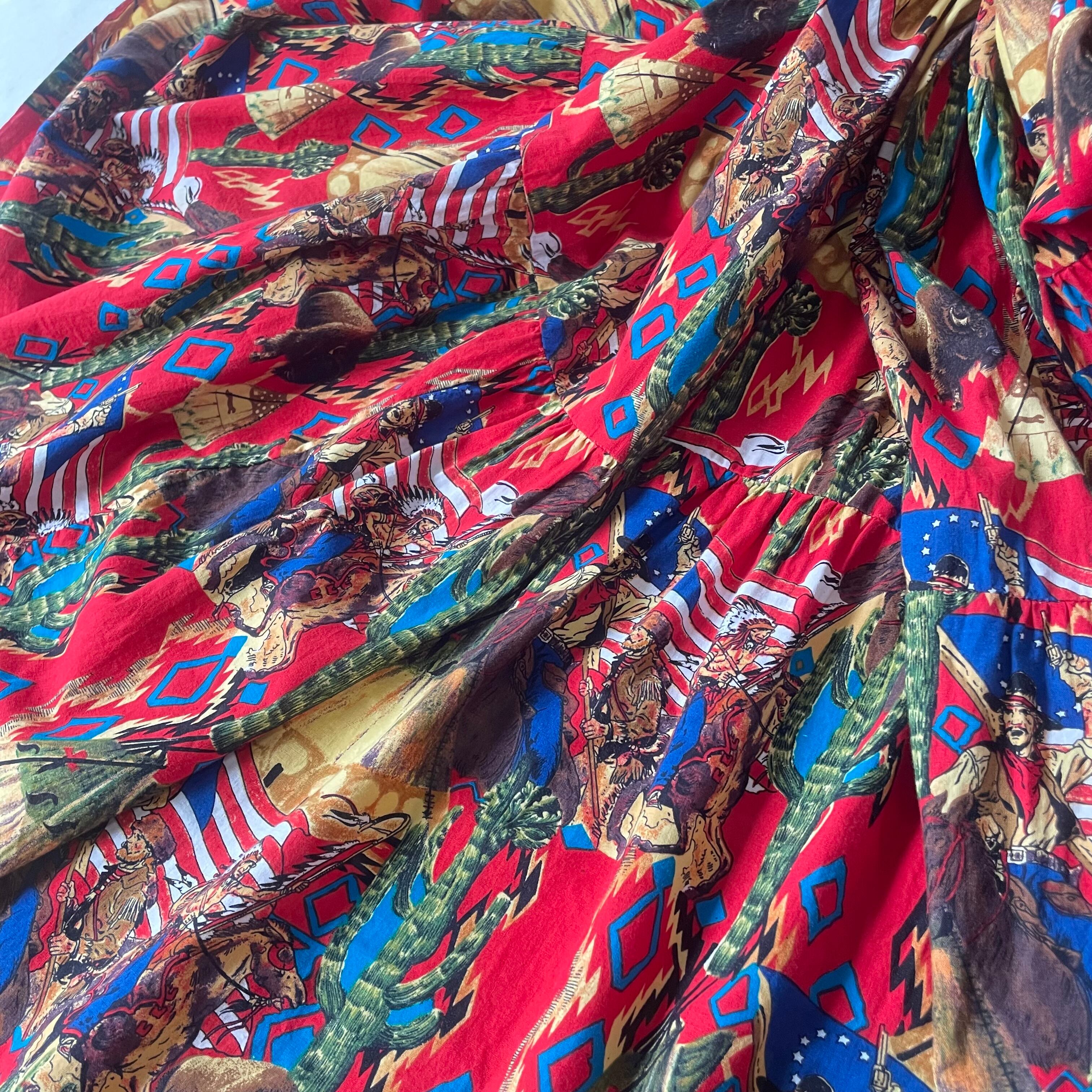 アメリカ製インディアン総柄マキシ丈ティアード
