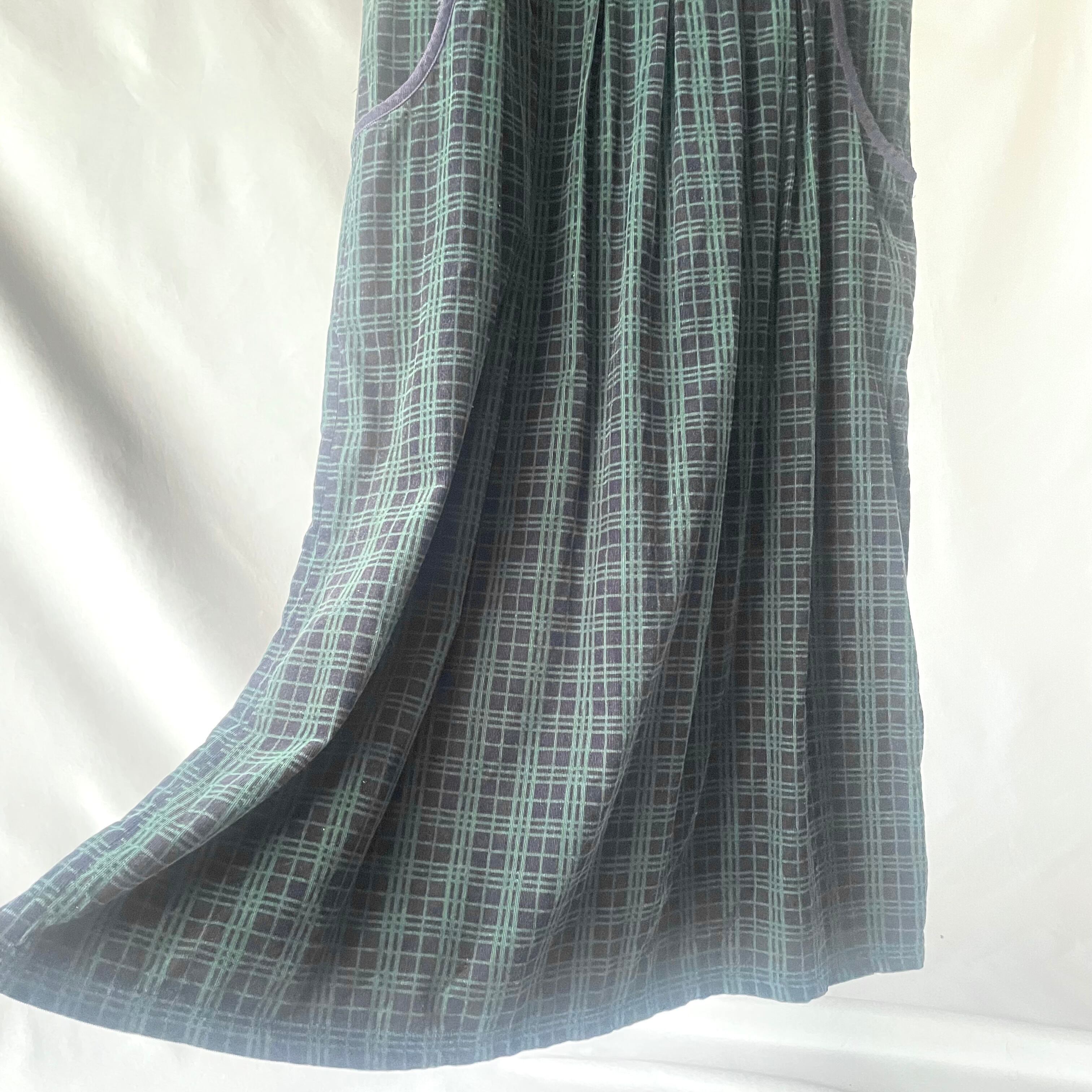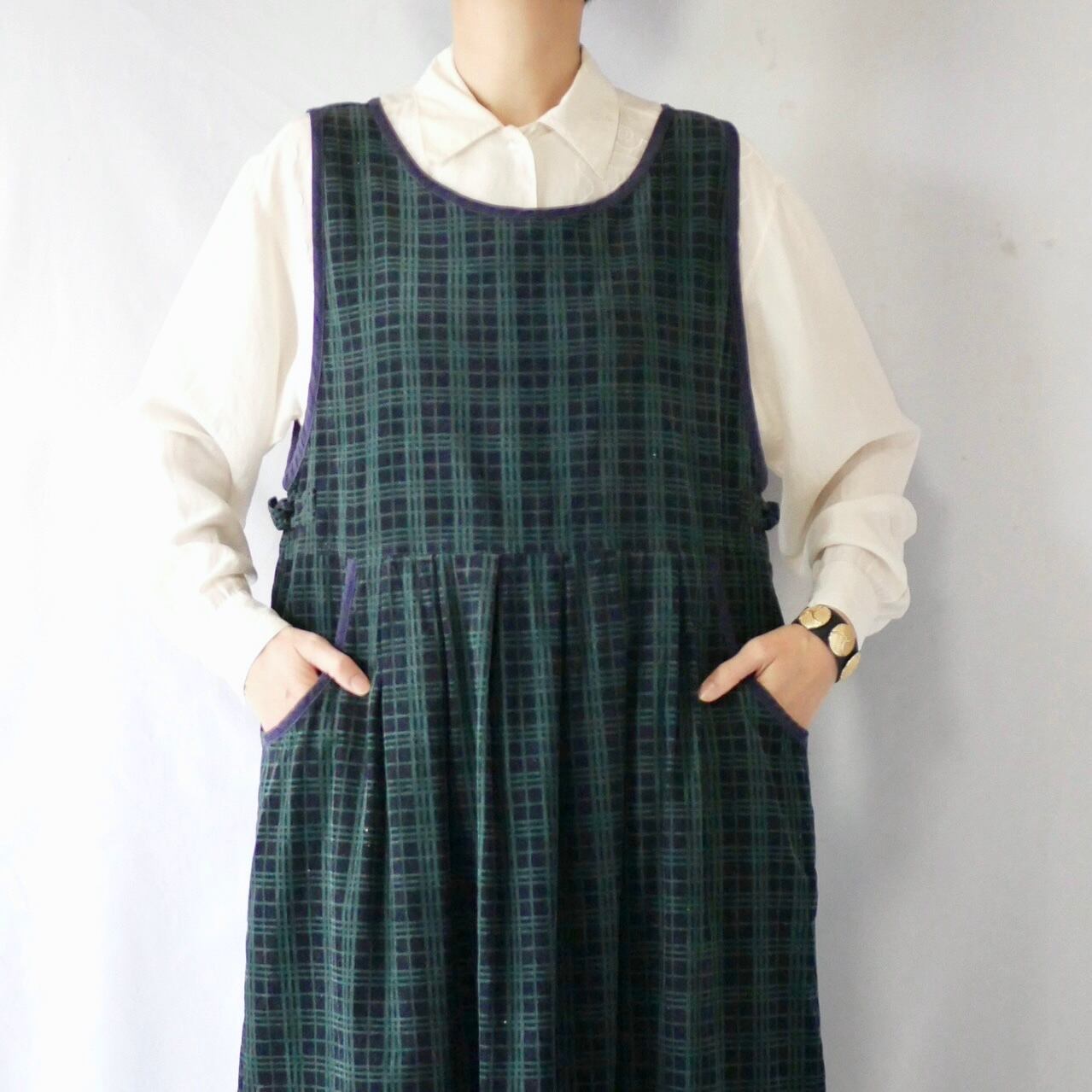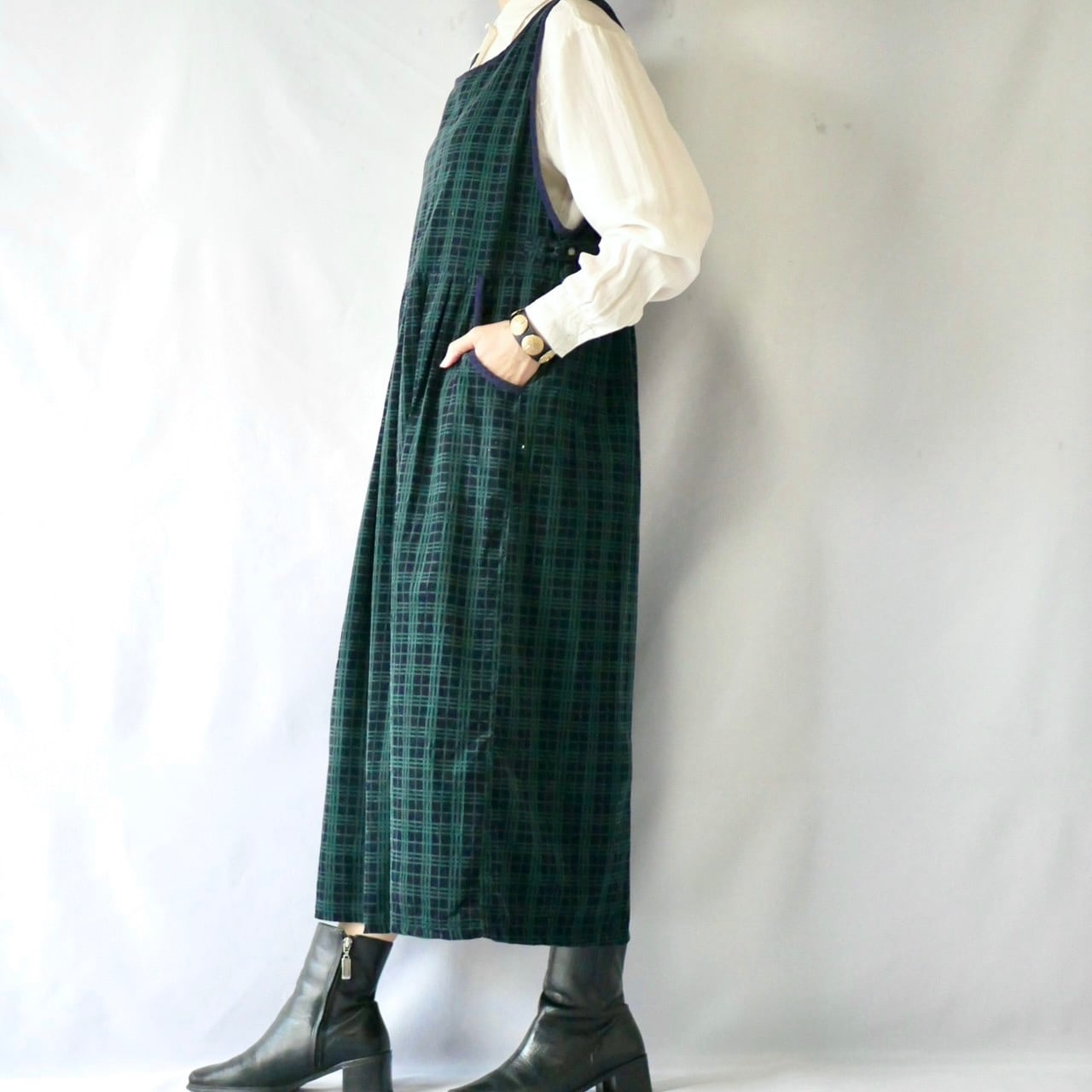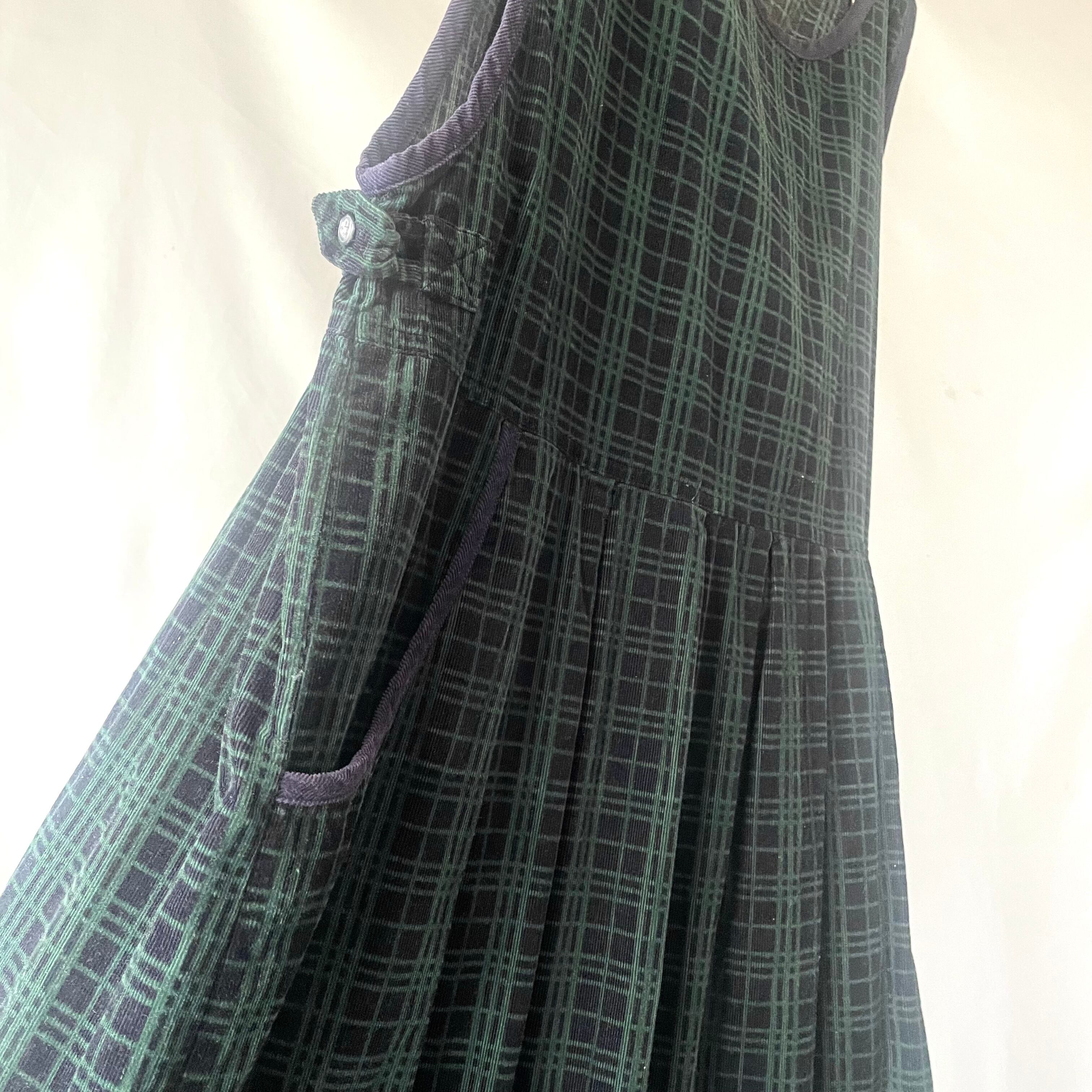 Erika&Co dark green plaid N/S maxi onepiece ダークグリーンチェックコーデュロイジャンパースカート