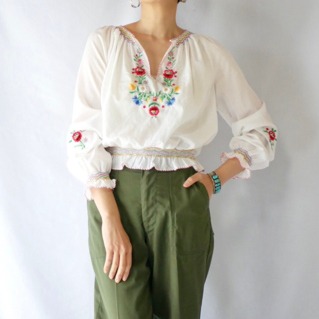 70s hungary embroidered tunic blouse ヴィンテージハンガリー刺繍チュニックブラウス