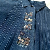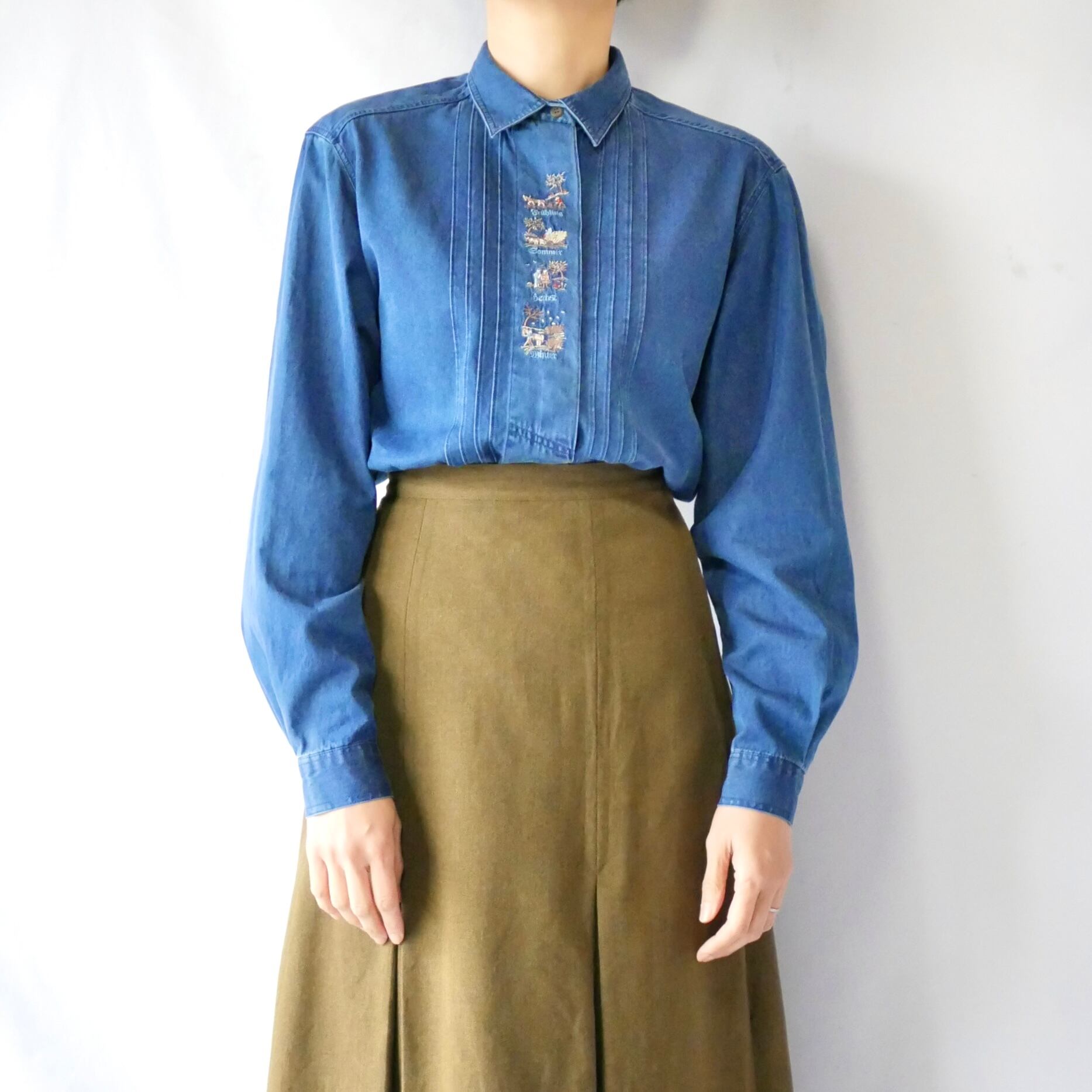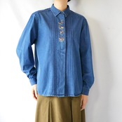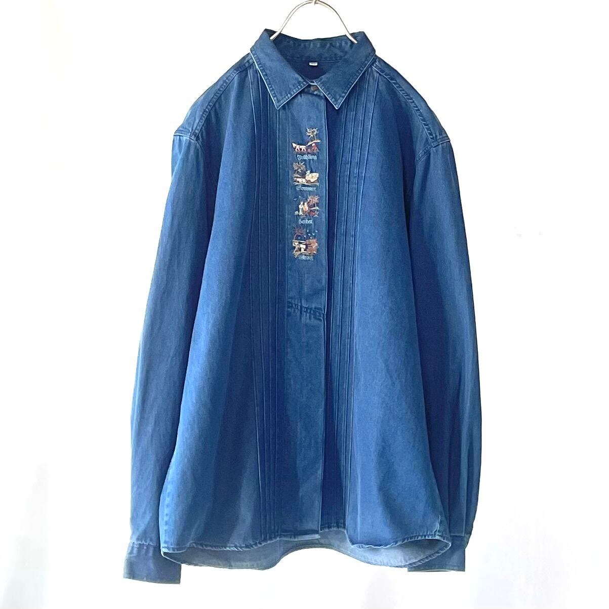 Euro vintage LANDHAUS blue shirt チロリアン刺繍ブルーシャツ