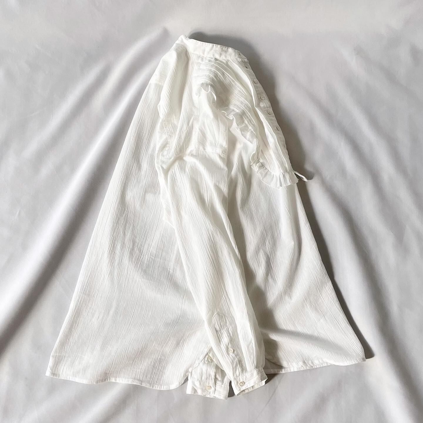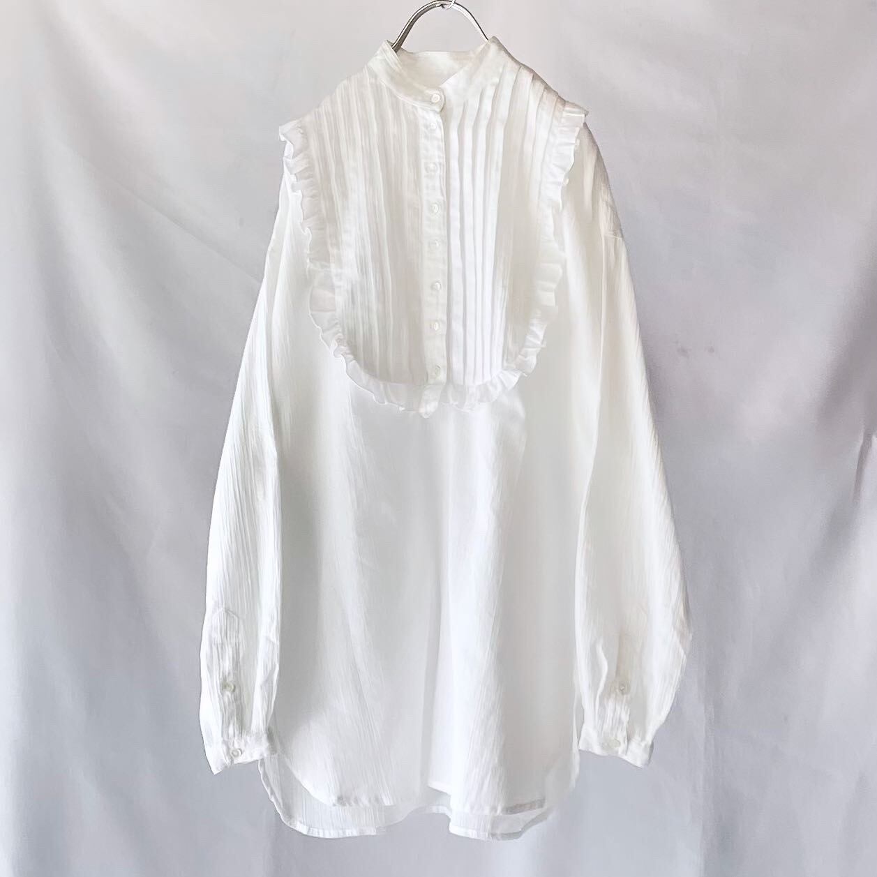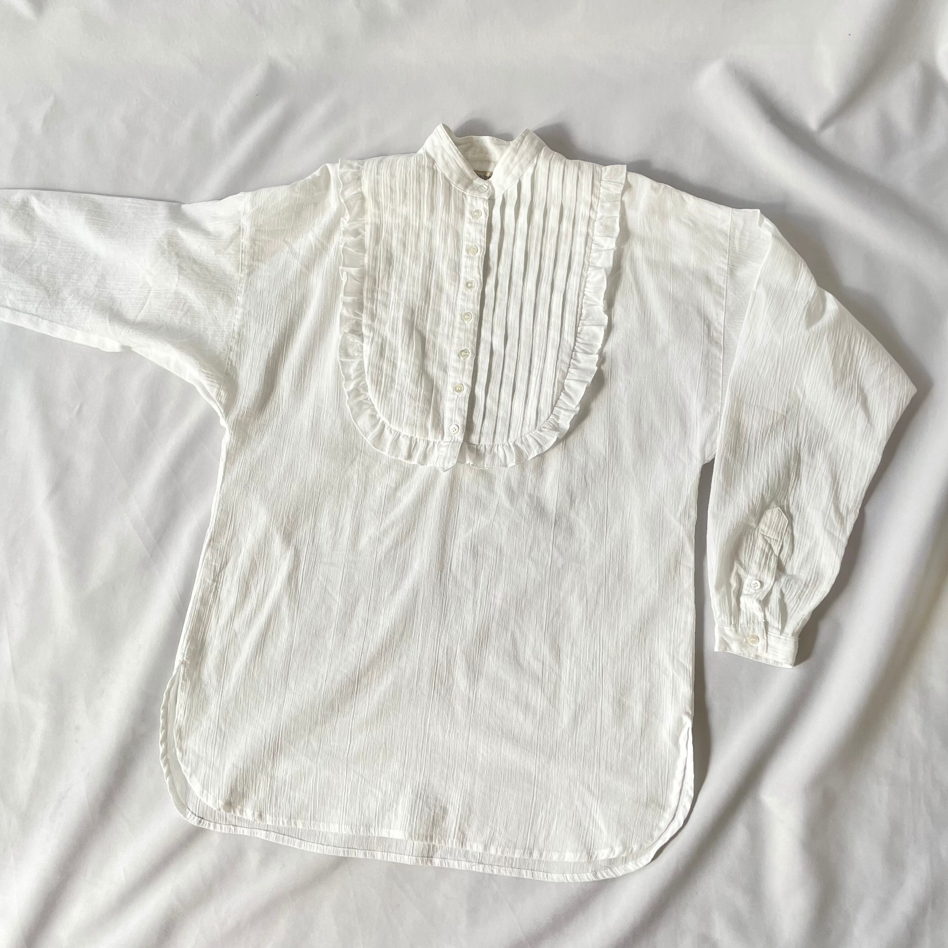 Liz Claiborne white tuck frill blouse 胸元タックブラウス
