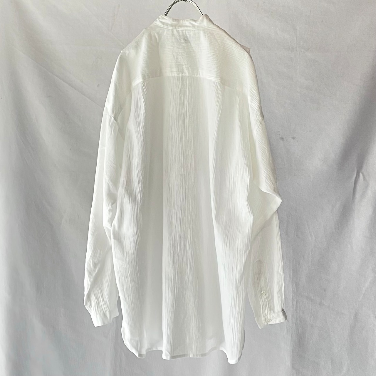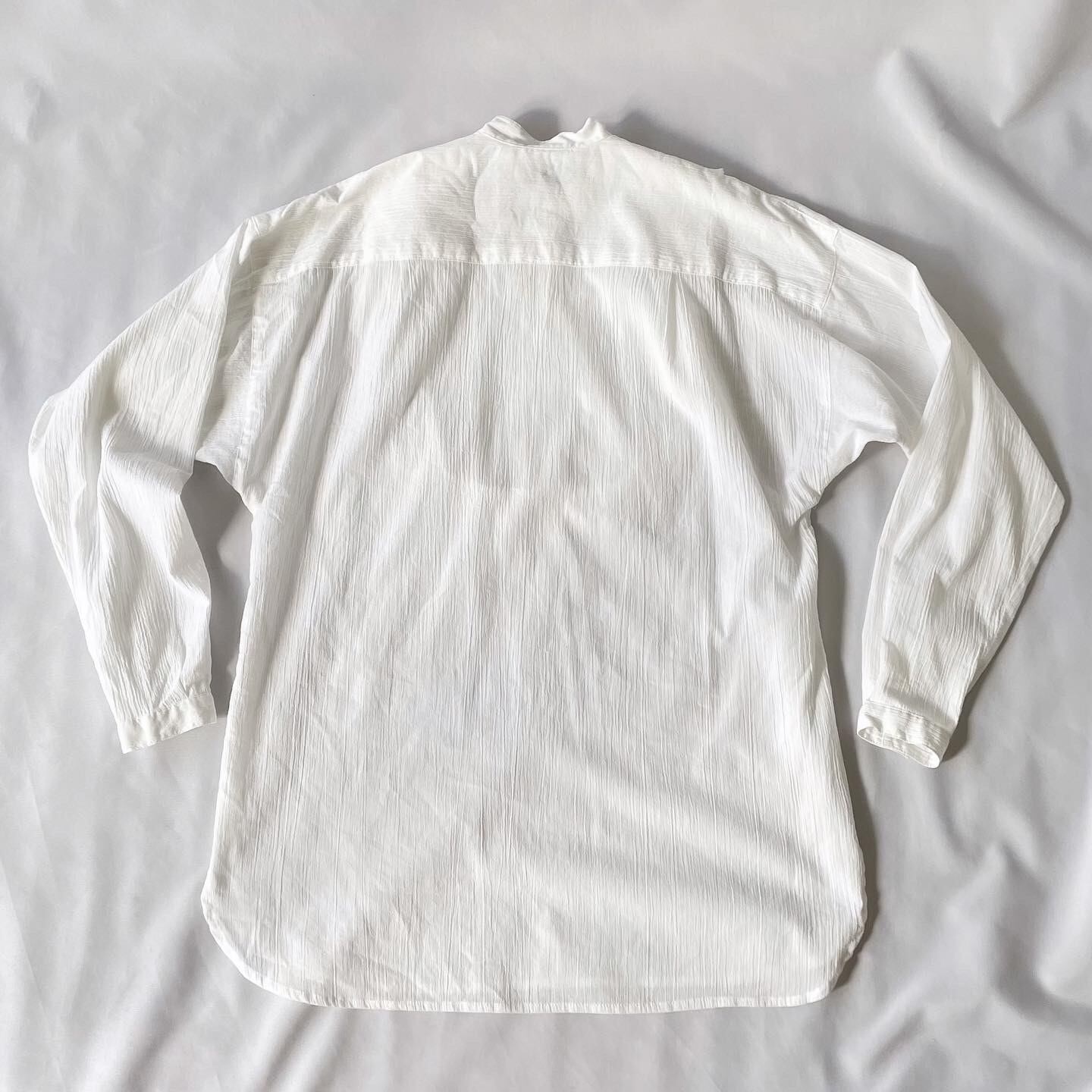 縦皺加工のシャリっとしたコットンポリエステル素材で着心地も良く、春に最適なトップスです。