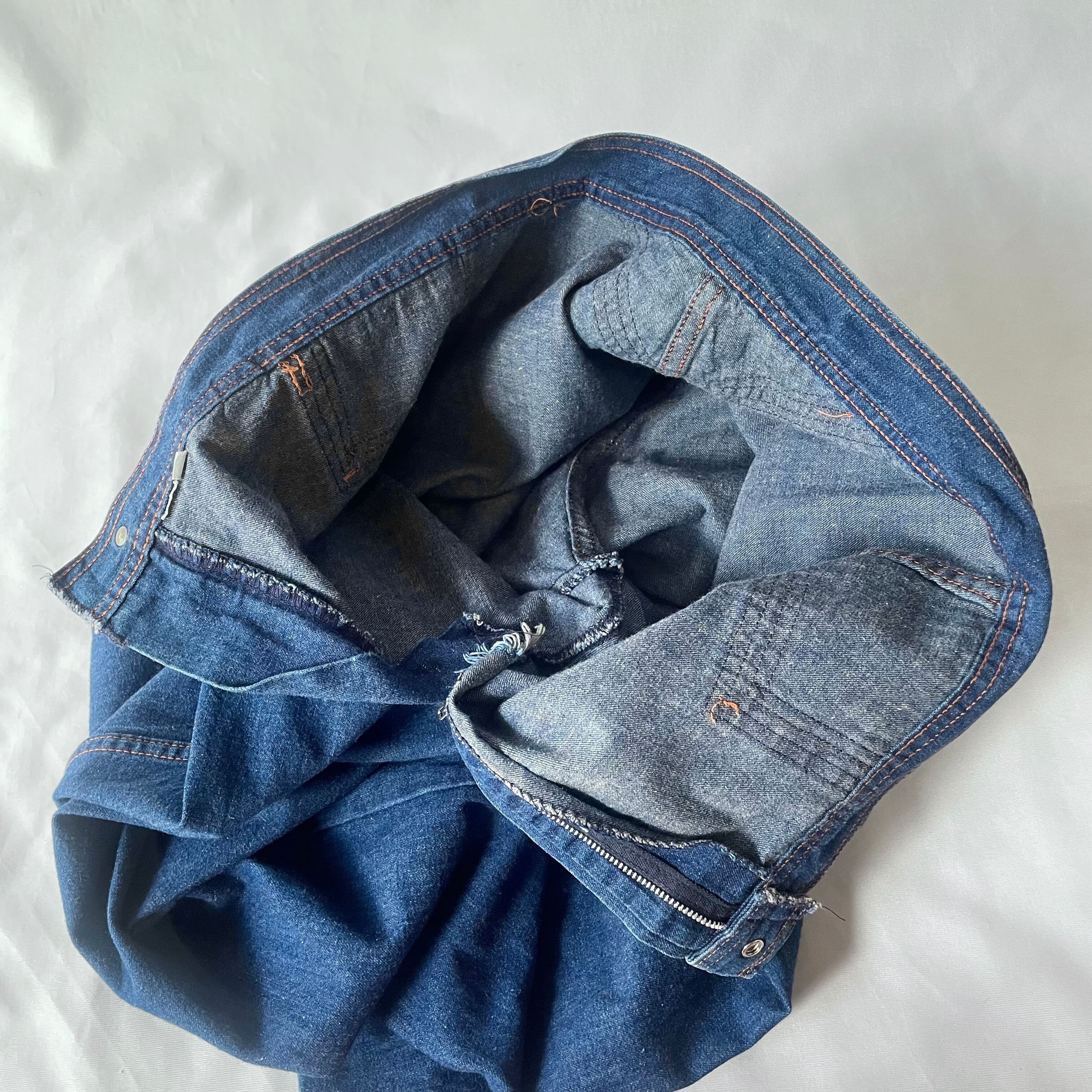 袴の様な極太シルエットがとても可愛い、70年代ヴィンテージ 濃紺バギーデニムパンツです。