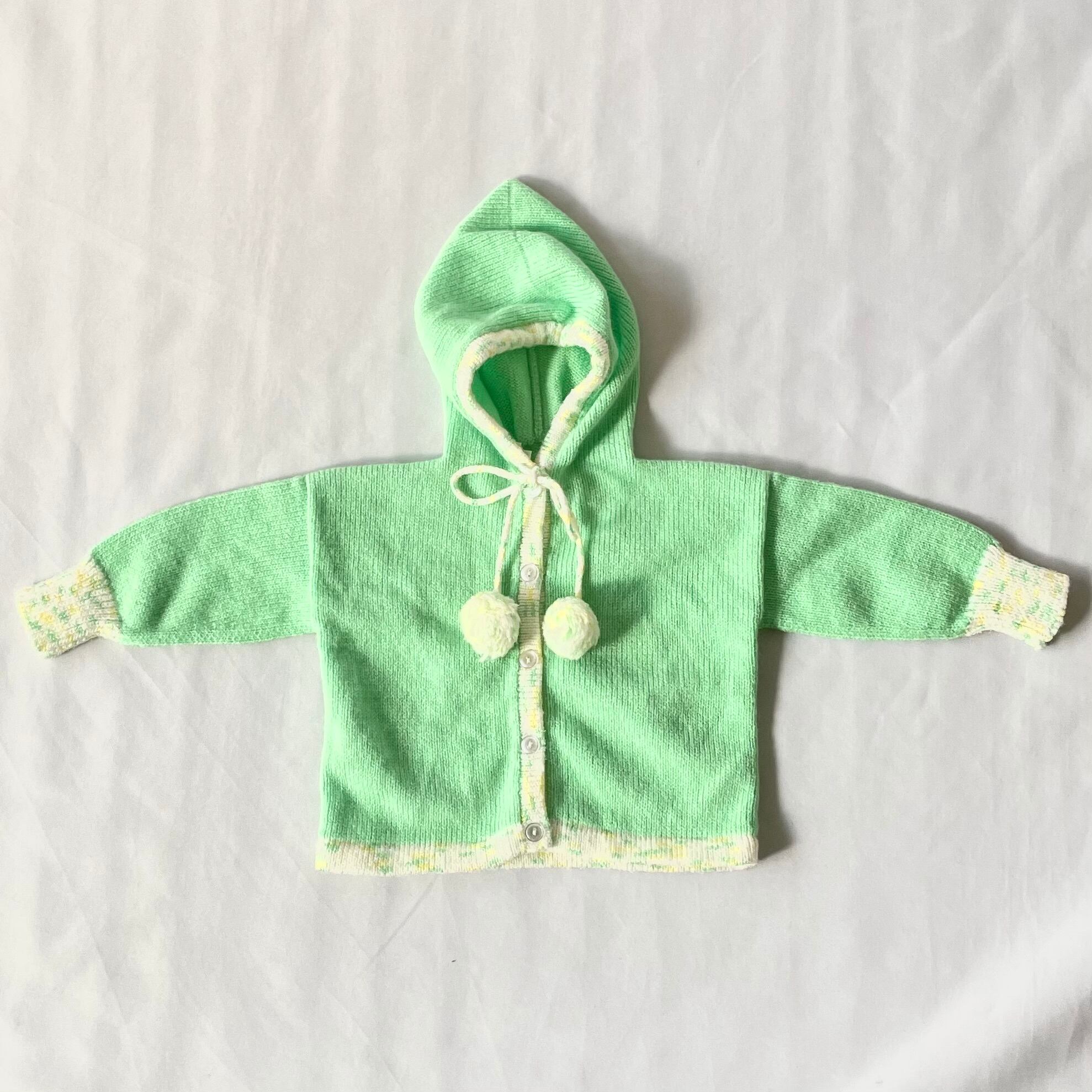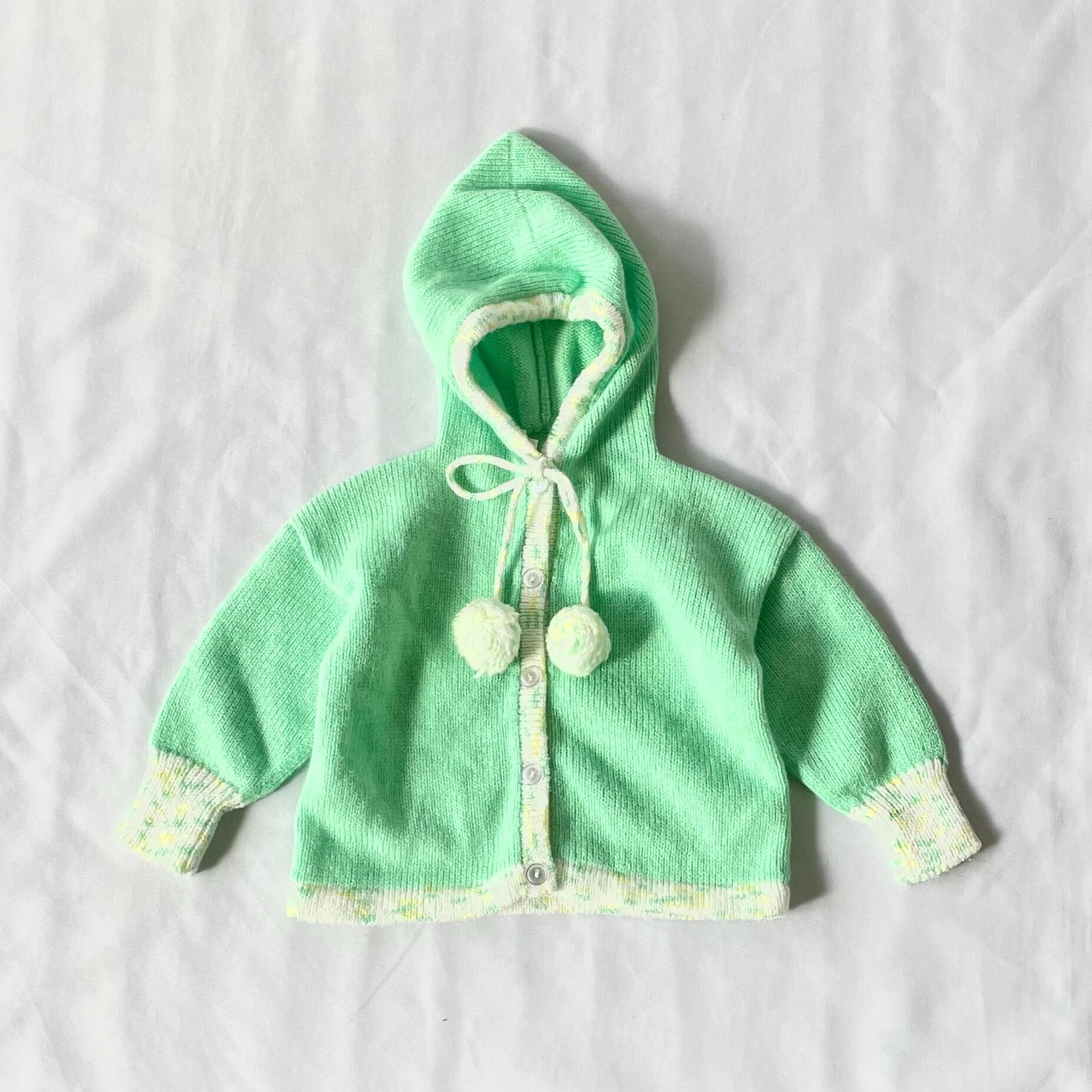 【1歳】lime green knit hooded cardigan フード付きニットカーディガン
