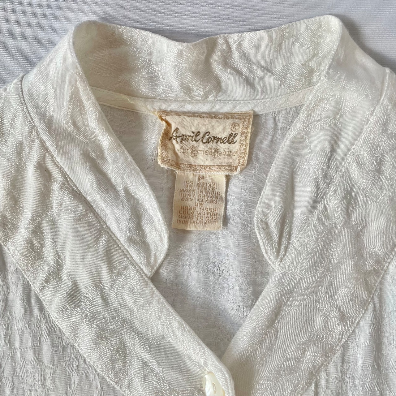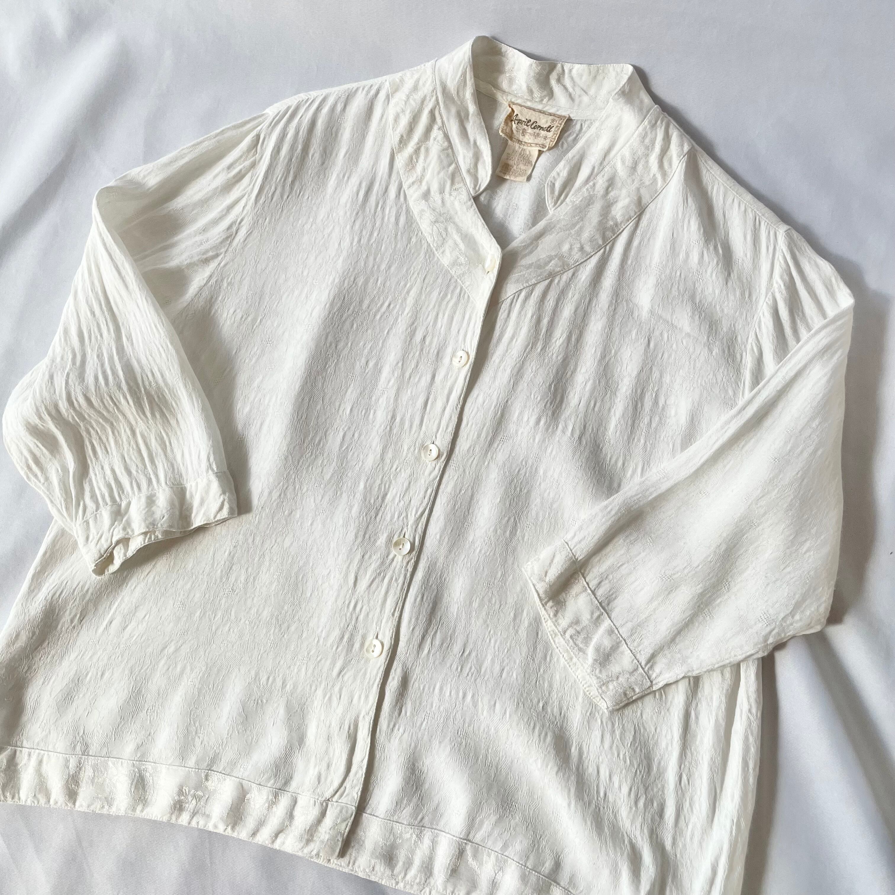 刺繍の様な模様が浮き彫りの様に描かれたインドレーヨン素材のブラウスです。