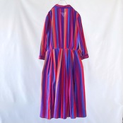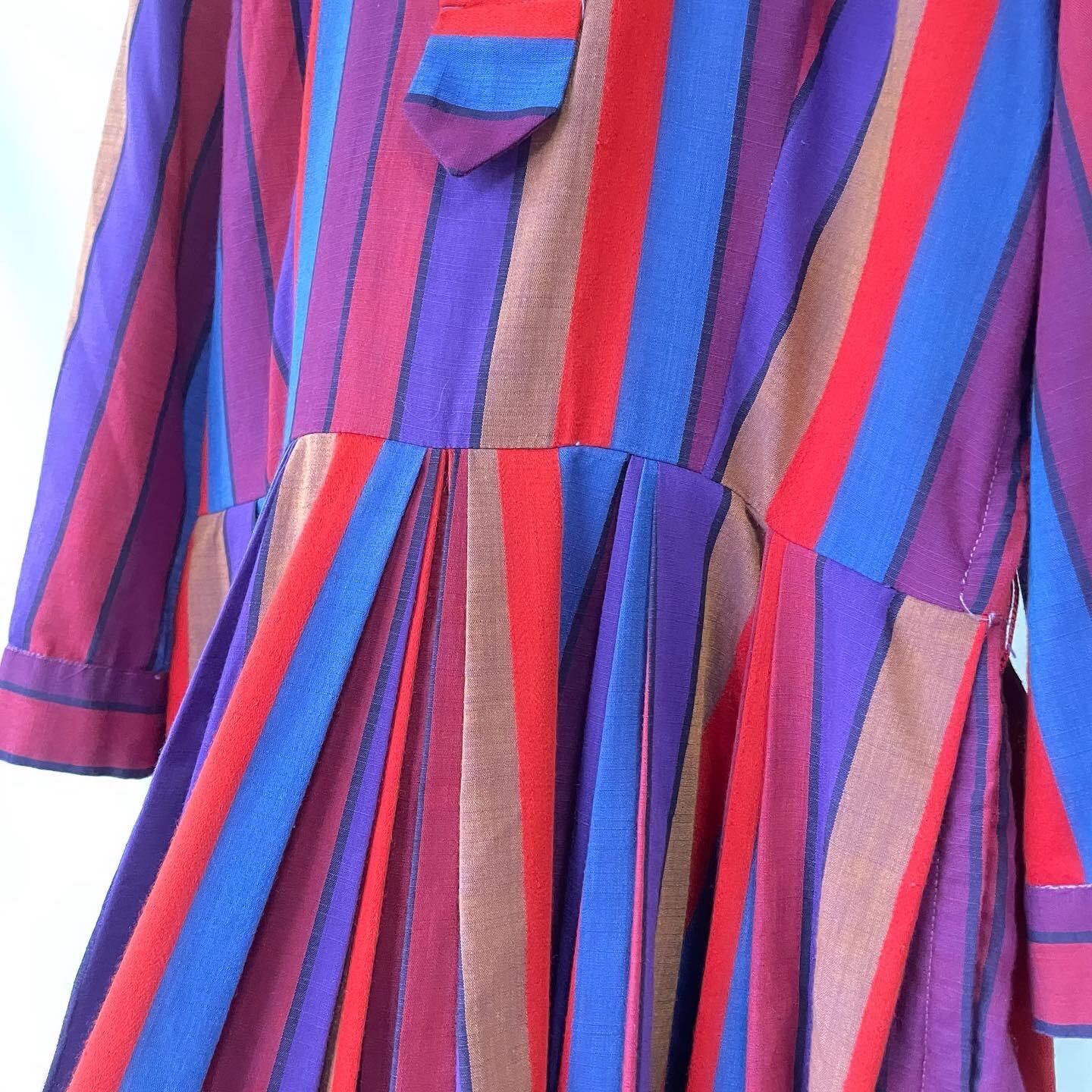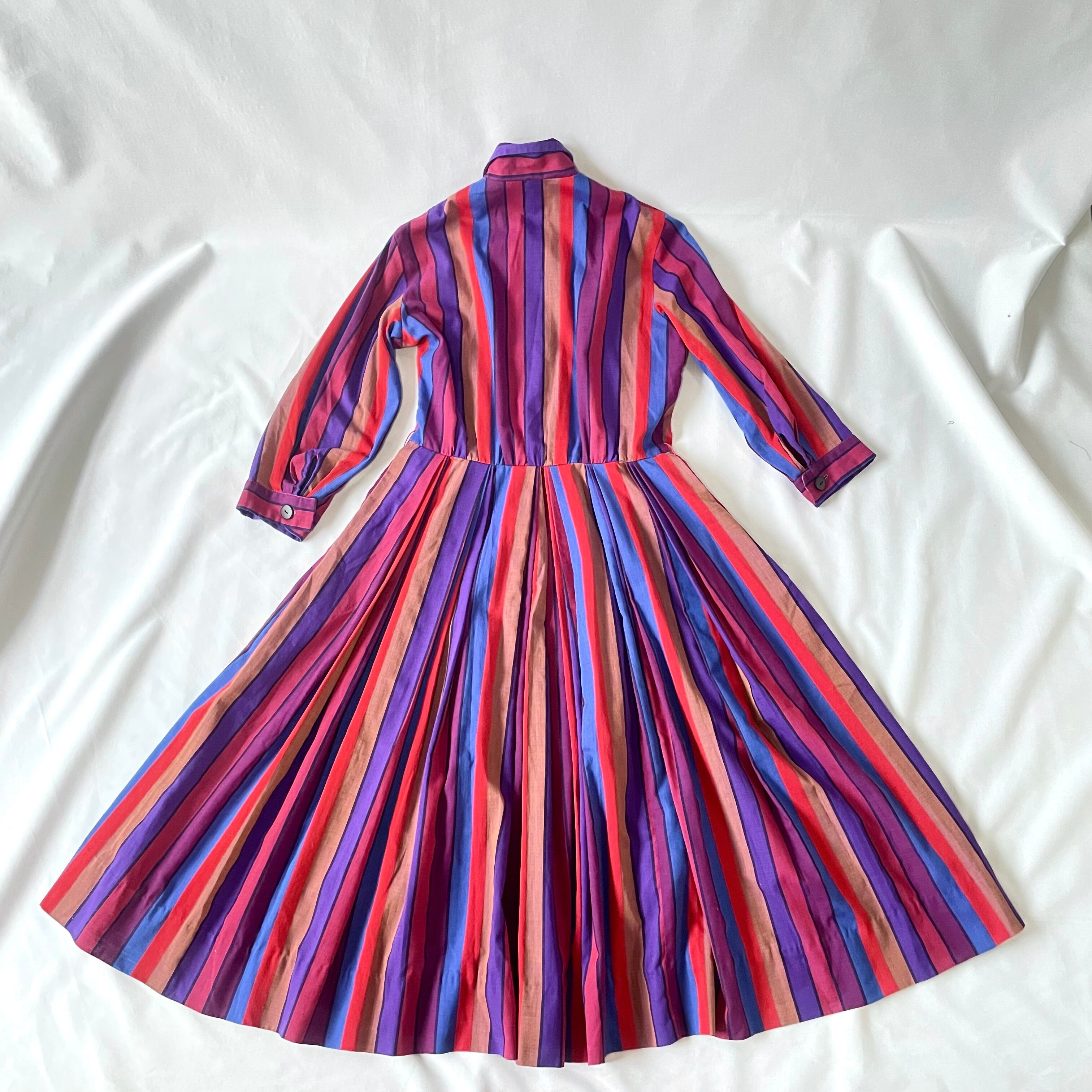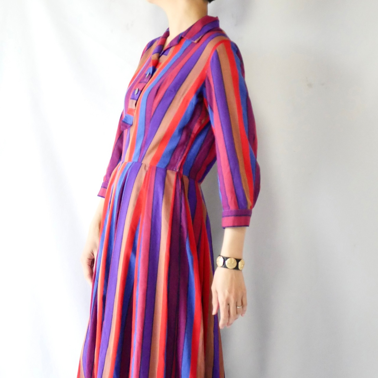 変わったプリーツ、渋めカラーのストライプ、襟の造りなどヴィンテージ らしいデザインが素敵な5-60年代ヴィンテージ ストライプシャツワンピース です。talon zipper