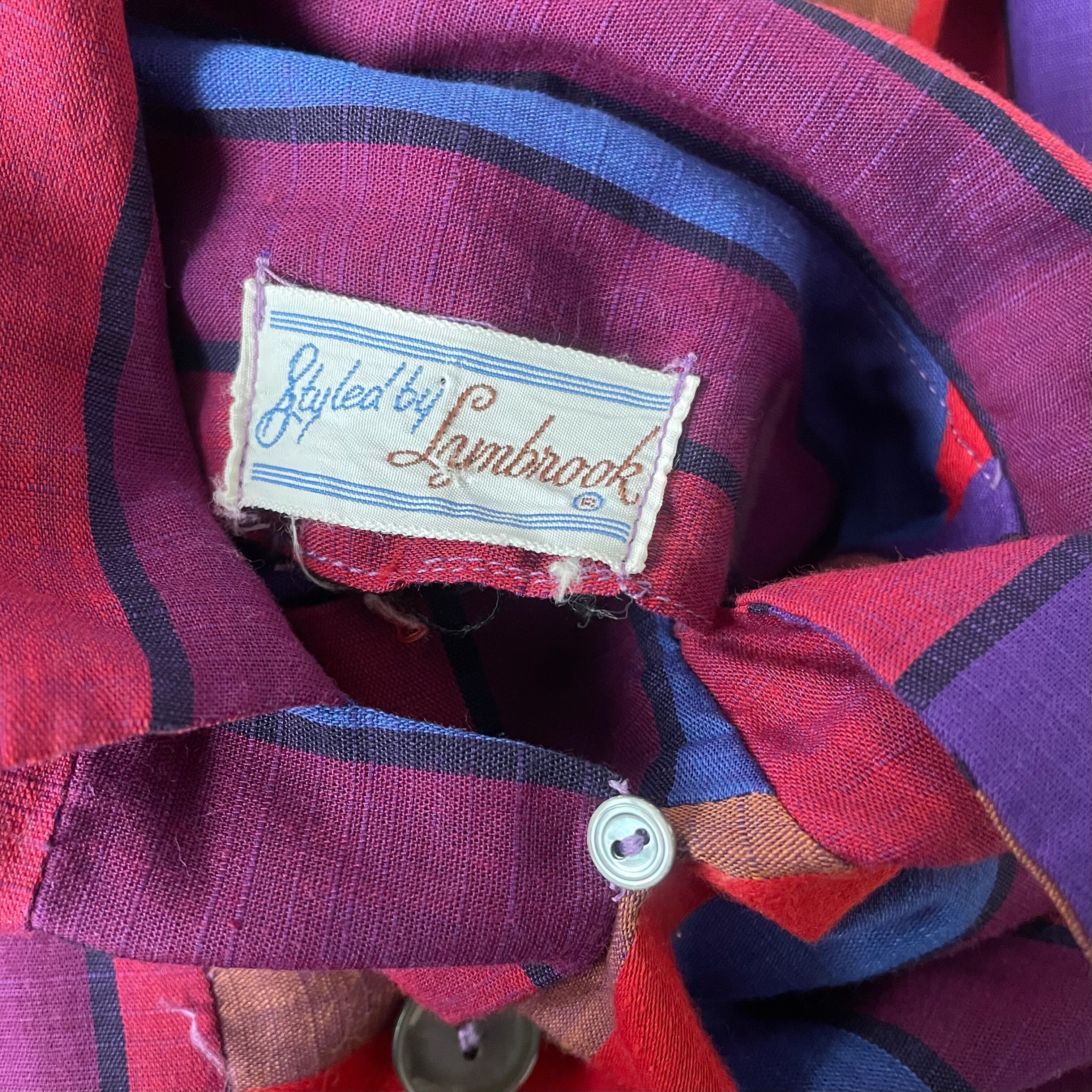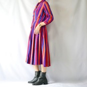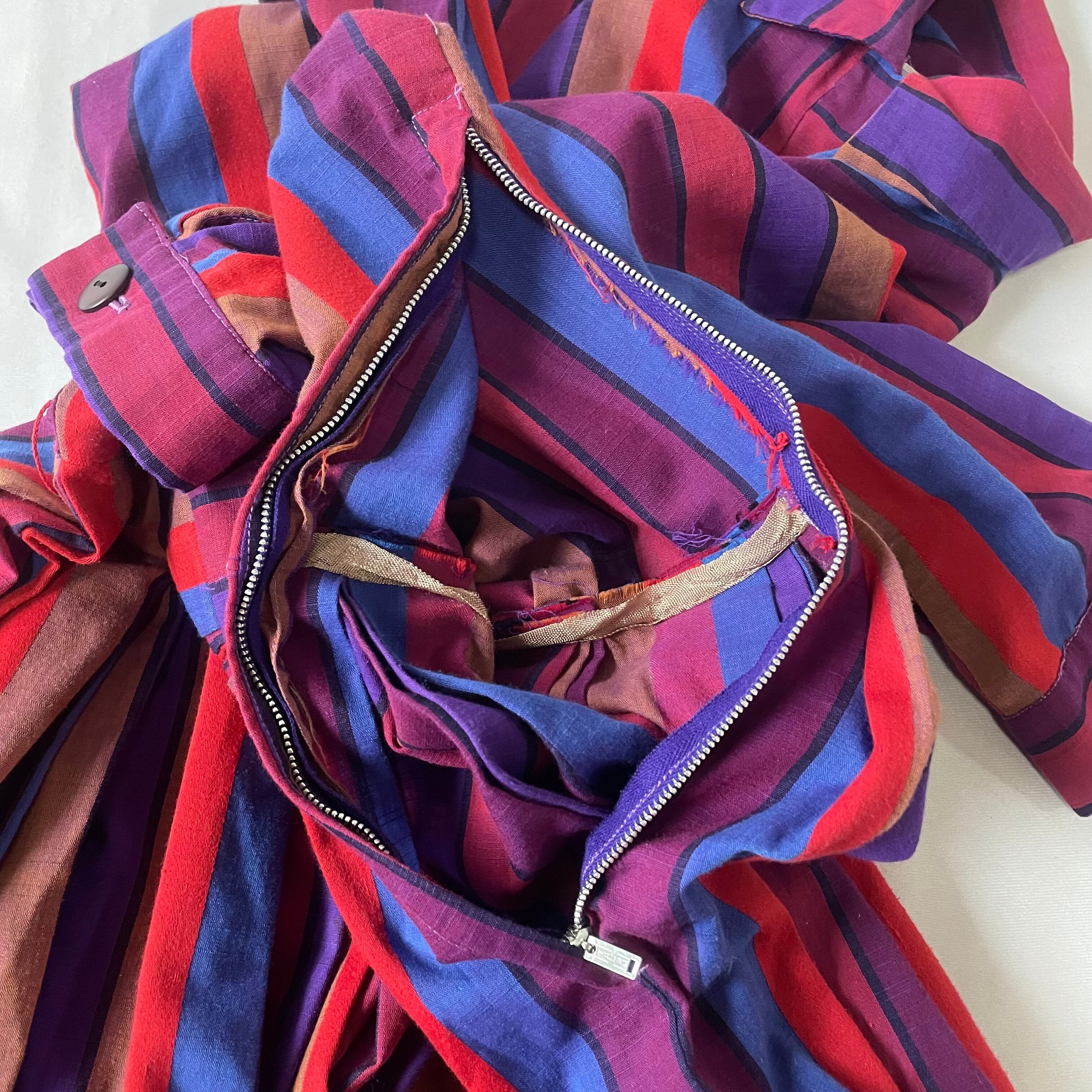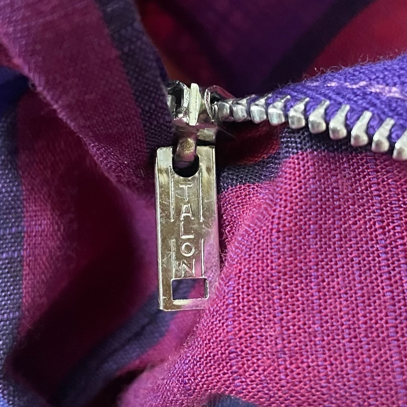変わったプリーツ、渋めカラーのストライプ、襟の造りなどヴィンテージ らしいデザインが素敵な5-60年代ヴィンテージ ストライプシャツワンピース です。talon zipper