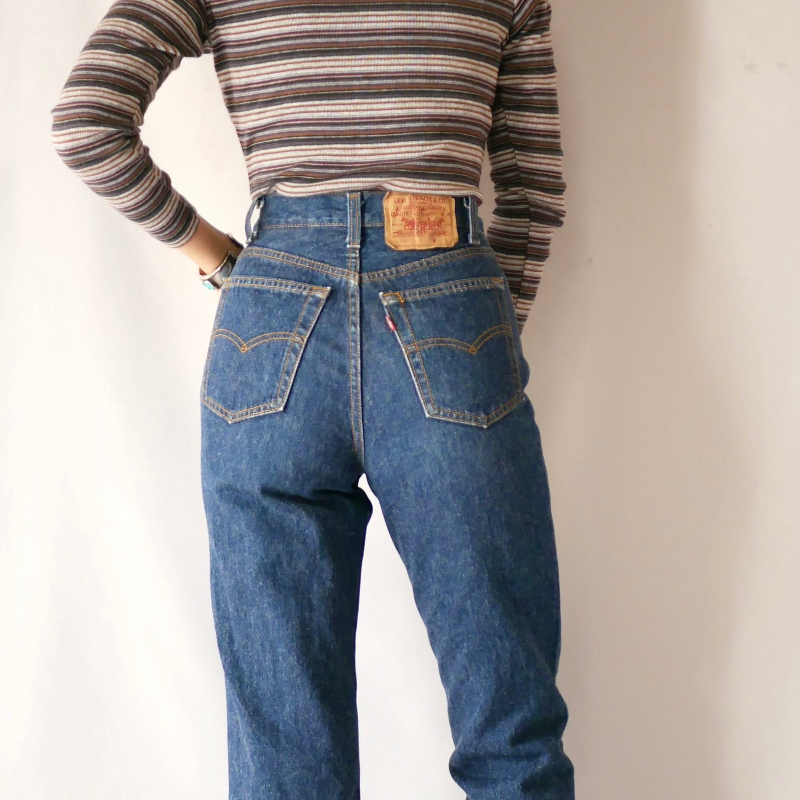 90年代 アメリカ製 リーバイス 501 レディースモデル 17501 内股シングル濃紺デニムパンツです。お尻をすっぽり包むシルエットの良いハイウエスト、濃い色目で色落ちも楽しめます。